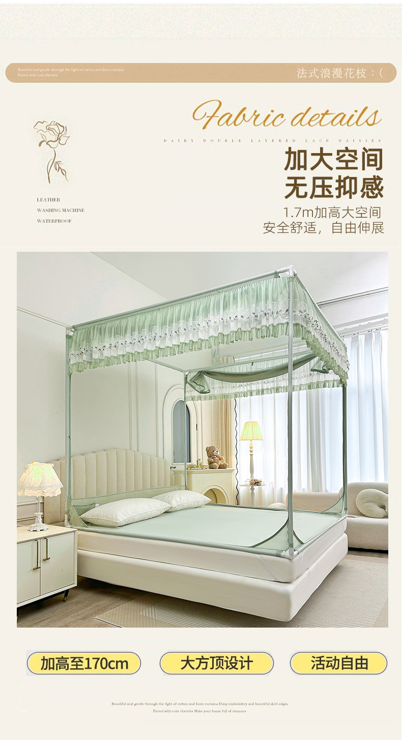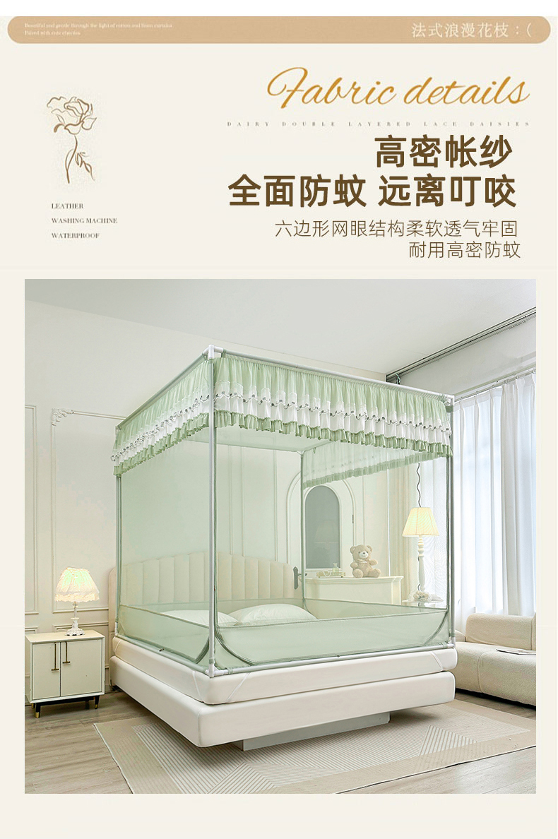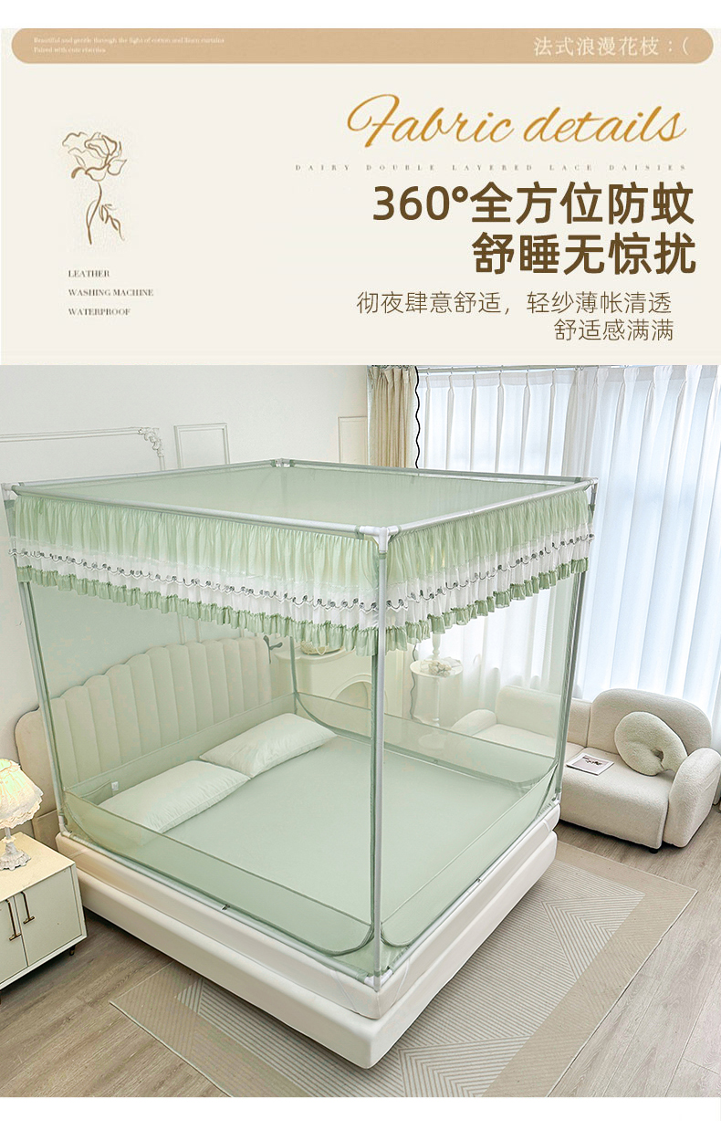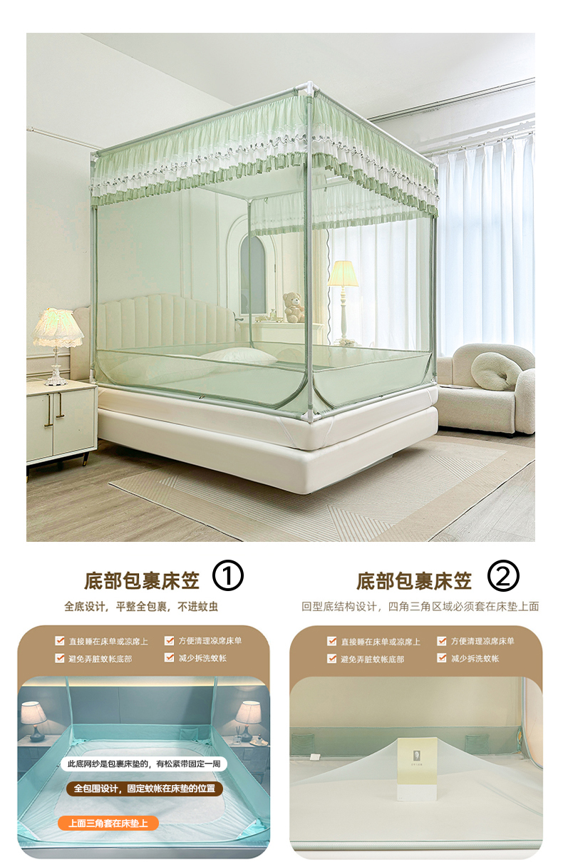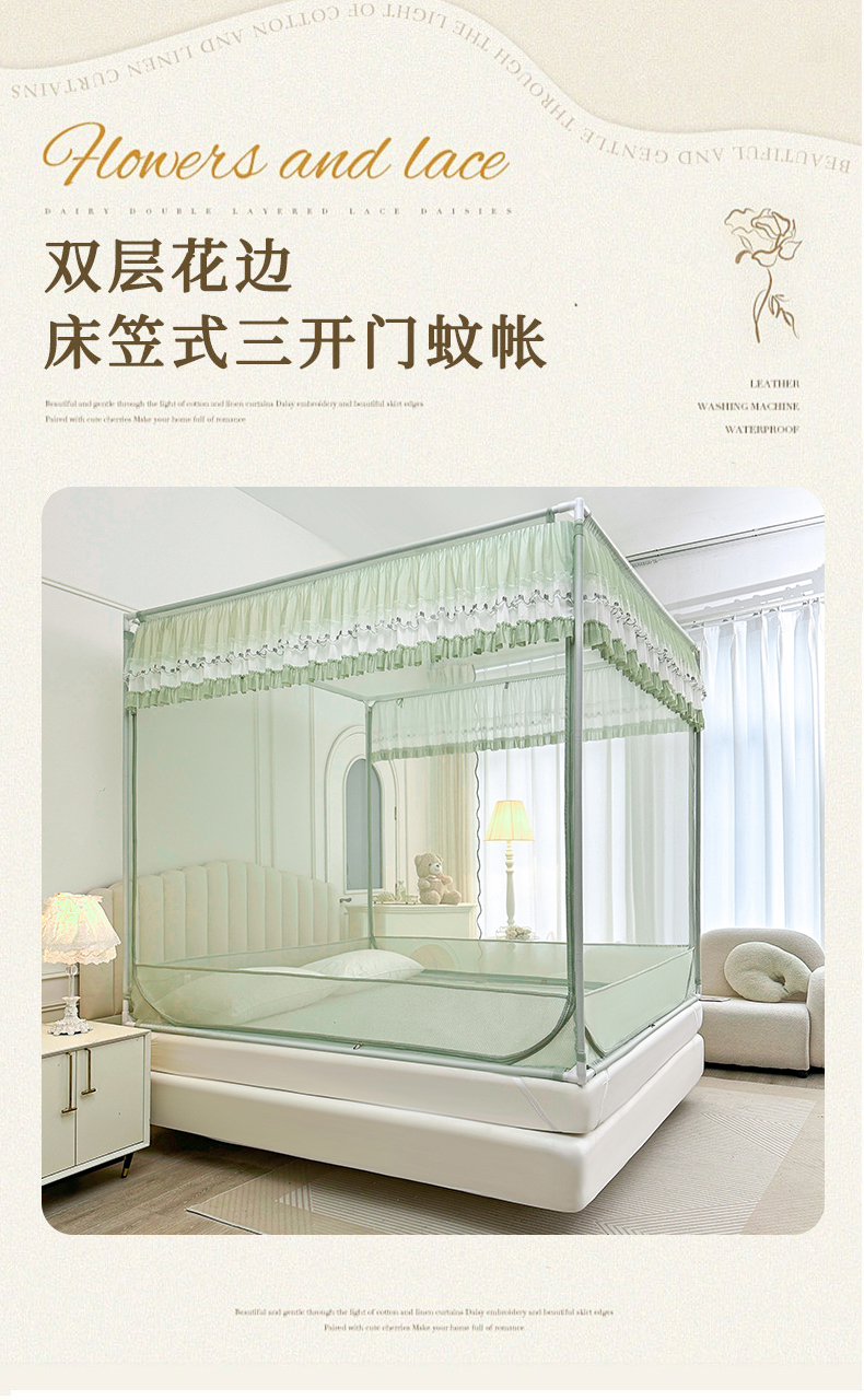 当前位置: 91家纺网 > 商品网购 > 床上用品 > 蚊帐 > 坐床式蚊帐 > 梦尔佳蚊帐 2025新款双层花边全包围全底款和床笠款三开门蚊帐-863系列青春亮丽 沫绿