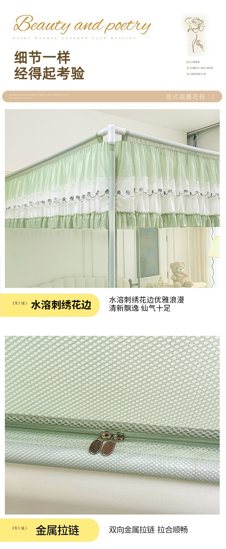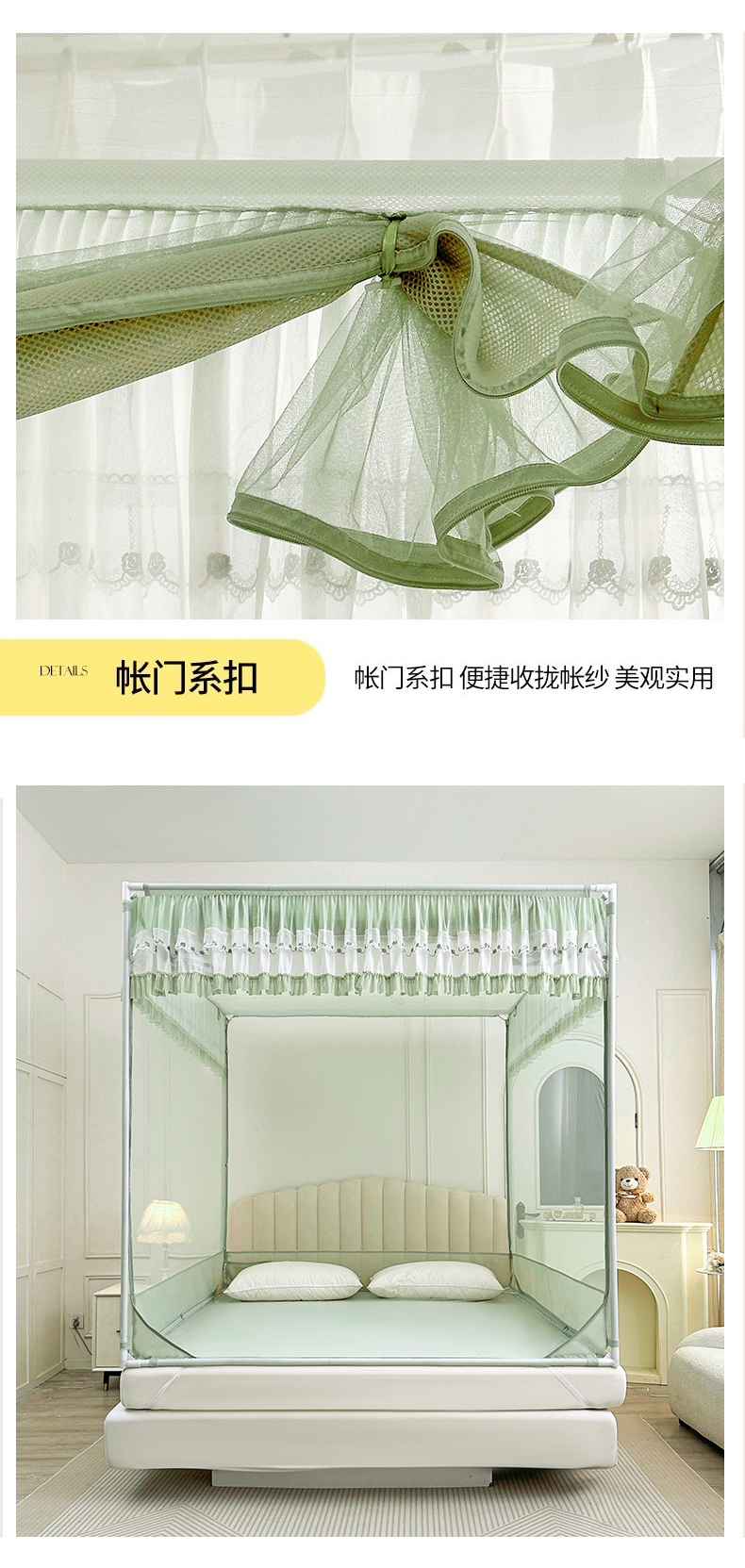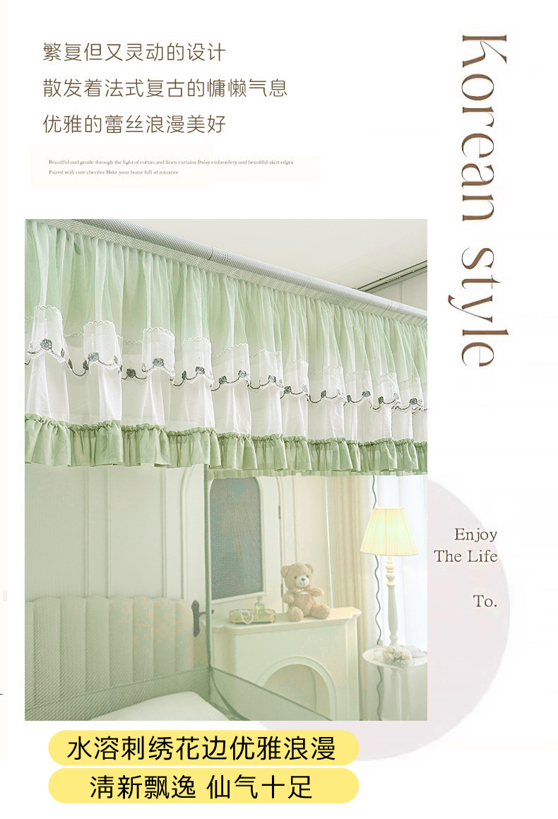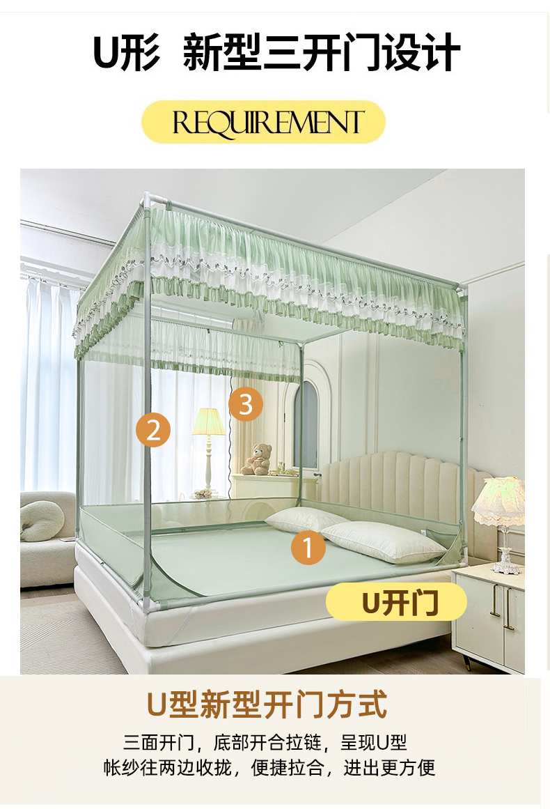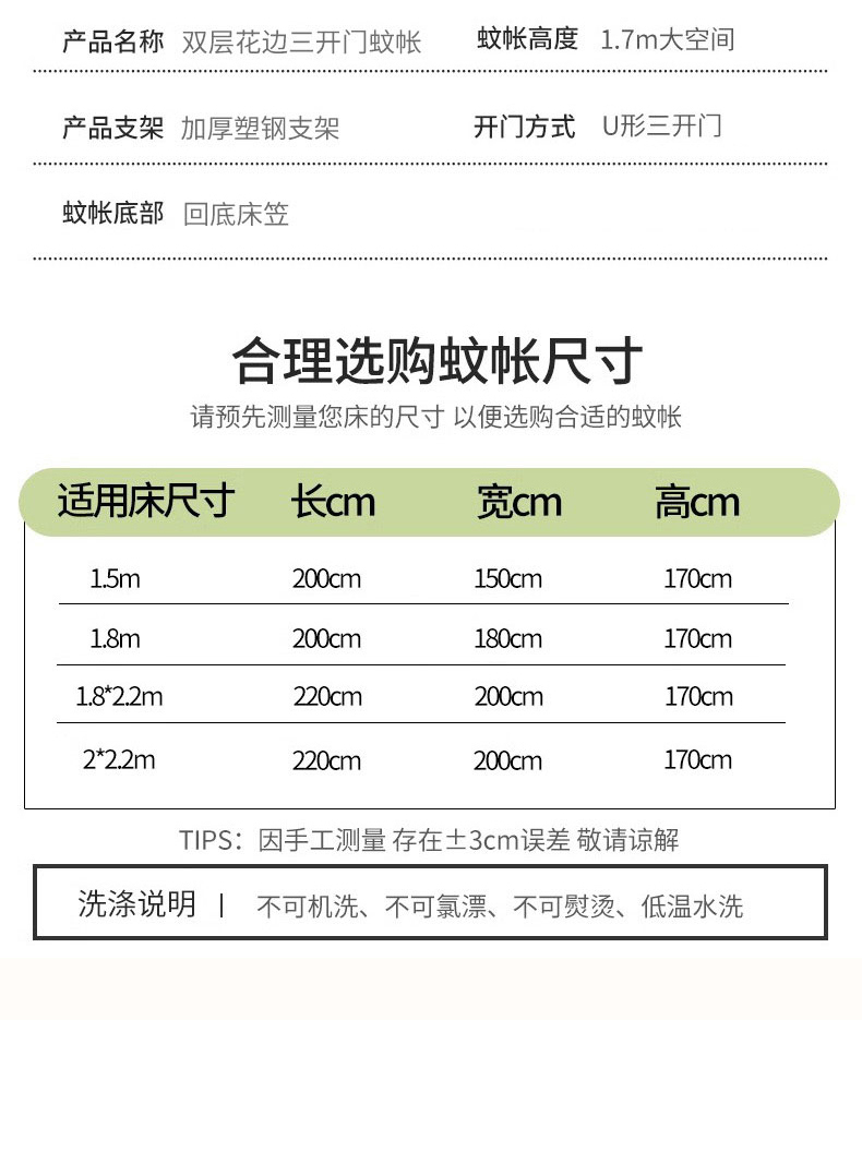 当前位置: 91家纺网 > 商品网购 > 床上用品 > 蚊帐 > 坐床式蚊帐 > 梦尔佳蚊帐 2025新款双层花边全包围全底款和床笠款三开门蚊帐-863系列青春亮丽 沫绿