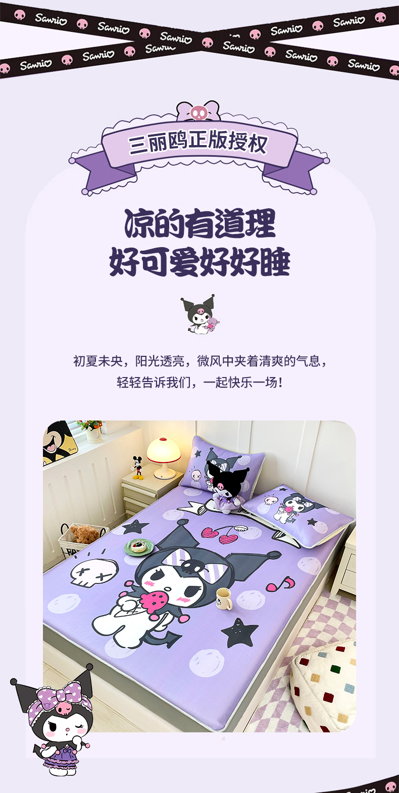 (总)米帛家纺 2025新款大版三丽鸥碳光冰丝凉席绑带款,圆点酷洛米,彩虹帕恰狗,彩虹玉桂狗,草莓美乐蒂,窗帘美乐蒂,粉色酷洛米,皇冠玉桂狗,木马美乐蒂,气球玉桂狗,巧克力酷洛米,糖果美乐蒂,糖果玉桂狗,香水凯蒂猫,樱桃凯蒂猫,樱桃酷洛米