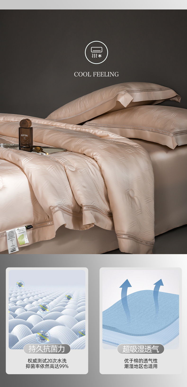 商品名称:网客家纺 2025新款60天丝提花夏被四件套-香格里拉系列 香格里拉-凝脂玉