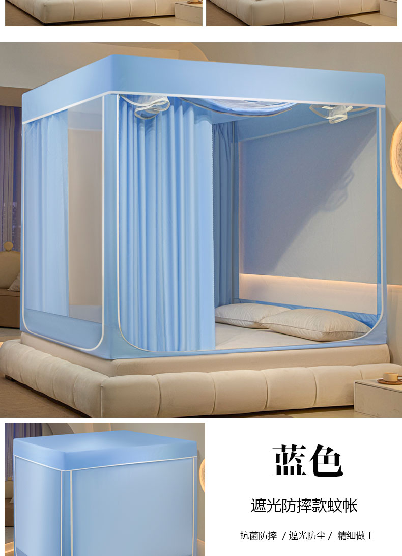 (总)兆星家纺 2025新款防蚊遮光保暖蚊帐,藏青,灰色,米色,天蓝