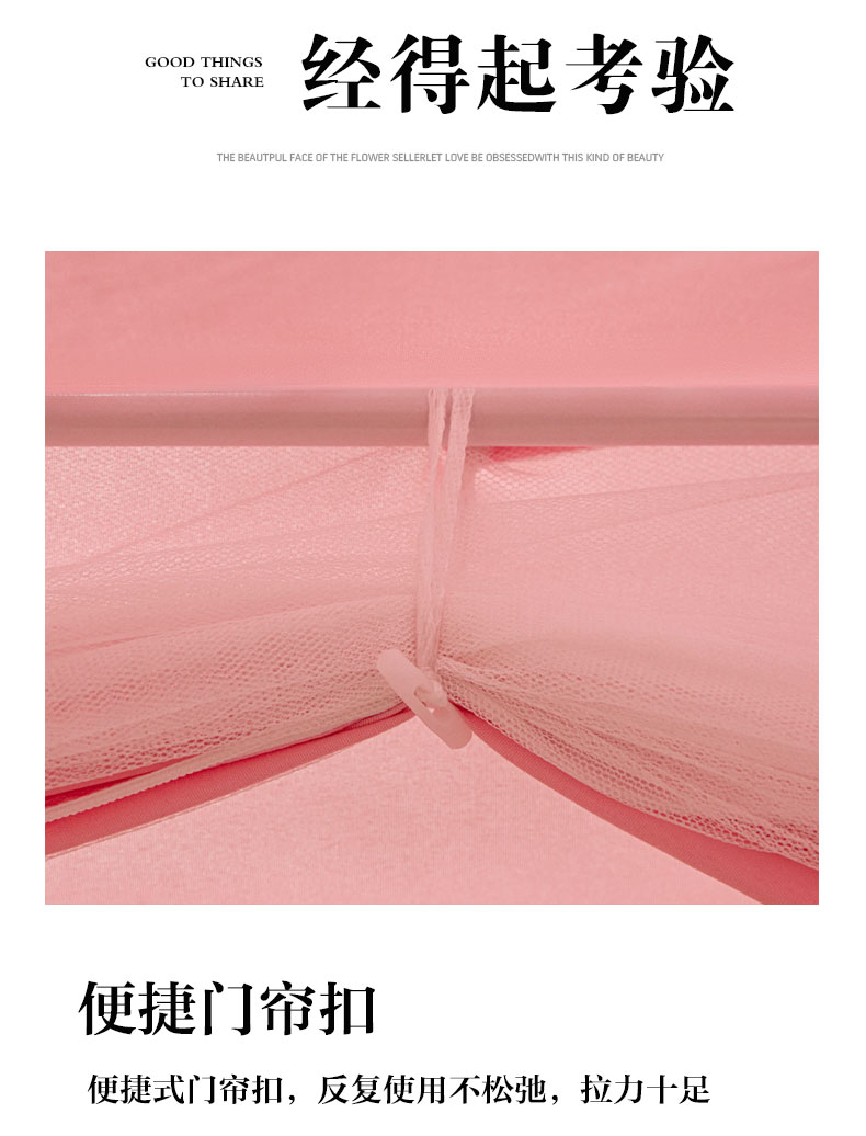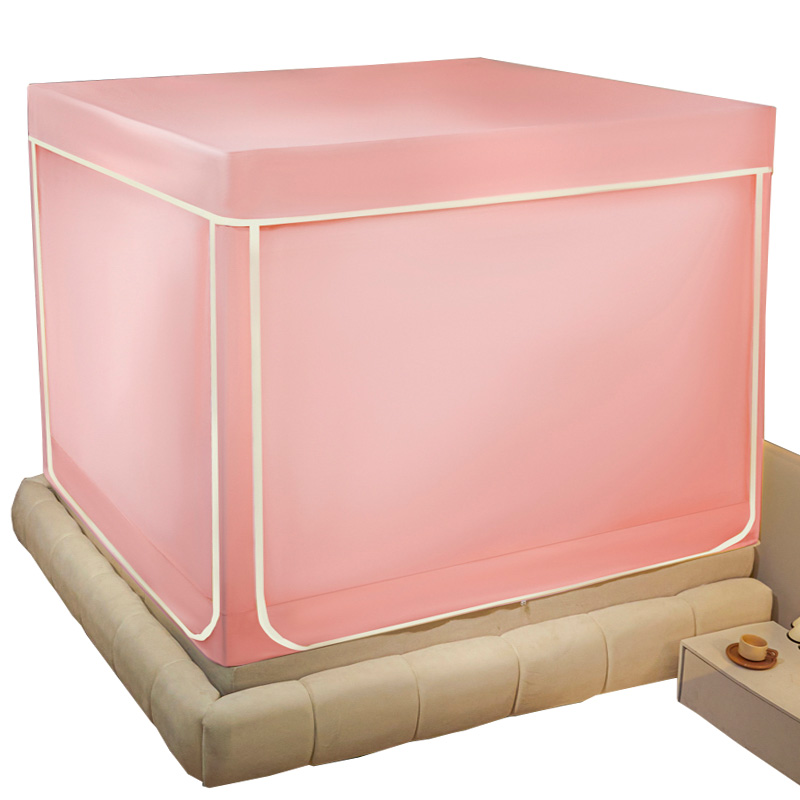 商品名称:兆星家纺 2025新款内穿带布帘蚊帐 纯色款 纯色-粉玉(含帘)