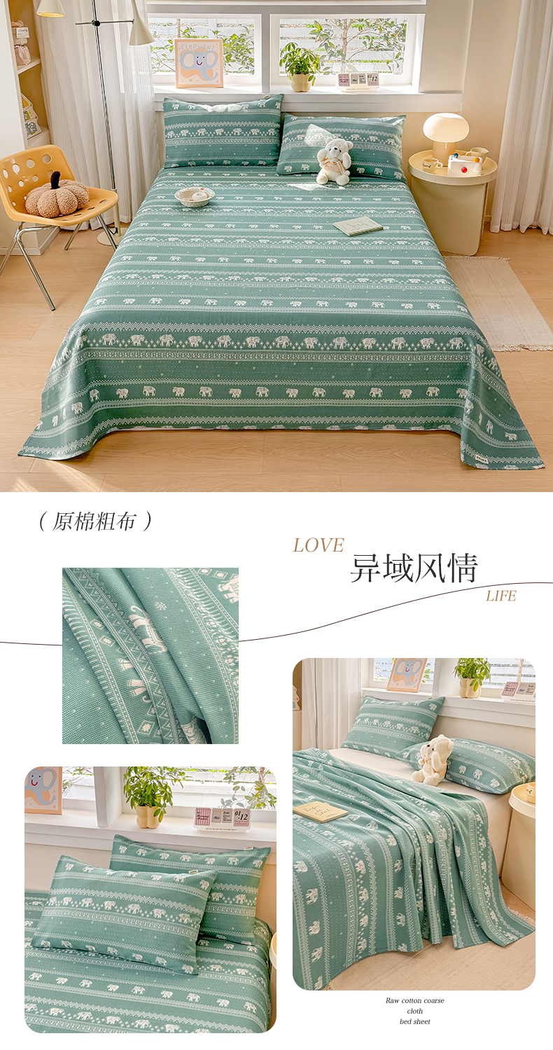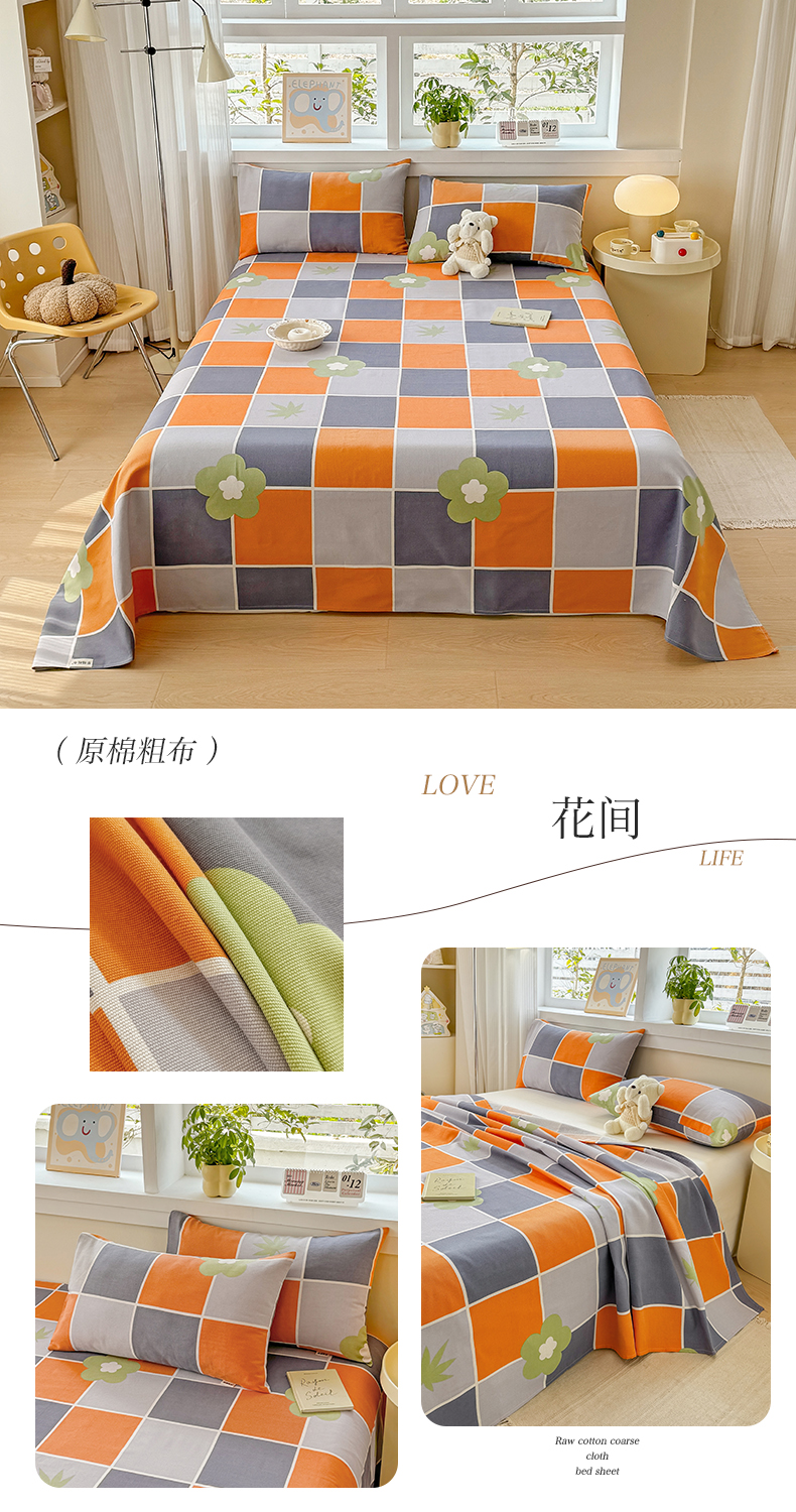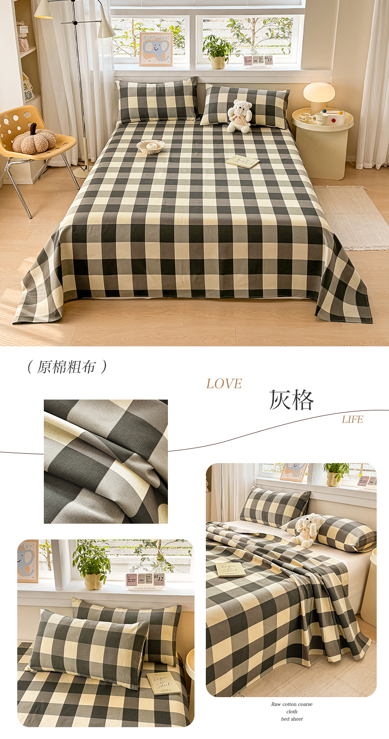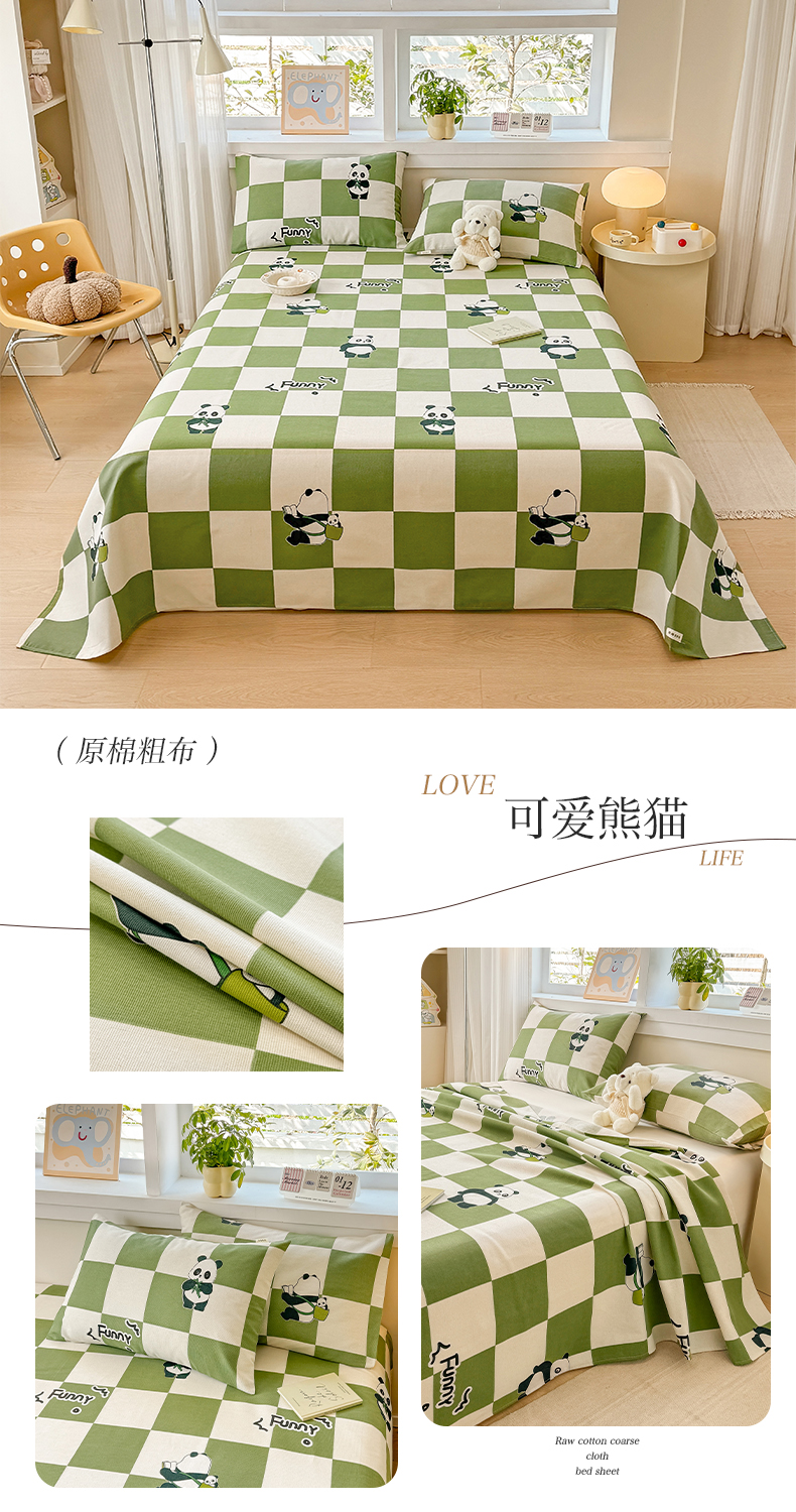 (总)博弈家纺 2025新款亲肤舒适原棉老粗布床单凉席三件套系列,花间,欢乐时光,灰格,可爱熊猫,冷灰,嫩绿,热恋,异域风情