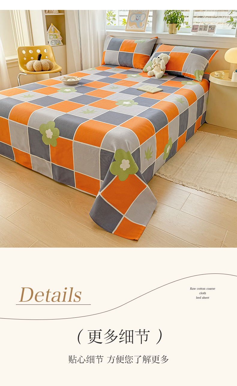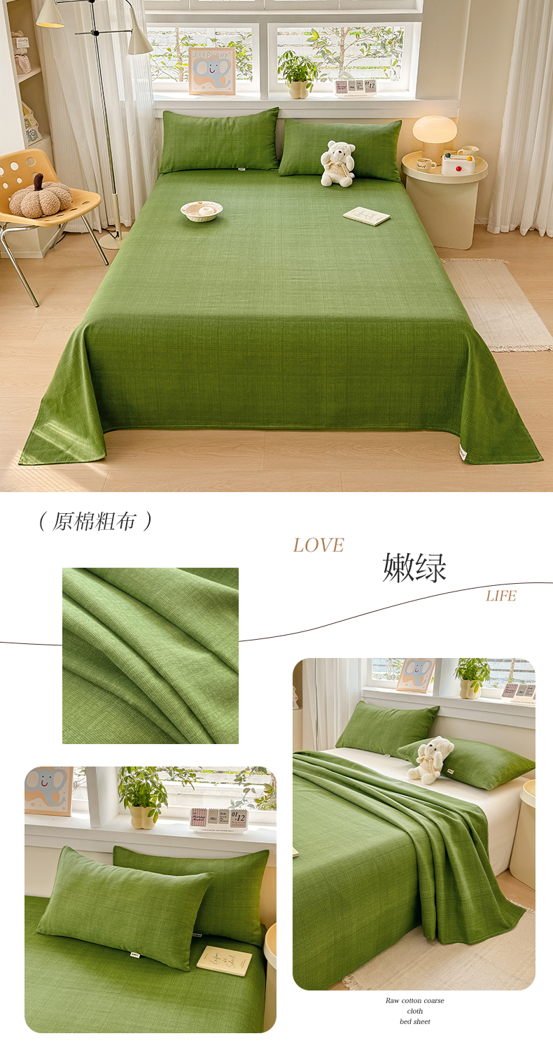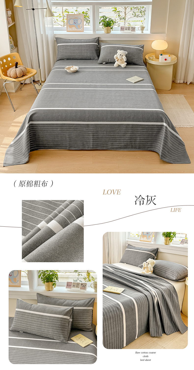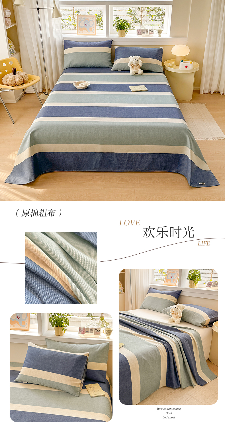 (总)博弈家纺 2025新款亲肤舒适原棉老粗布床单凉席三件套系列,花间,欢乐时光,灰格,可爱熊猫,冷灰,嫩绿,热恋,异域风情
