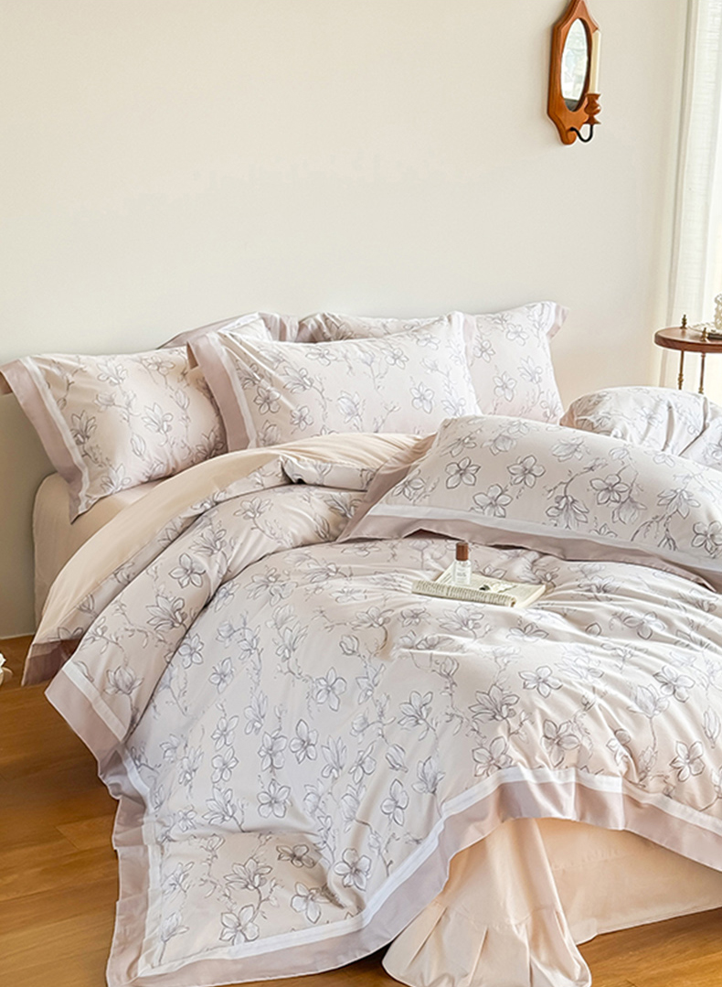 巧玲珑 2025新款60支A类进口数码印花美式双拼四季款长绒棉四件套 曲意风华