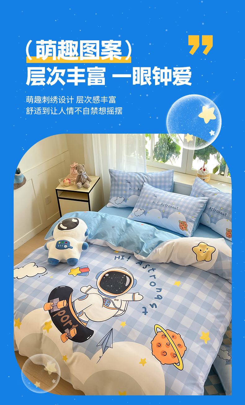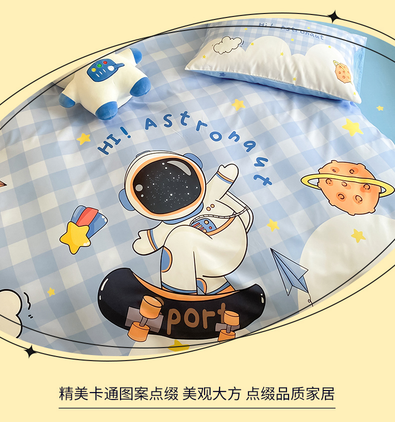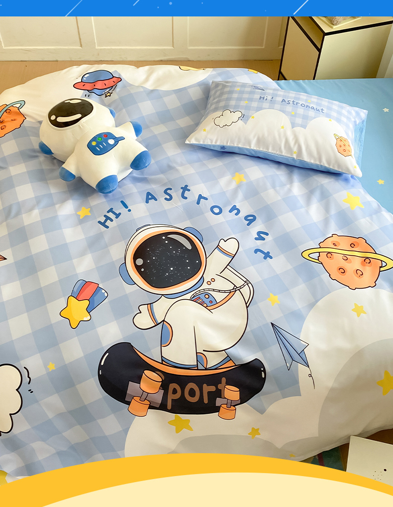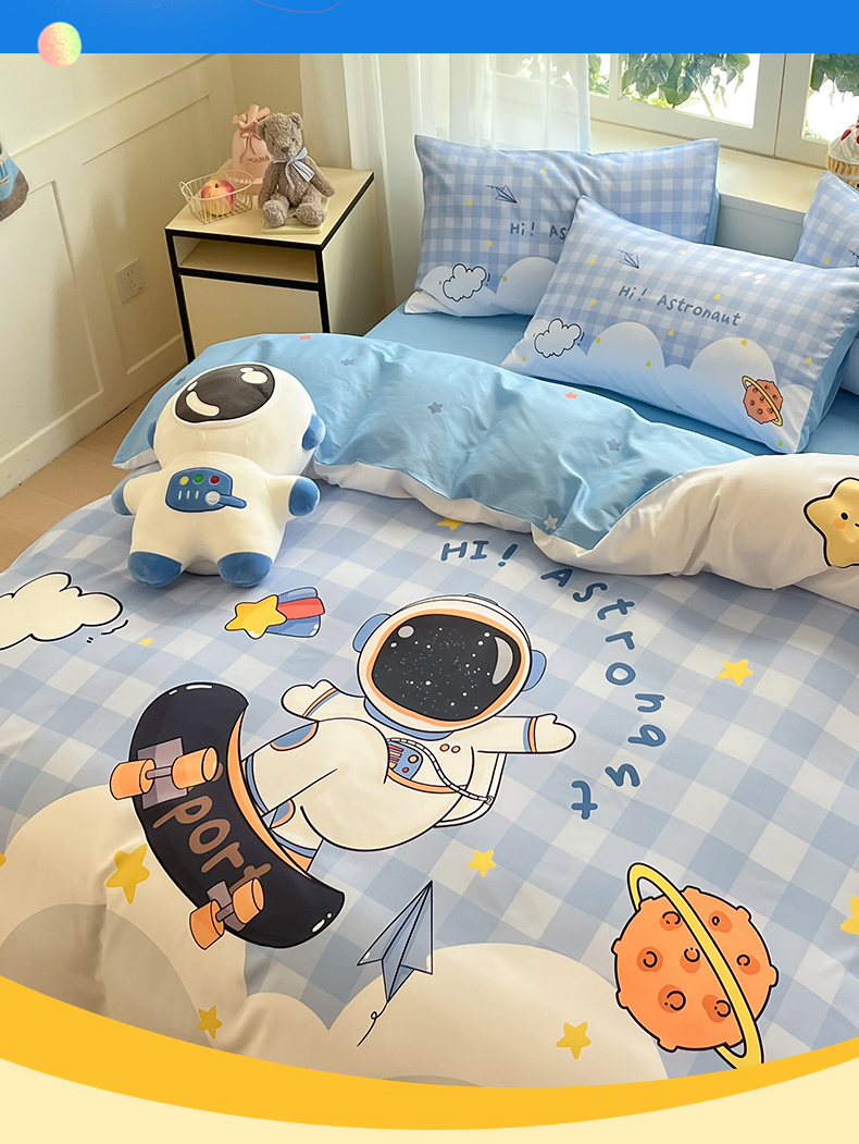 当前位置: 91家纺网 > 商品网购 > 床品套件 > 四件套 > 全棉普通四件套 > 博雅 2025新款纯棉宇航员四件套 滑板宇航员