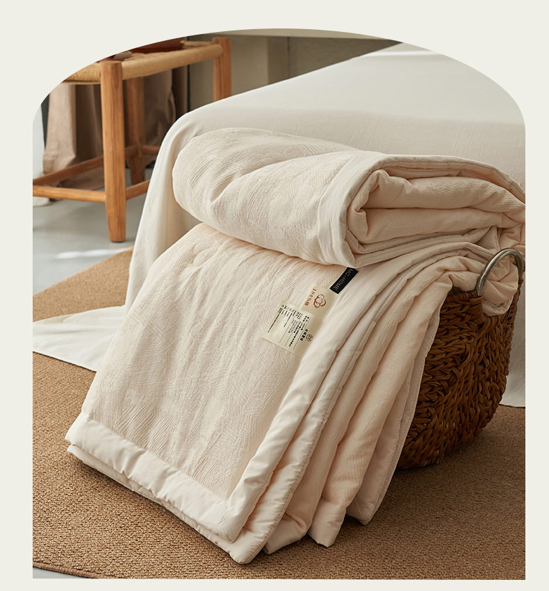 • 91家纺网 家纺一手货源 找家纺 寐绸家纺 2025新款纯棉水洗棉三层提花大豆纤维夏被四件套 肌理纹夏被-暗灰