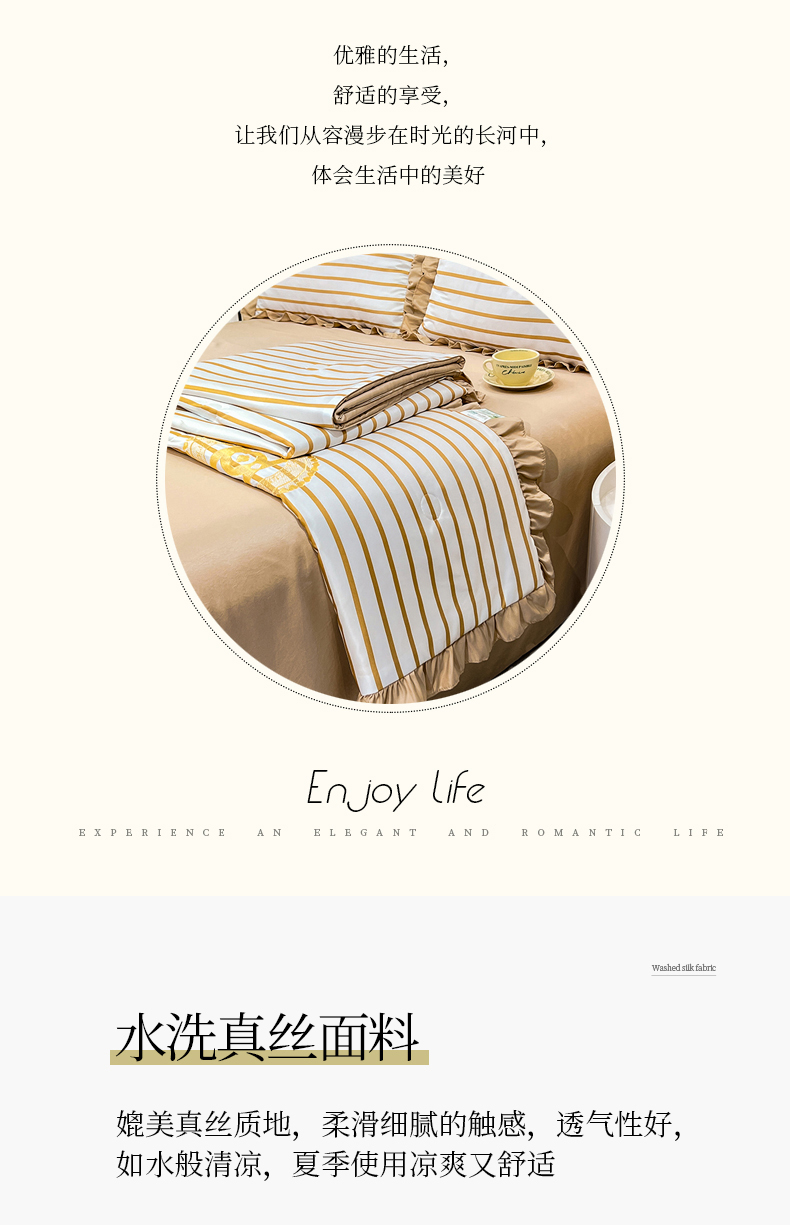 当前位置: 91家纺网 > 商品网购 > 床品套件 > 四件套 > 夏被四件套 > 经年 2025新款水洗真丝韩版夏被浅夏系列 浅夏-香槟