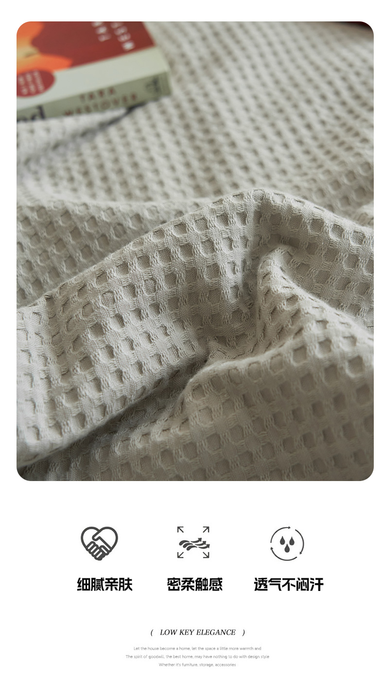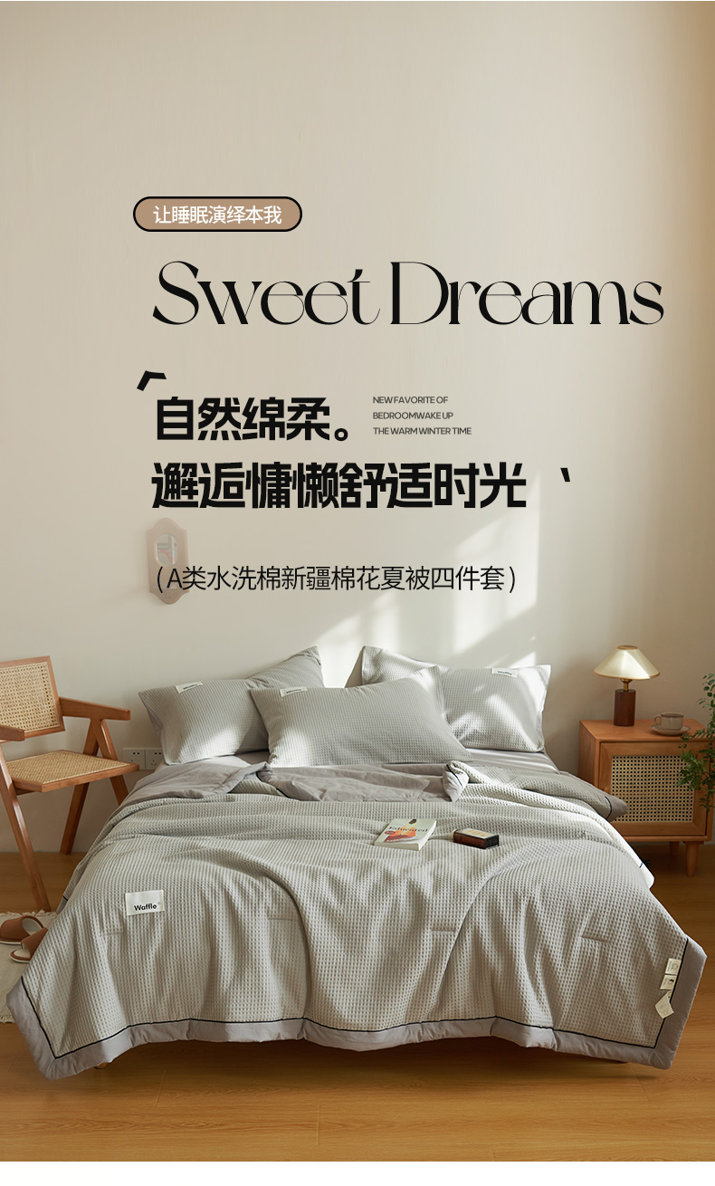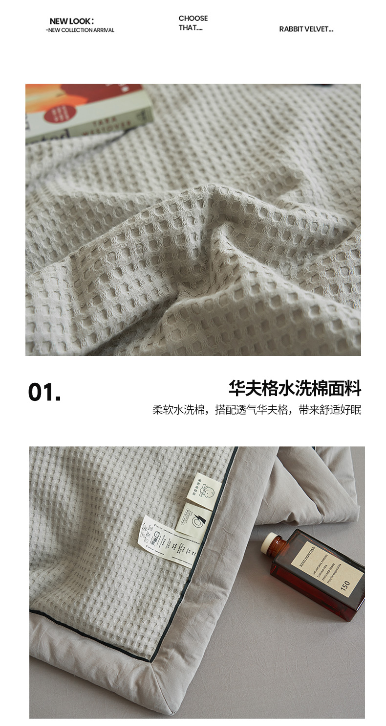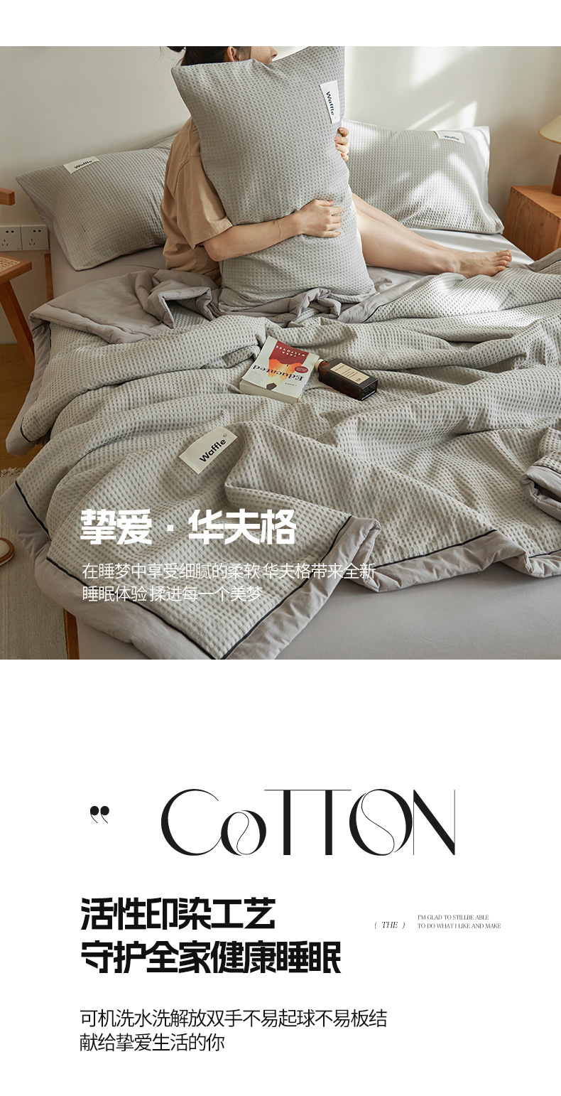 • 91家纺网 家纺一手货源 找家纺 寐绸家纺 2025新款40支纯棉水洗棉华夫格北欧风新疆棉花夏被四件套 华夫格-浅灰