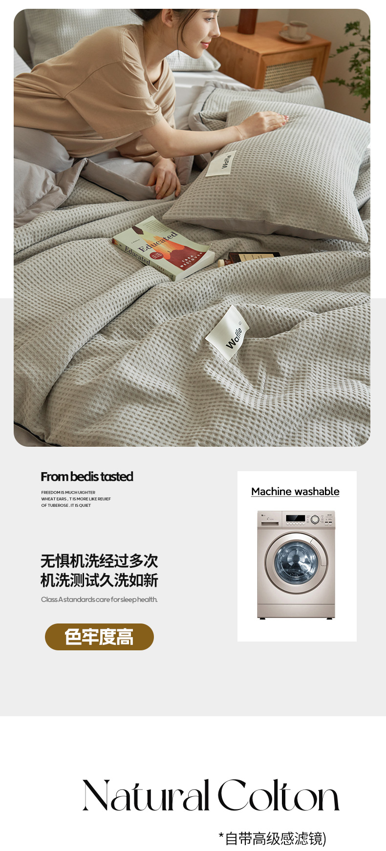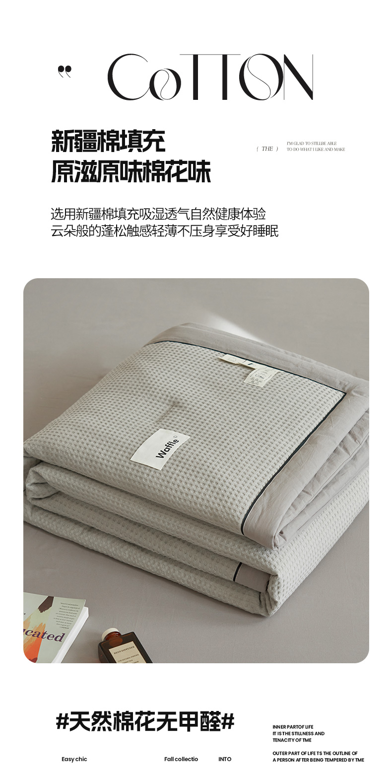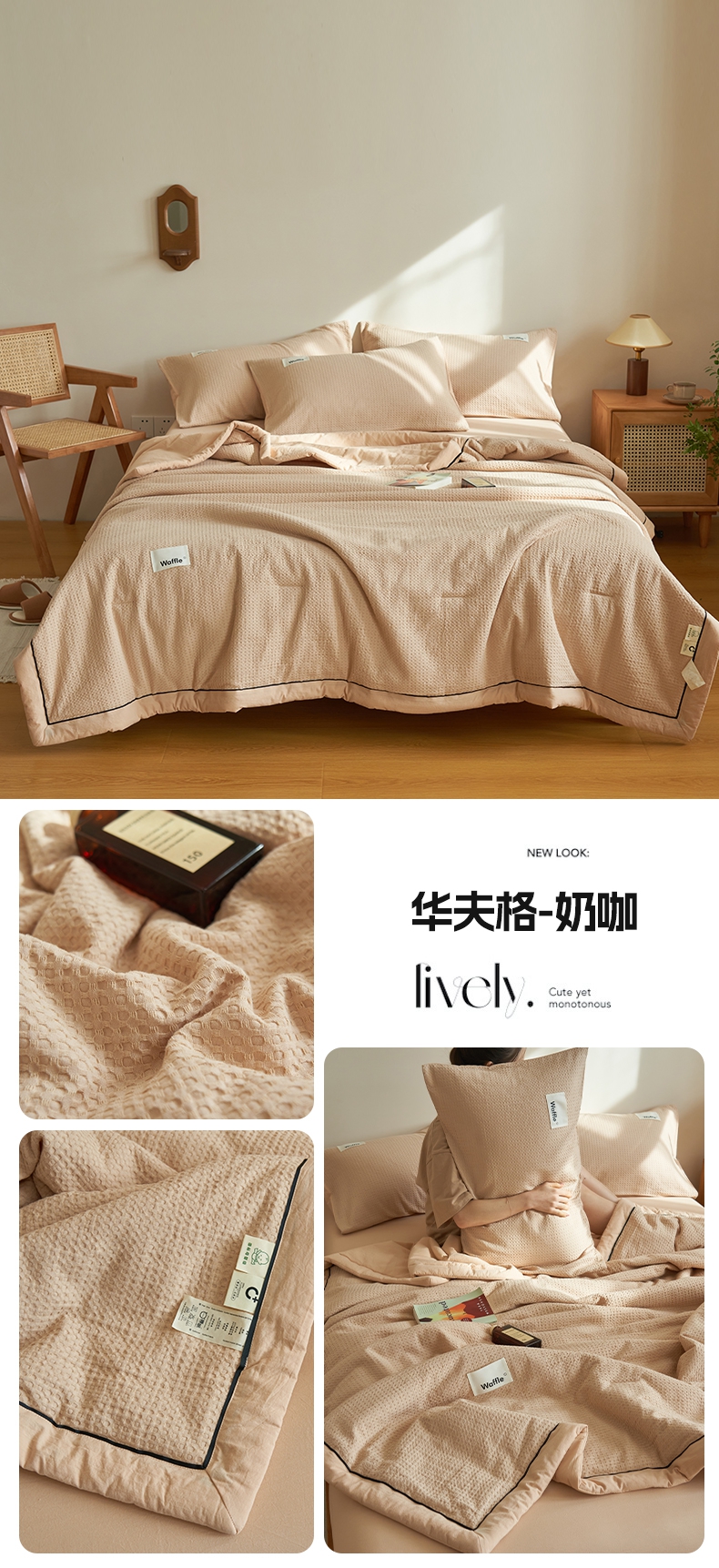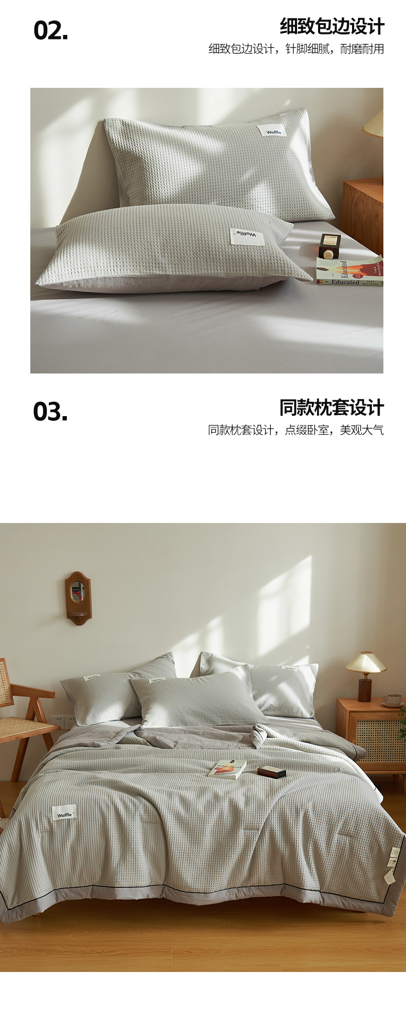 • 91家纺网 家纺一手货源 找家纺 寐绸家纺 2025新款40支纯棉水洗棉华夫格北欧风新疆棉花夏被四件套 华夫格-浅灰