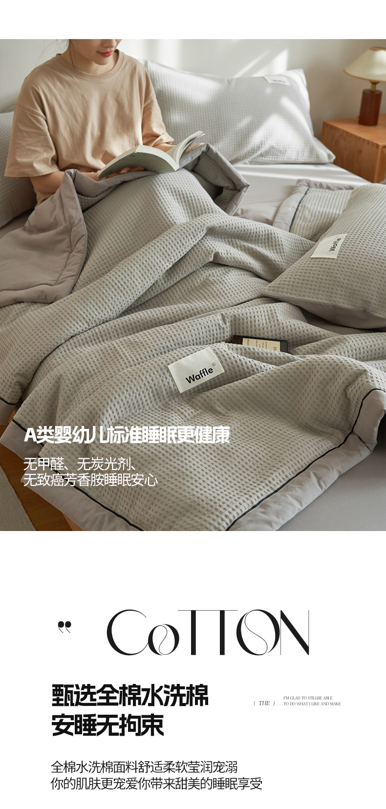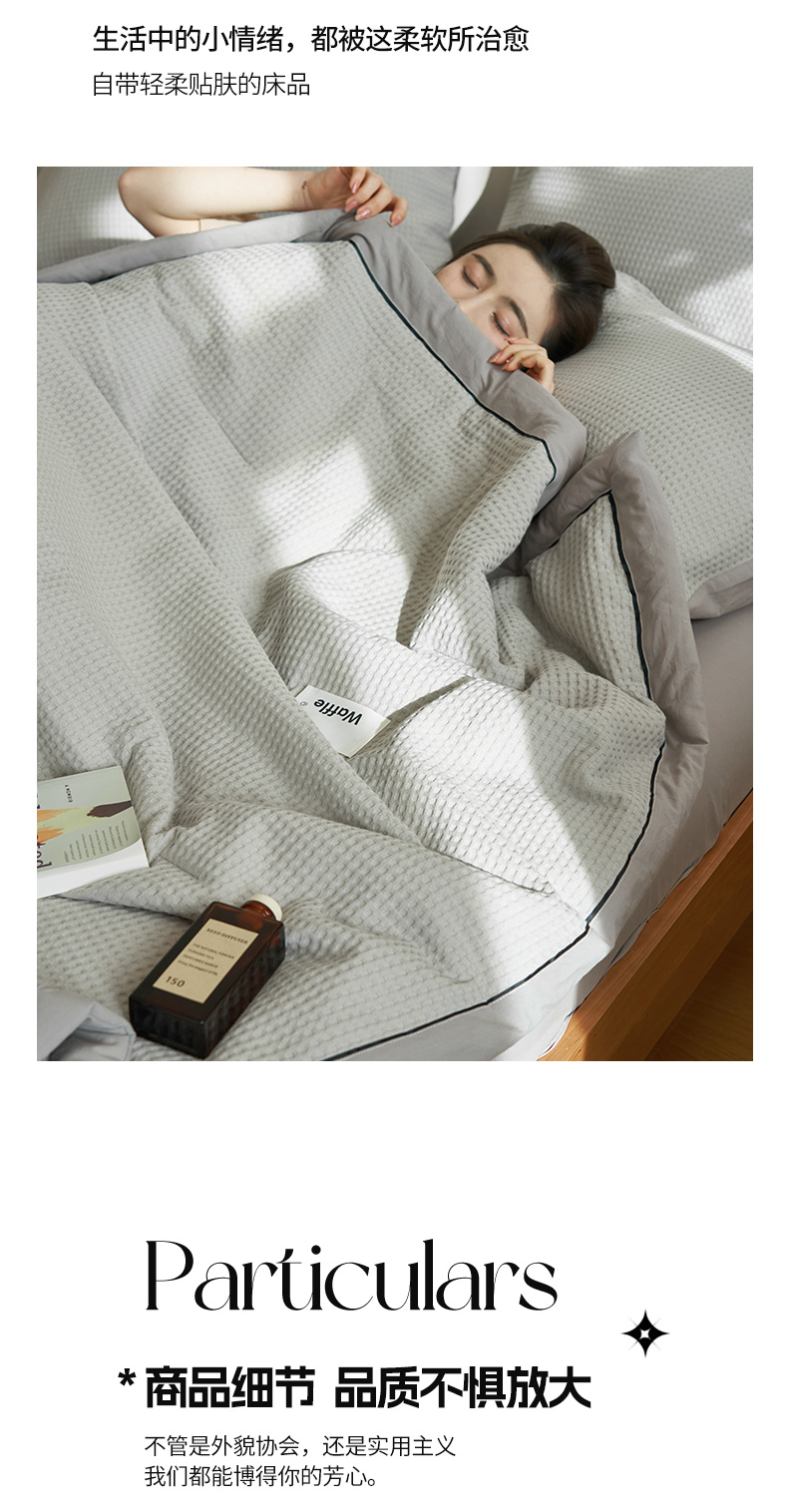 当前位置: 91家纺网 > 商品网购 > 被子 > 夏被 > 寐绸家纺 2025新款40支纯棉水洗棉华夫格北欧风新疆棉花夏被四件套 华夫格-浅灰