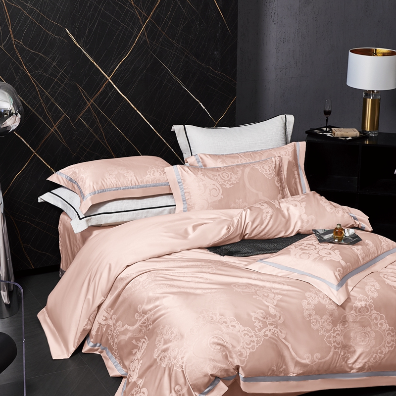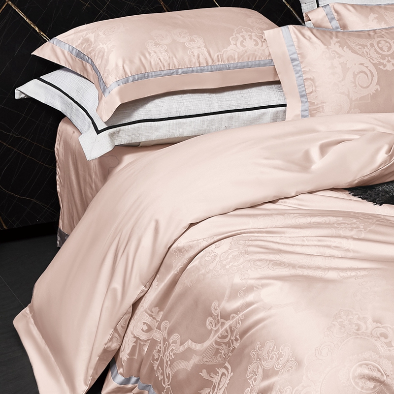 商品名称:JUICY 橘滋家纺 2025新款高奢意式奢享色织大提花系列四件套 瓦尔纳拾光-粉豆沙