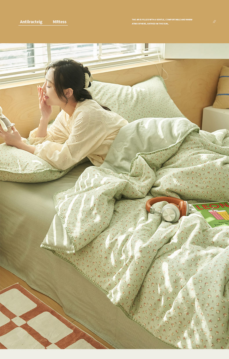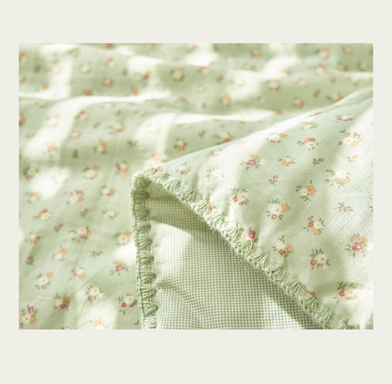 • 91家纺网 家纺一手货源 找家纺 寐绸家纺 2025新款纯棉双层纱印花大豆纤维夏被四件套 双层纱-花蕊