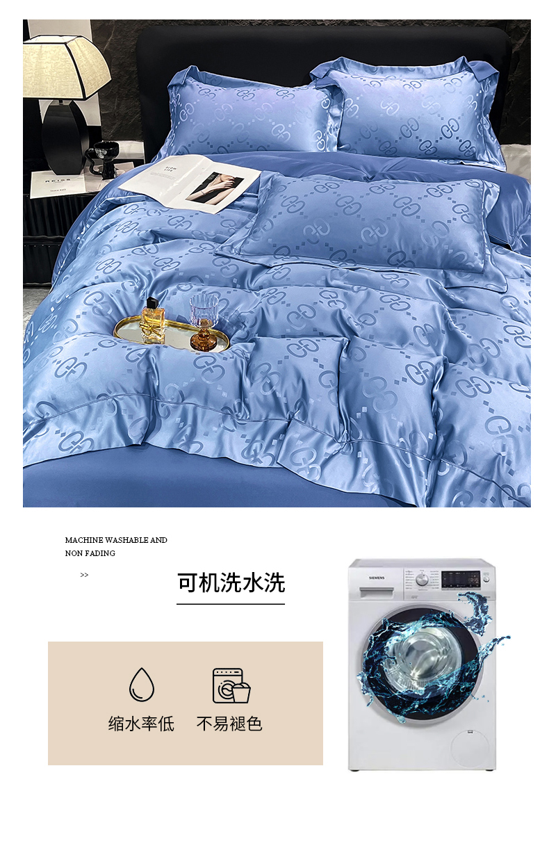 (总) 新25 经年2025年 水洗真丝冰丝天丝提花四件套直播爆款 格林系列 ,格林-宝蓝,格林-粉玉,格林-浅灰,格林-天蓝,格林-香槟