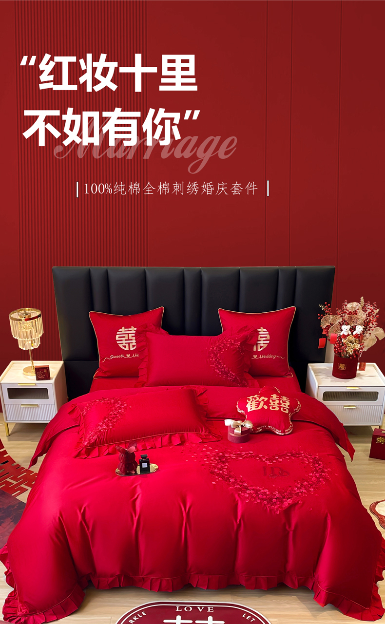 甜咪咪婚庆 2025新款纯棉全棉面料刺绣结婚 婚庆 四件套 多件套 小红书推荐热款 甜蜜婚礼