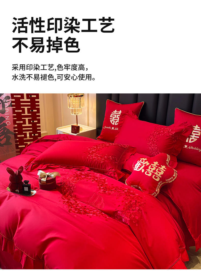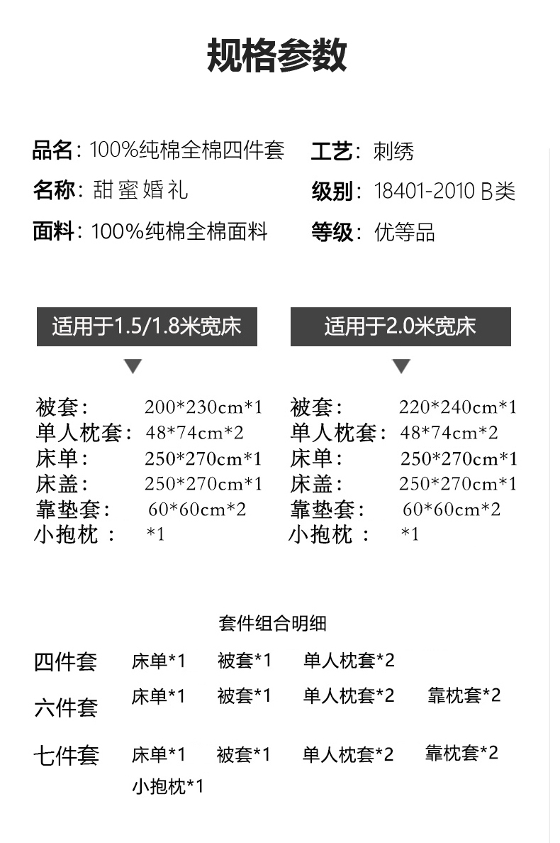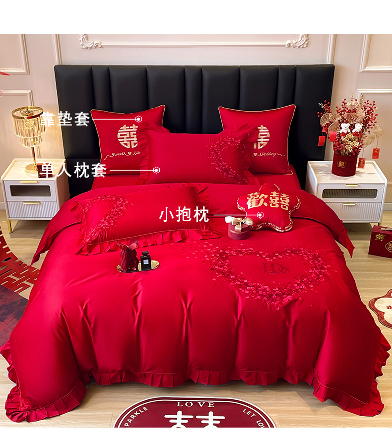 (总)甜咪咪婚庆 2025新款50支长绒棉全棉婚庆床单床盖四件套多件套刺绣工艺,洛可可,爱恋小熊,爱意久久,多子多福,花田喜事,节节高升,克拉恋人,浪漫情怀,怦然心动红,怦然心动玉,甜心玫瑰,温莎公主,伊甸园,醉红妆