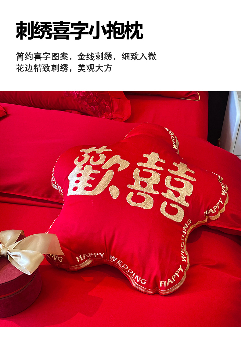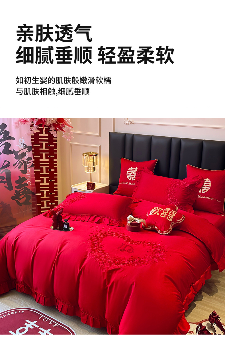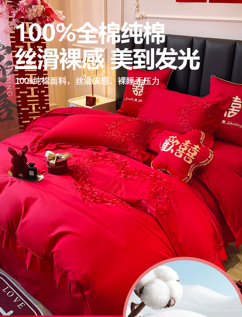 商品名称:甜咪咪婚庆 2025新款纯棉全棉面料刺绣结婚 婚庆 四件套 多件套 小红书推荐热款 甜蜜婚礼