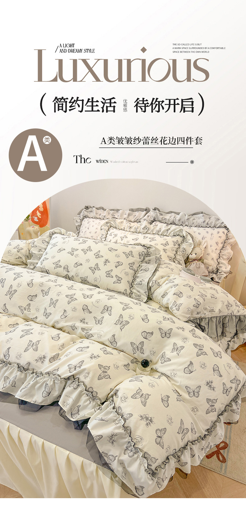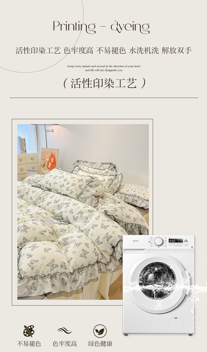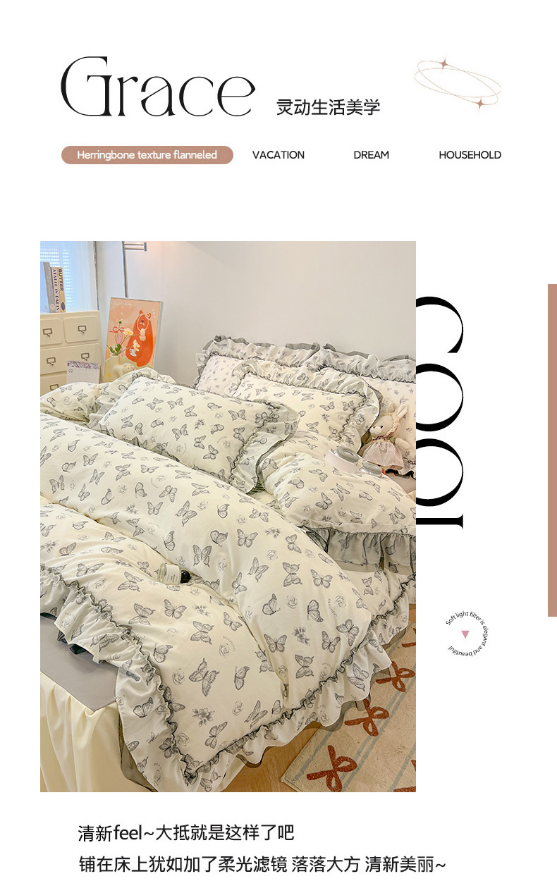 当前位置: 91家纺网 > 商品网购 > 床品套件 > 四件套 > 其它四件套 > 眠帛家居 2025新款A类皱皱纱蕾丝花边四件套 蝶舞