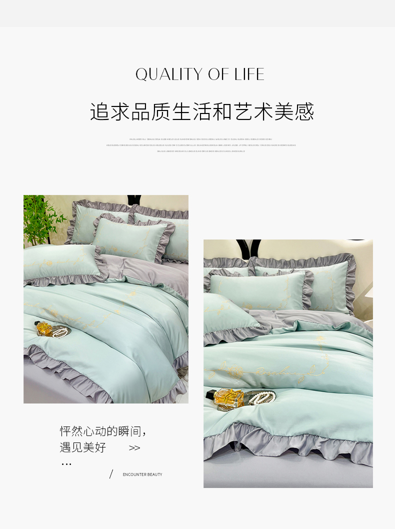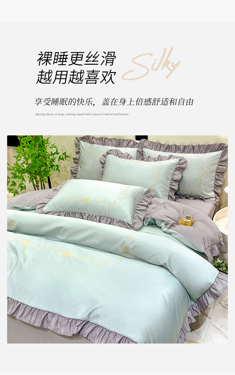 当前位置: 91家纺网 > 商品网购 > 床品套件 > 四件套 > 夏被四件套 > 经年 2025年水洗真丝韩版夏被直播爆款 一世系列 一世-抹茶浅灰