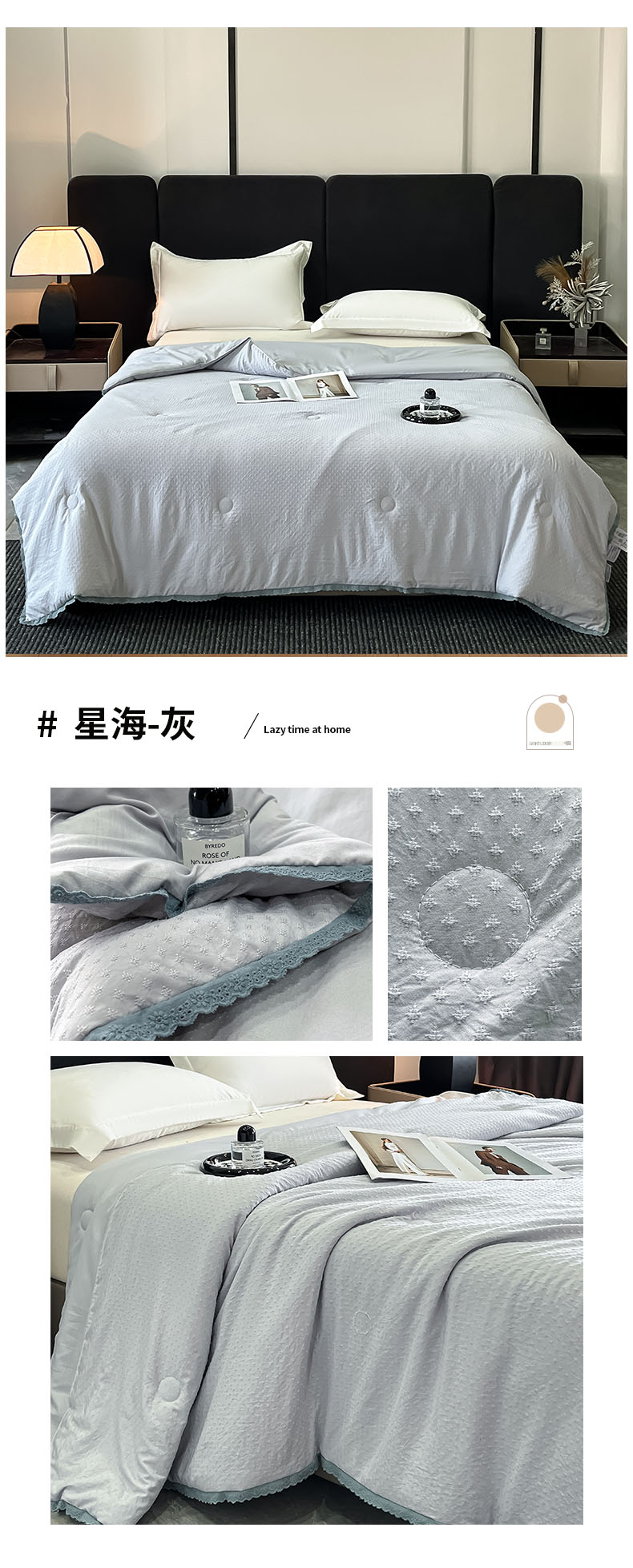 商品名称:鑫琪莱 2025新款提花花边大豆夏被夏凉被空调被 星海-灰