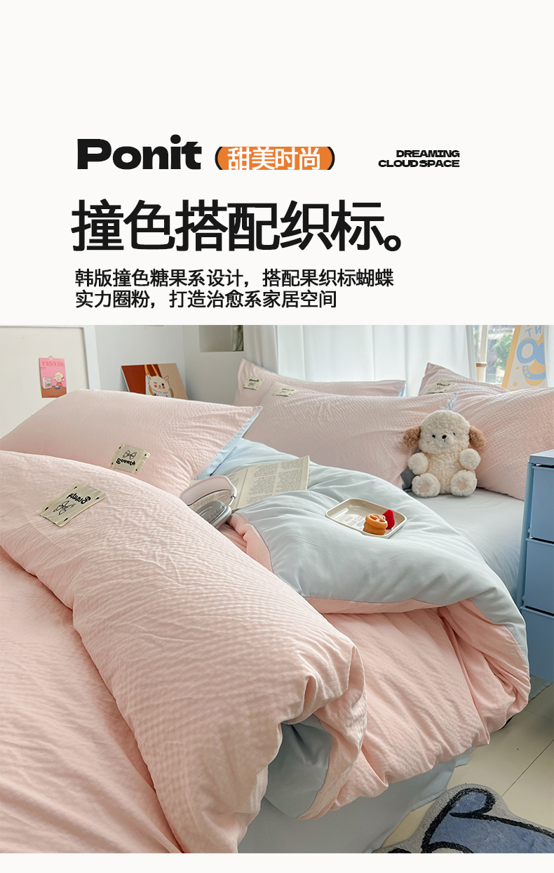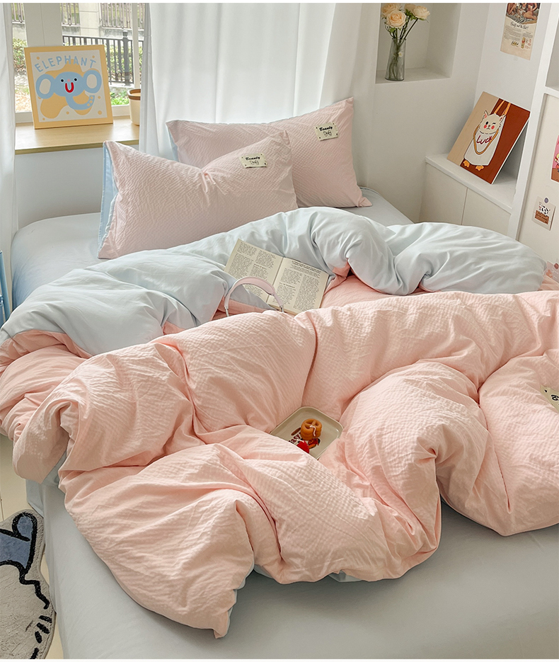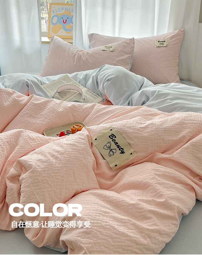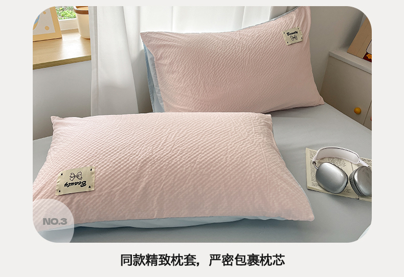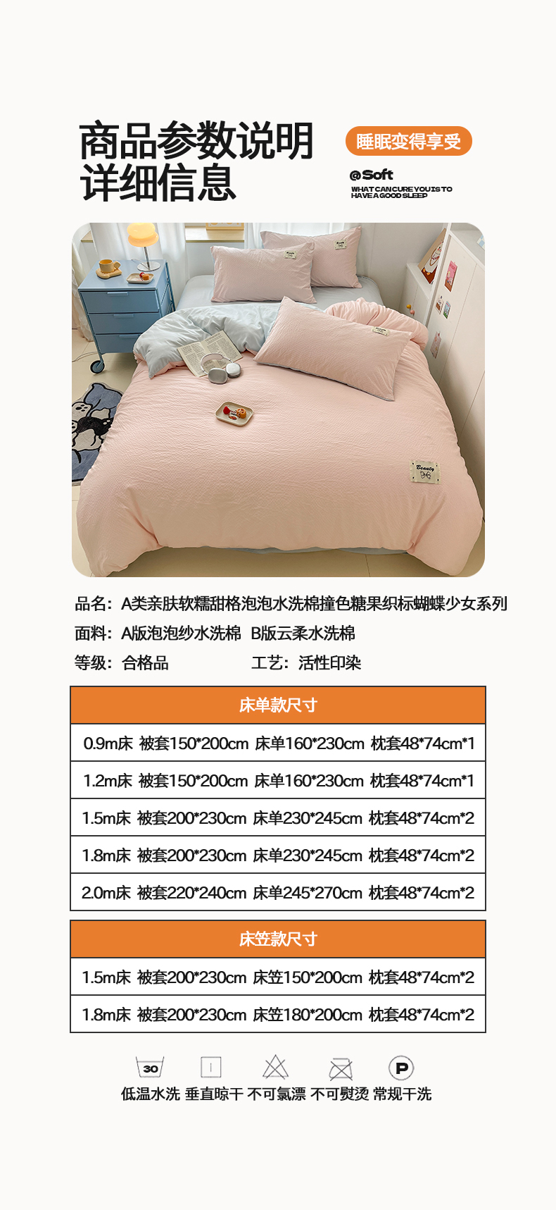 当前位置: 91家纺网 > 商品网购 > 床品套件 > 四件套 > 水洗棉四件套 > 桃心家居 2025新款A类韩系亲肤软糯甜格泡泡水洗棉撞色奶呼呼织标蝴蝶少女四件套 泡泡水洗棉-甜格粉蓝