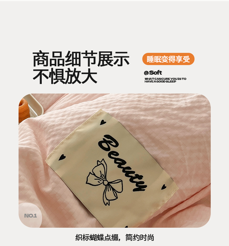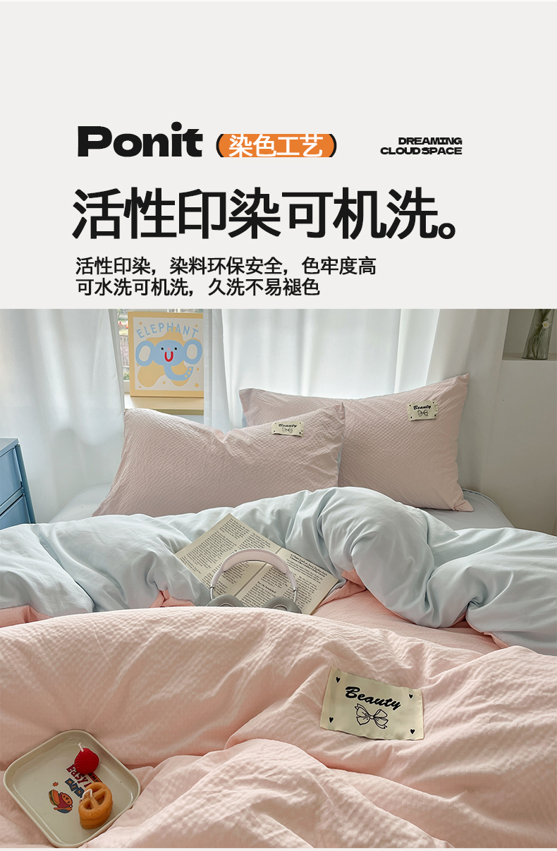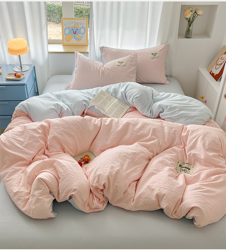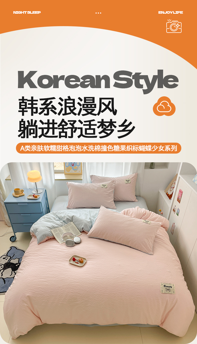 当前位置: 91家纺网 > 商品网购 > 床品套件 > 四件套 > 水洗棉四件套 > 桃心家居 2025新款A类韩系亲肤软糯甜格泡泡水洗棉撞色奶呼呼织标蝴蝶少女四件套 泡泡水洗棉-甜格粉蓝