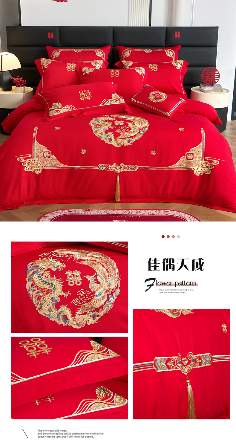 商品名称:(总)张公子婚庆馆2025新款长绒棉新中式精美刺绣婚庆四件套(控价不低于328)