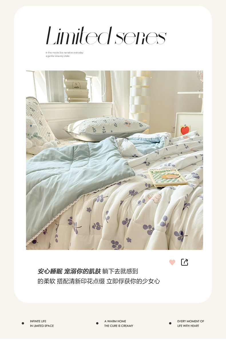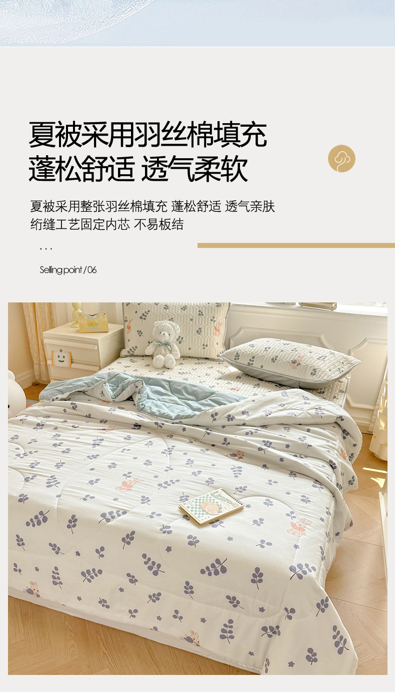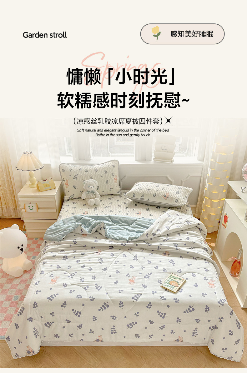 当前位置: 91家纺网 > 商品网购 > 床品套件 > 四件套 > 夏被四件套 > 慕尚家纺 2025春夏新款乳胶凉席水洗棉夏被夏凉被空调被三件套四件套 兔稚