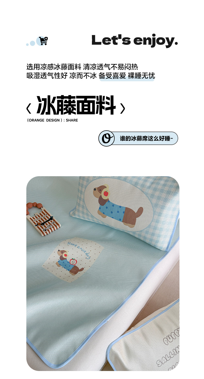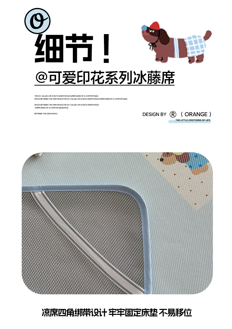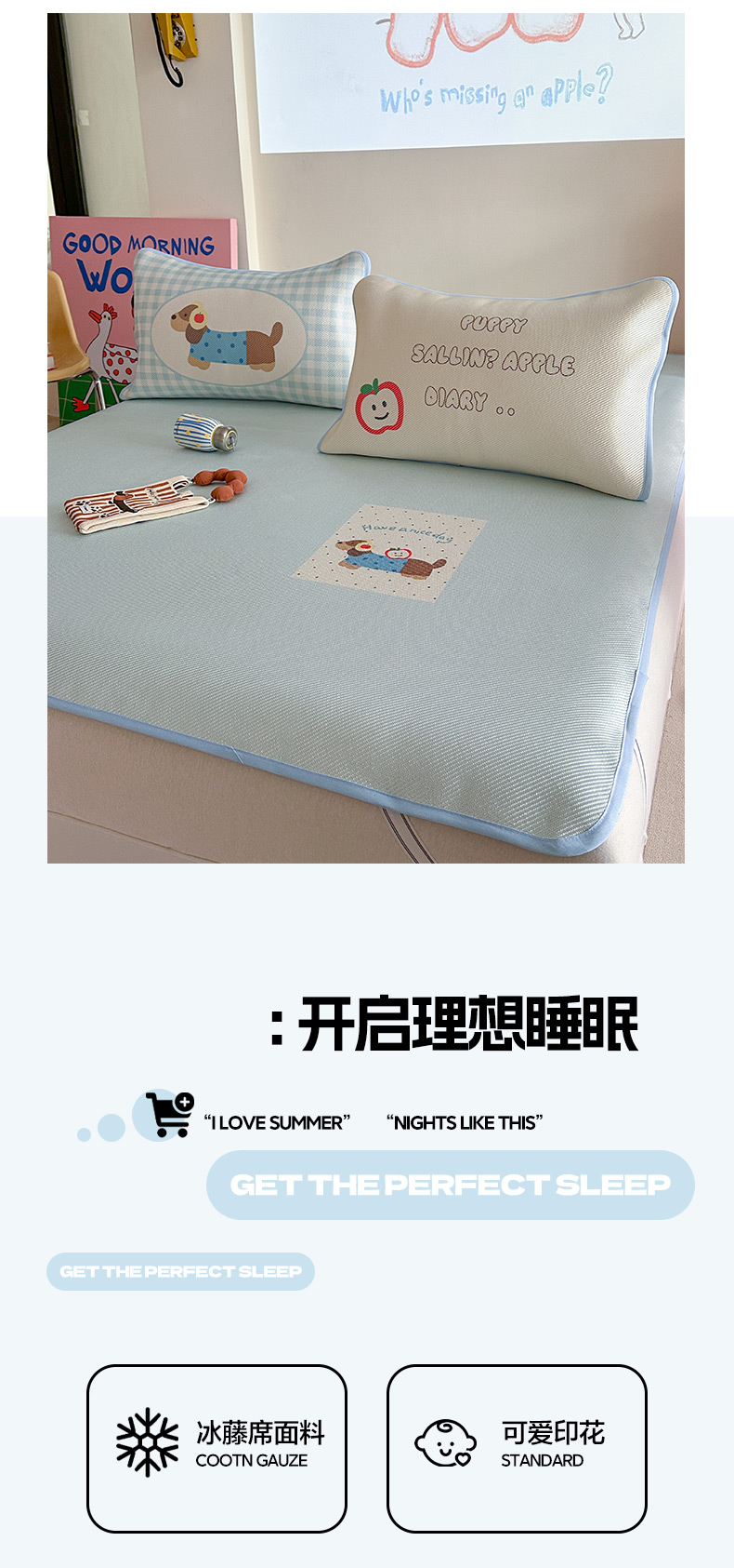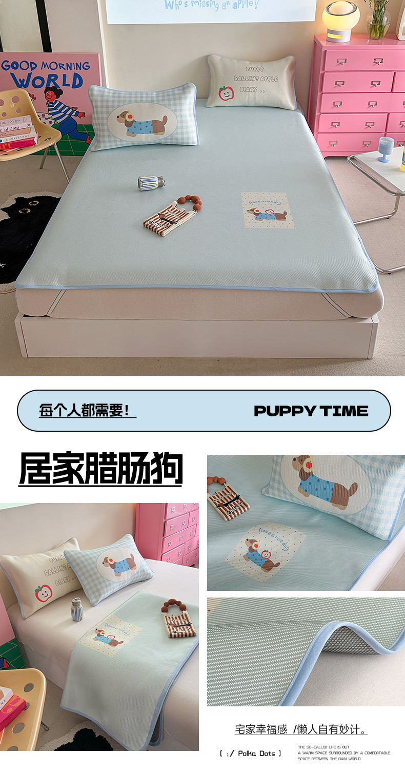 商品名称:美乐迪家纺 2025新款数码印花养生冰藤凉席 居家腊肠狗