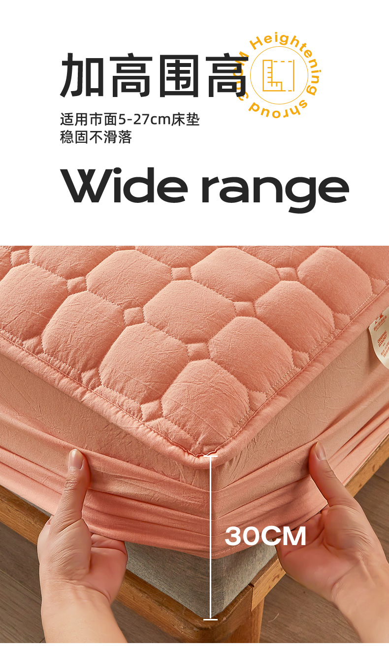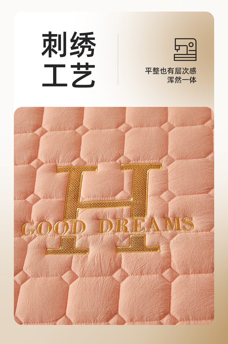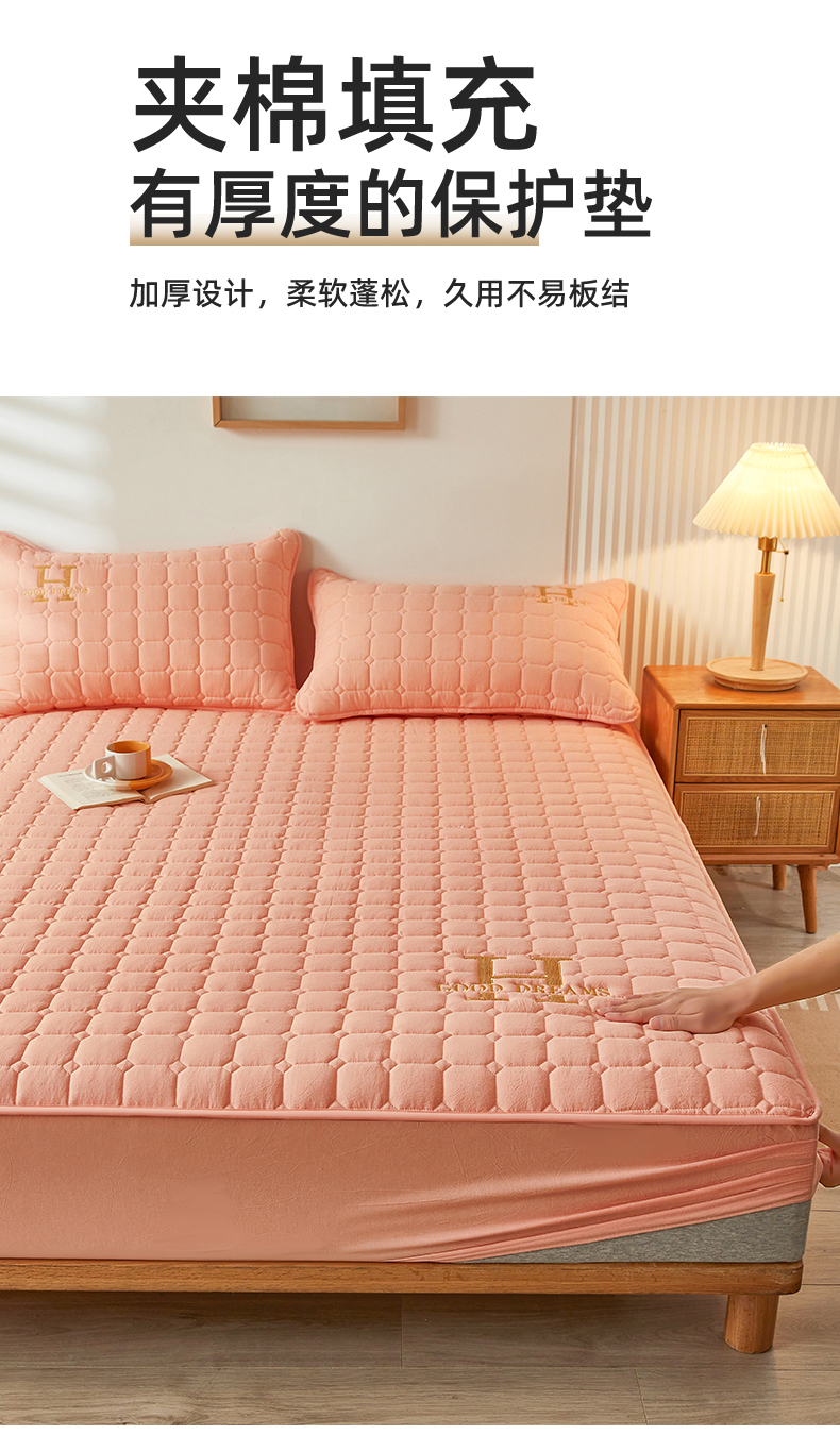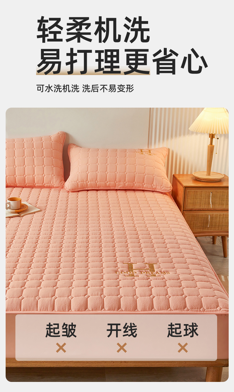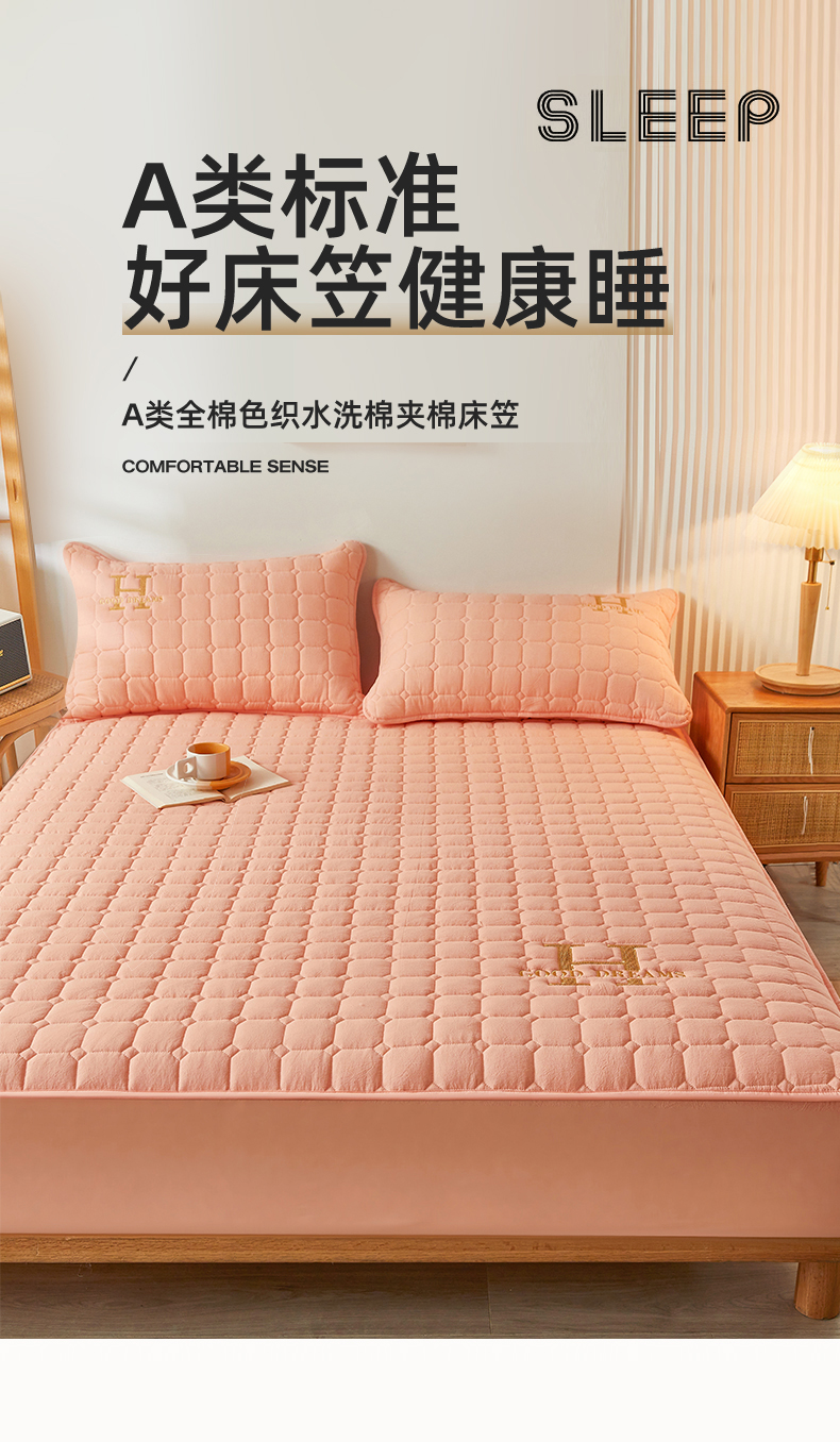 商品名称:恒爱家纺 2025新款H系列全棉色织水洗棉床笠 皮粉