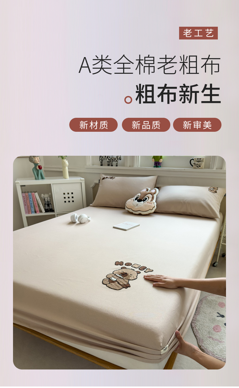 (总)席世家 2025新款全棉纯棉水洗棉床笠单床笠,水洗棉-呆萌熊,水洗棉-彩虹,水洗棉-可爱兔,水洗棉-盼盼,水洗棉-曲奇,水洗棉-小黑猫,水洗棉-星愿
