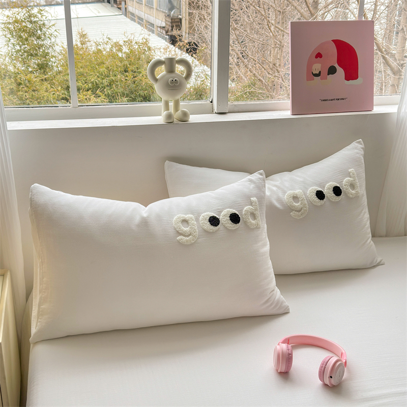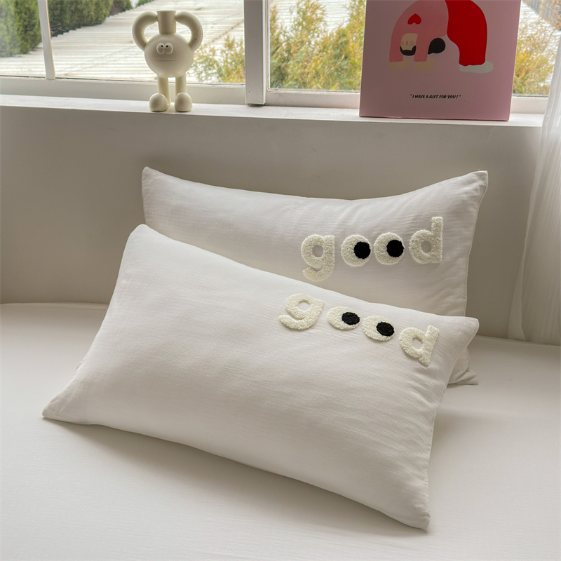 商品名称:丽涵 2025新款全棉纯棉大雁纹绣花单品枕套 good象牙白