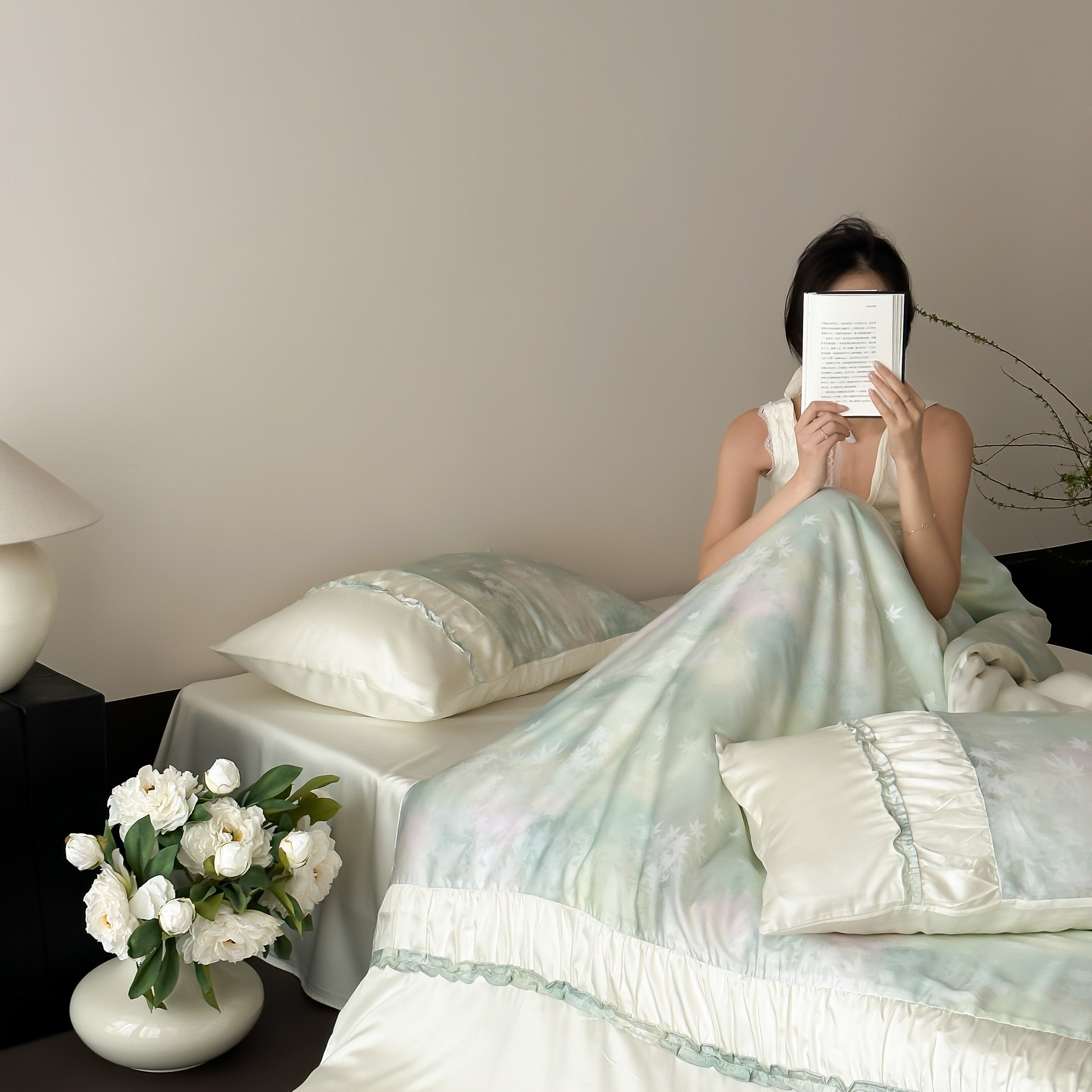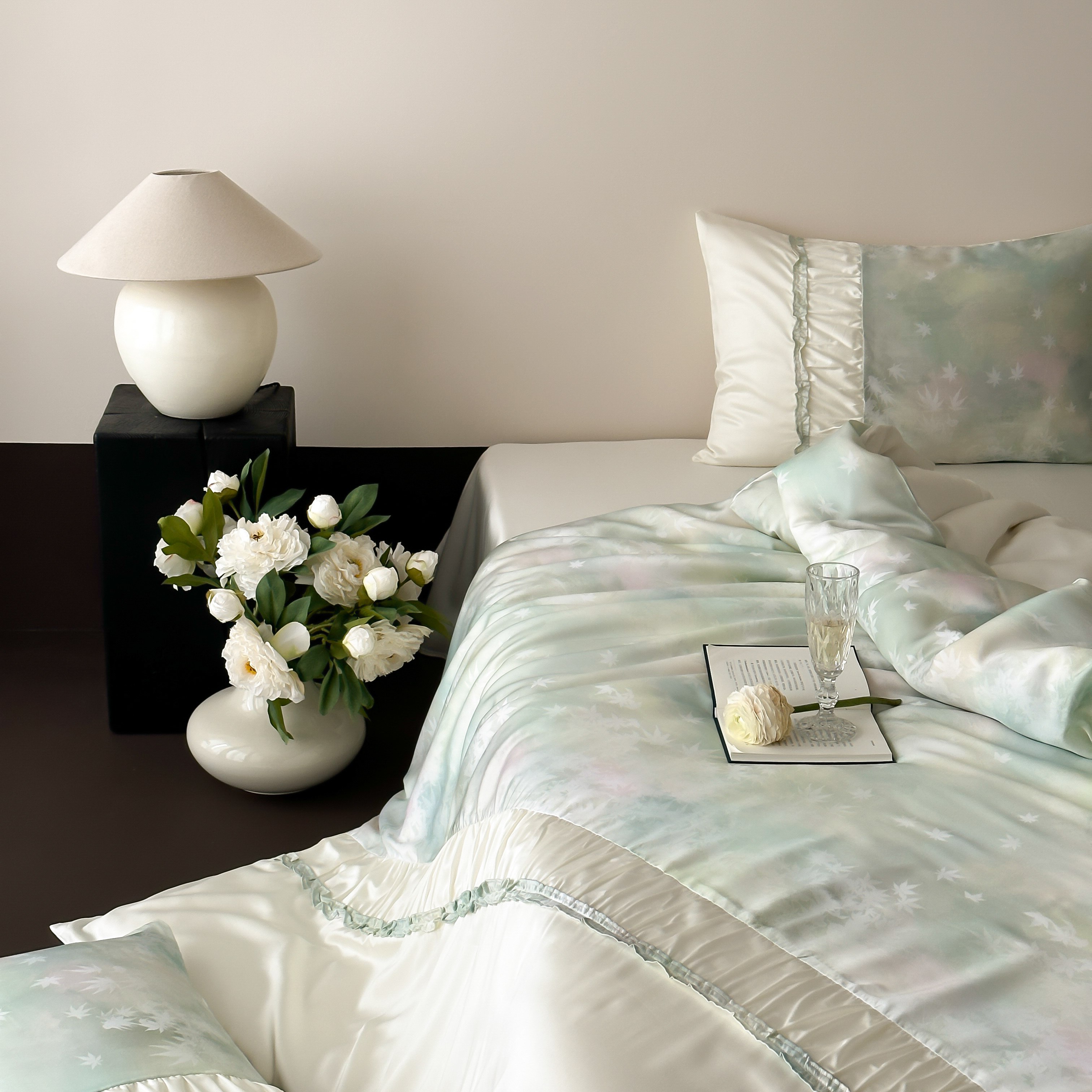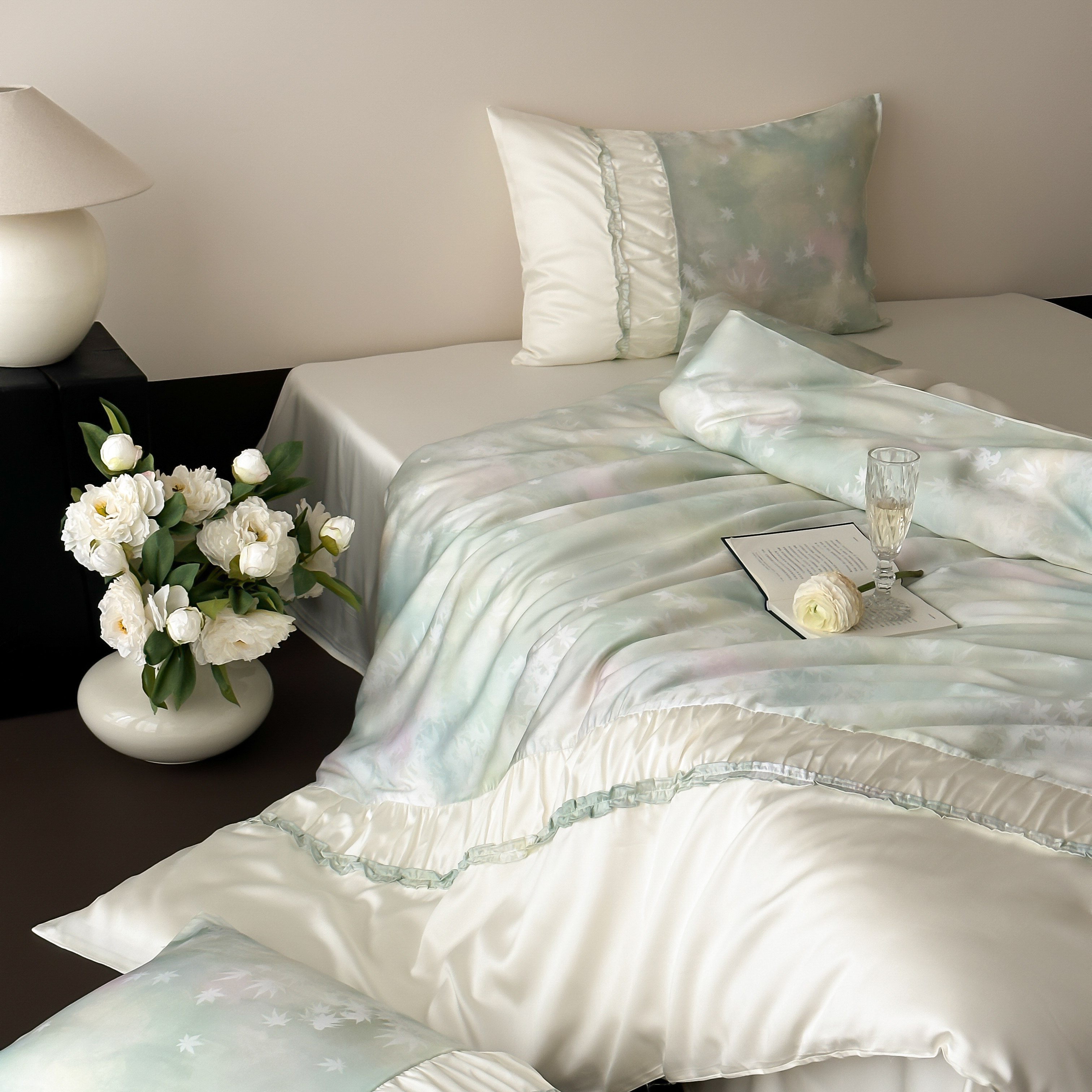 玉宇阁 2025春夏新款60S兰精天丝印花四件套-薇之白 薇之白-蜜雪轻霜