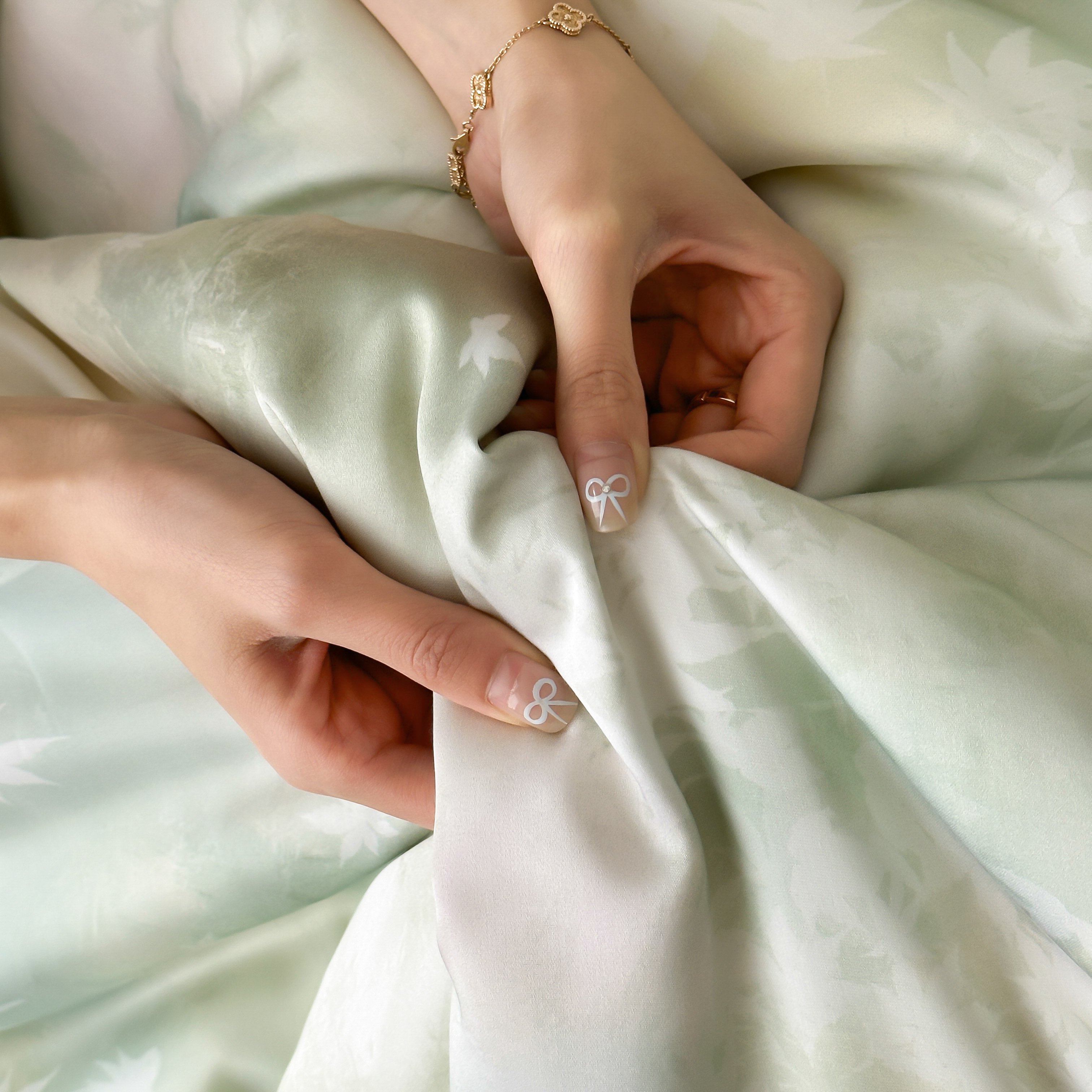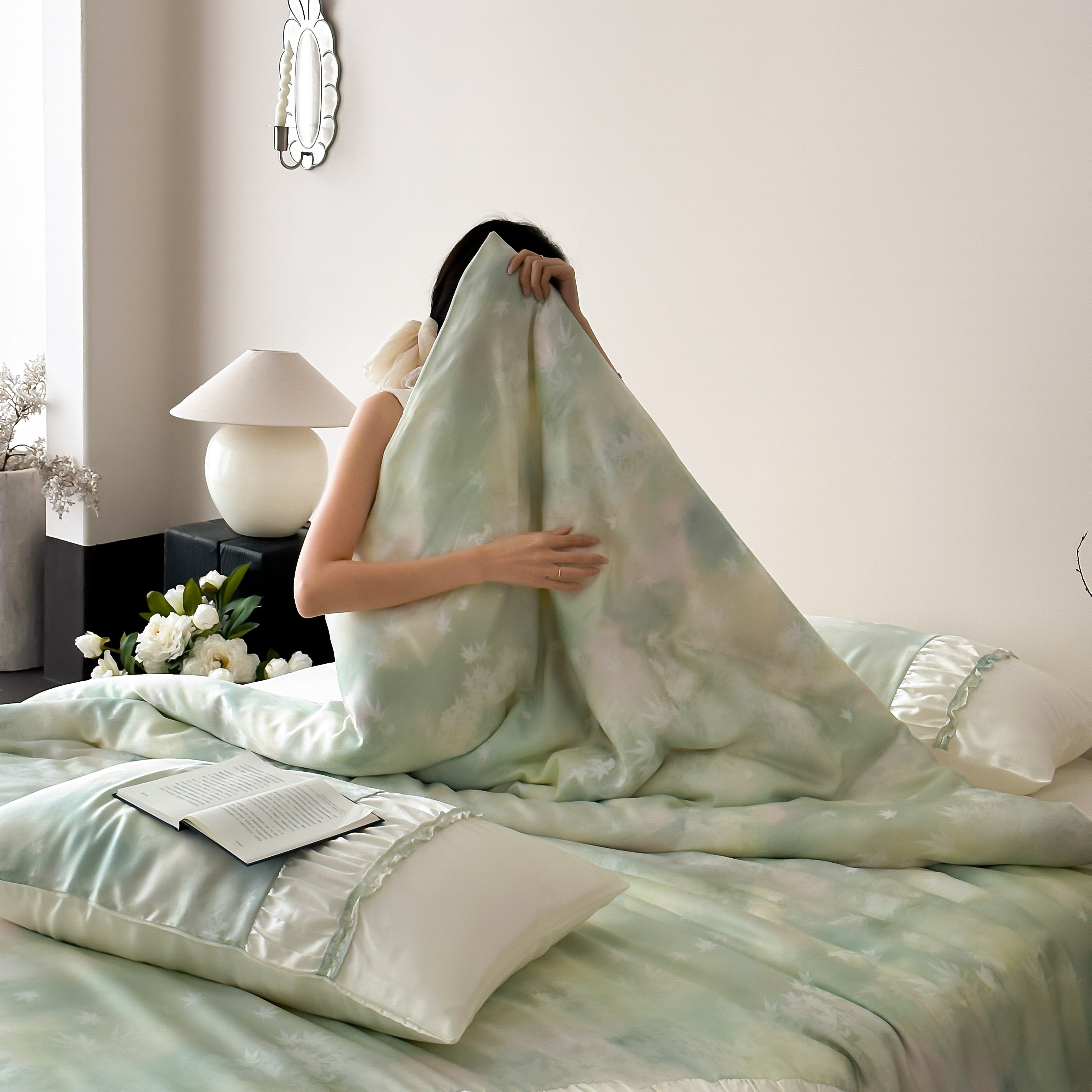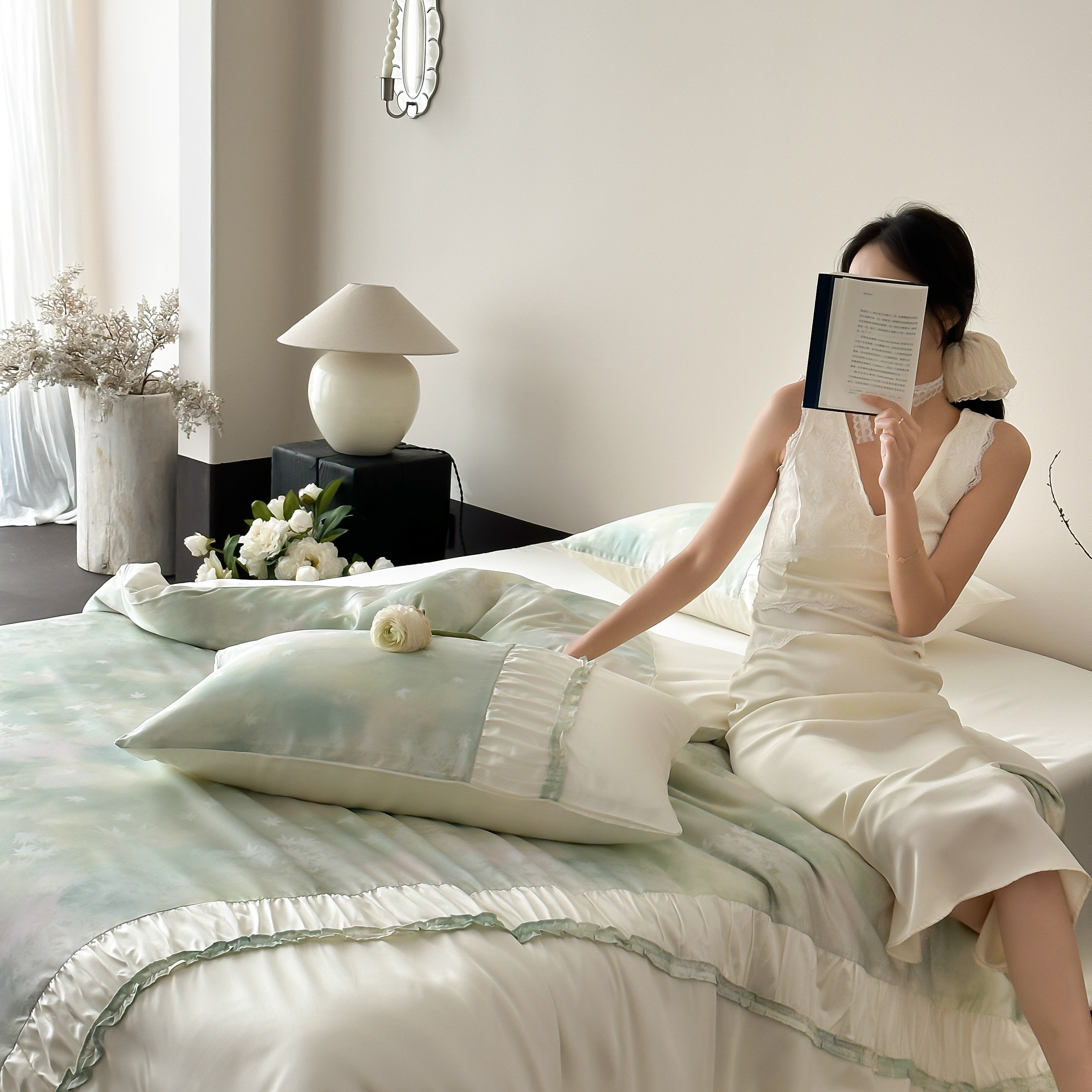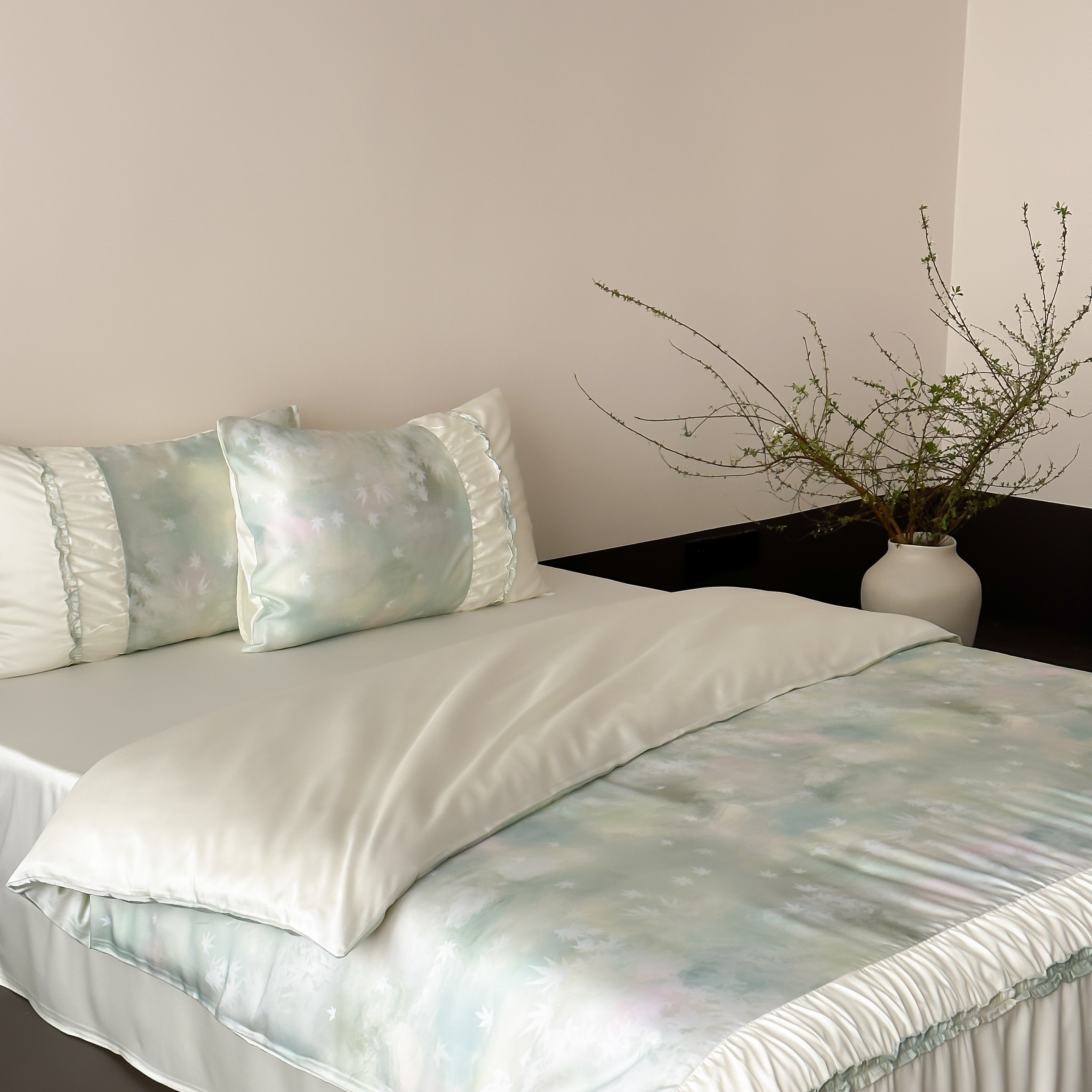 玉宇阁 2025春夏新款60S兰精天丝印花四件套-薇之白 薇之白-蜜雪轻霜