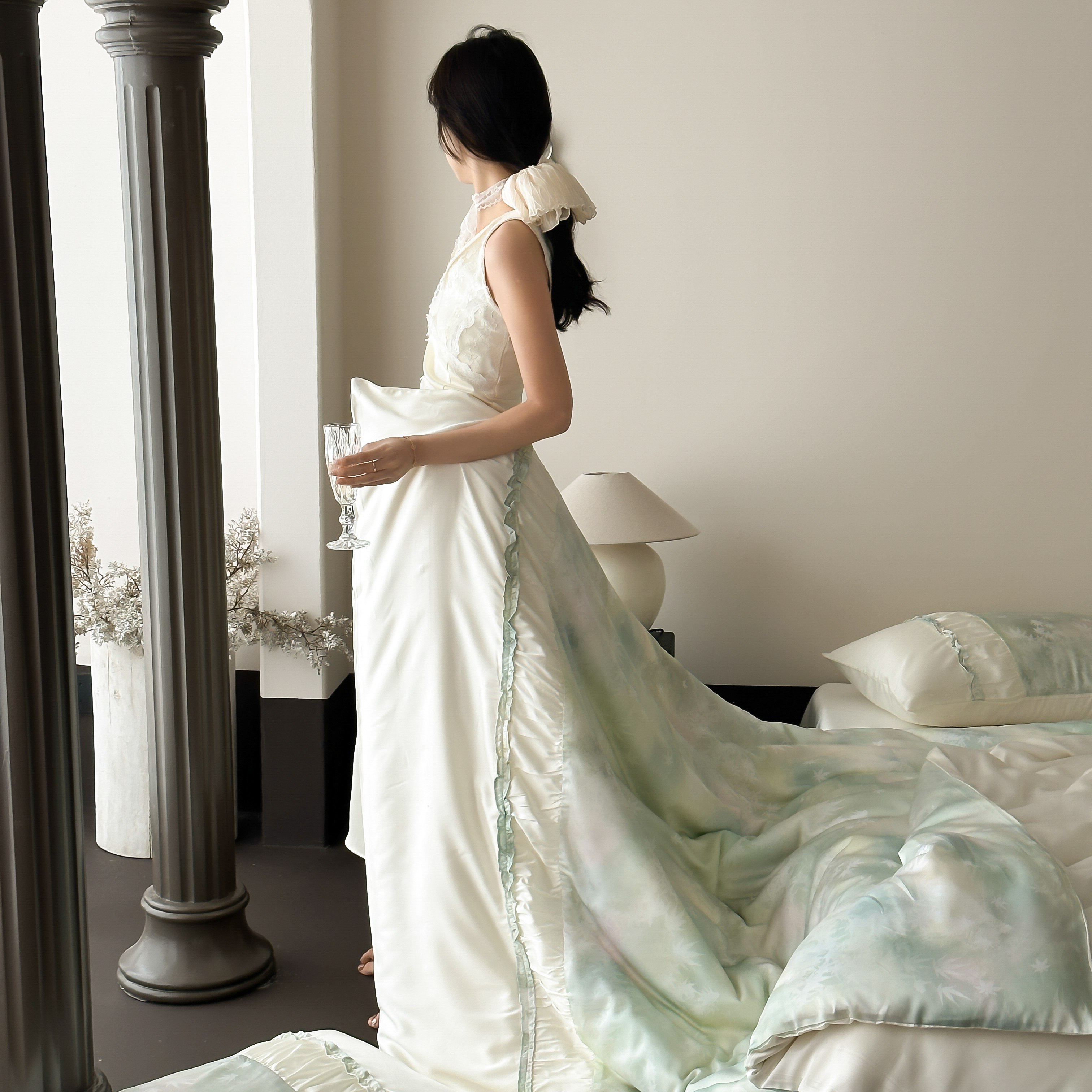 (总)玉宇阁家居 2023新款春夏60支兰精天丝拼色四件套,都市灰香槟,海盐松露,芥末黄香槟,裸粉香槟,茉莉奶绿,浅灰鹅黄,若草乳白