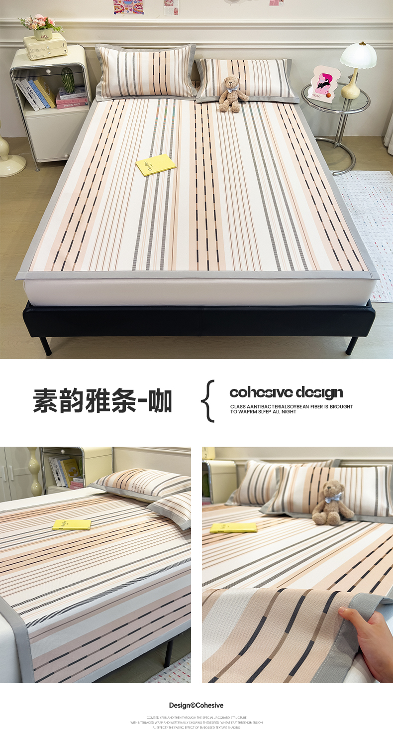 商品名称:摩妮卡 2025小清新数码冰丝席 碳光席三件套 素韵雅条-咖