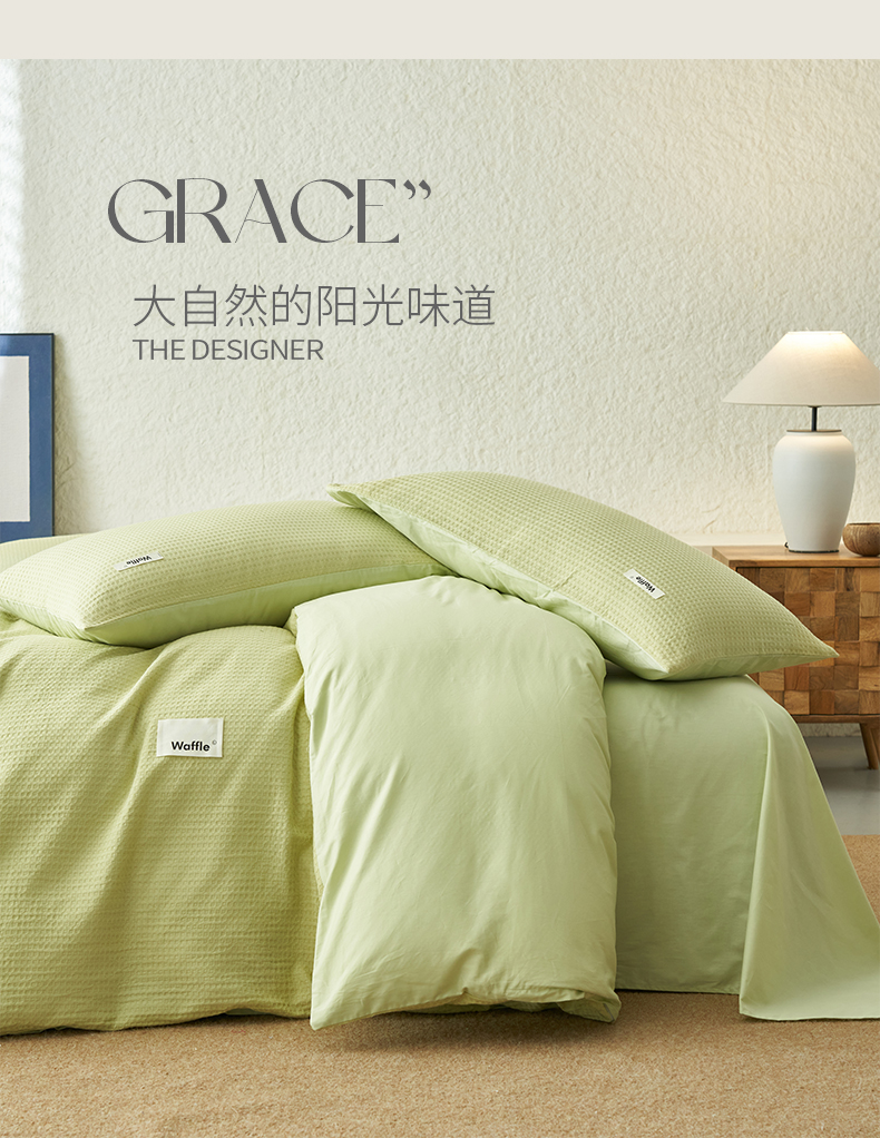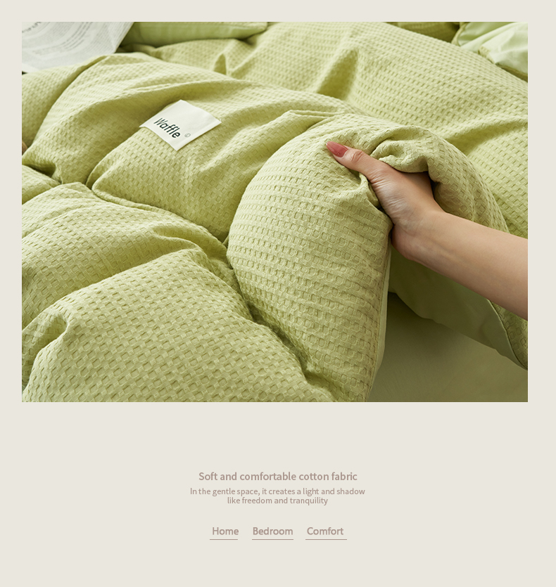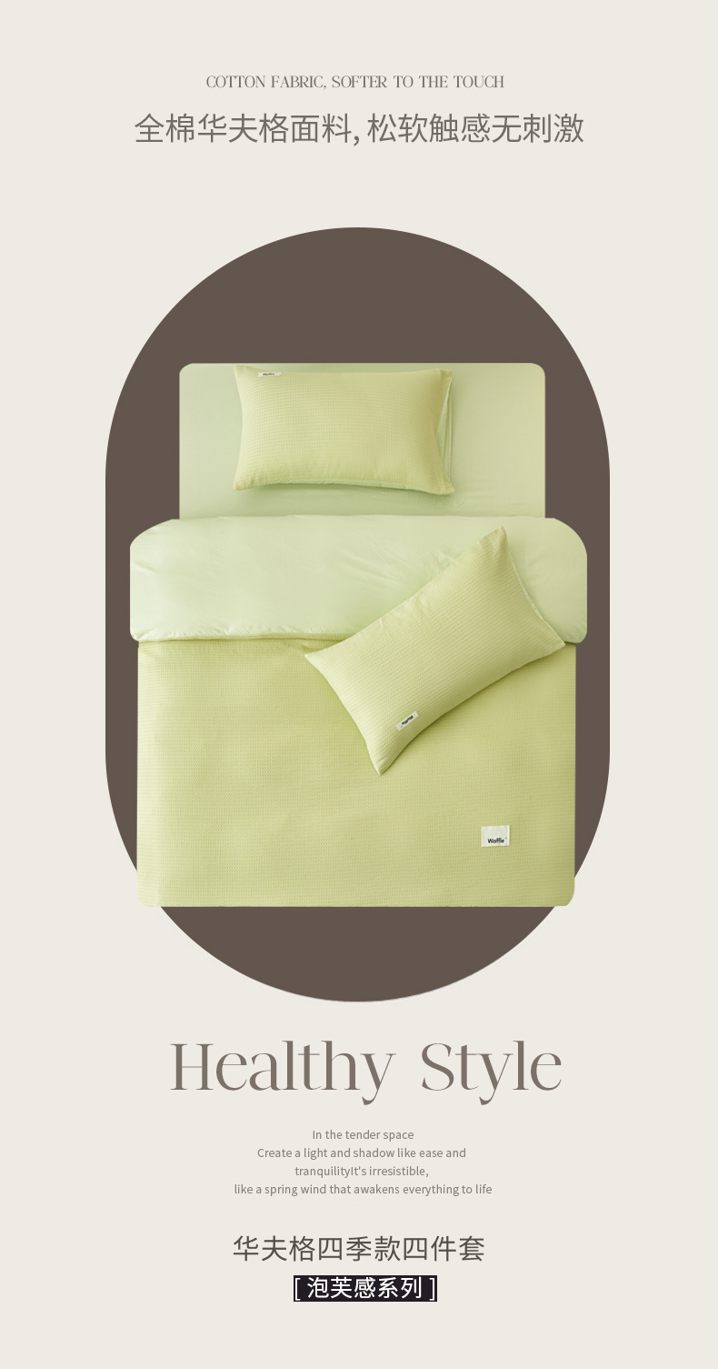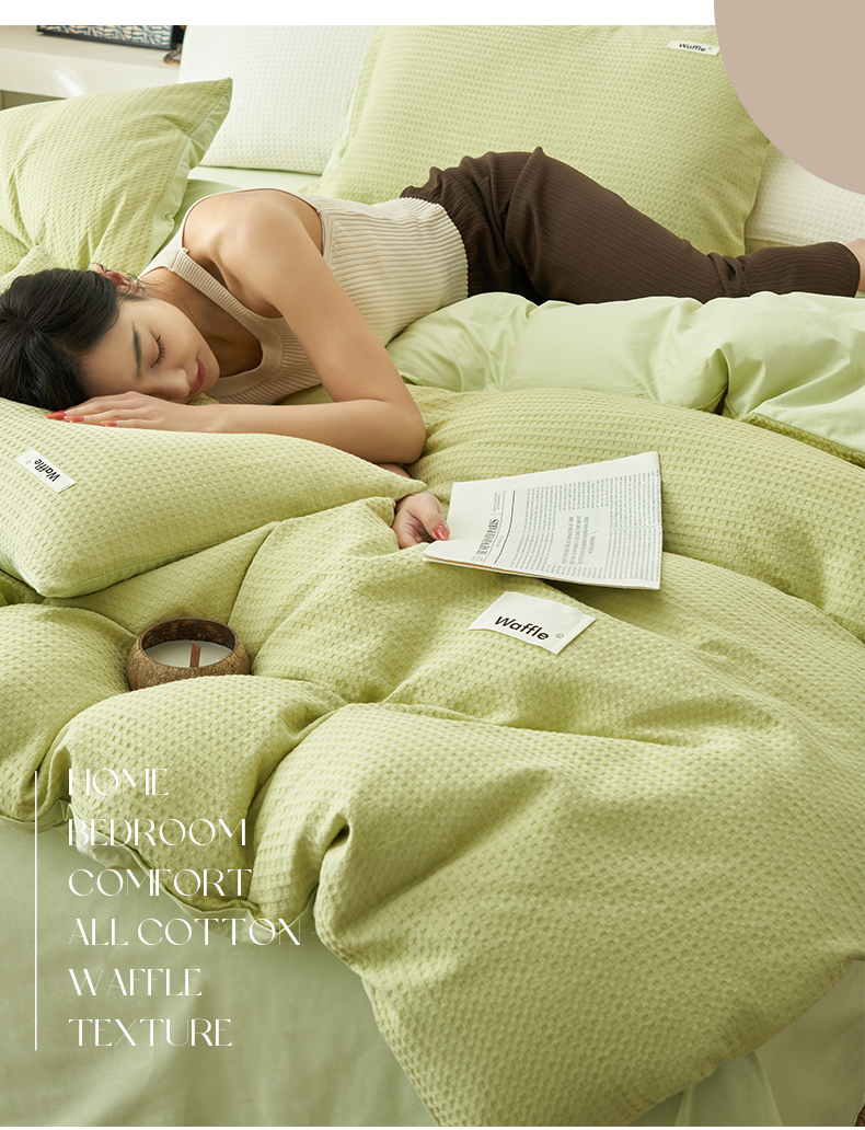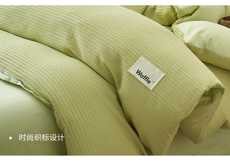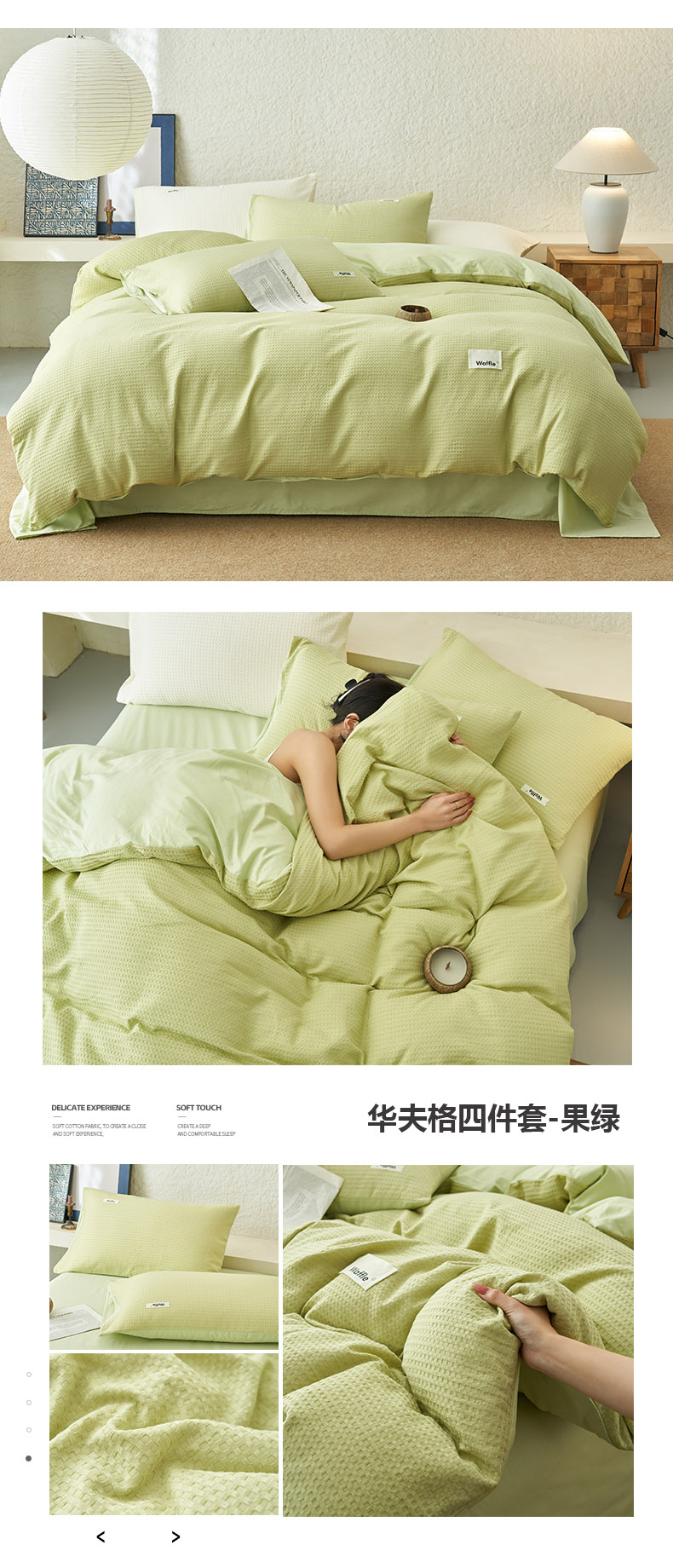 商品名称:寐绸家纺 2025新款纯棉华夫格四件套 华夫格四件套-果绿