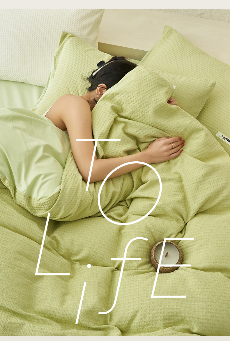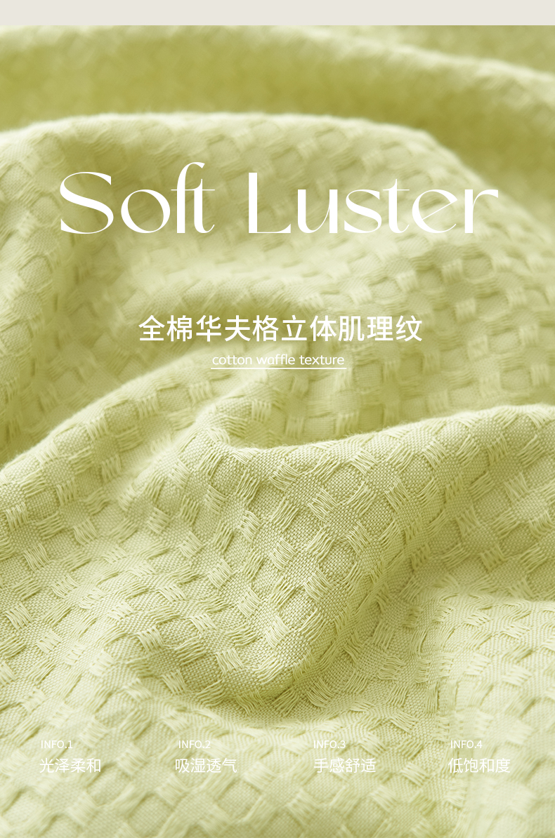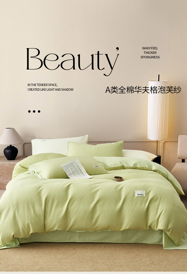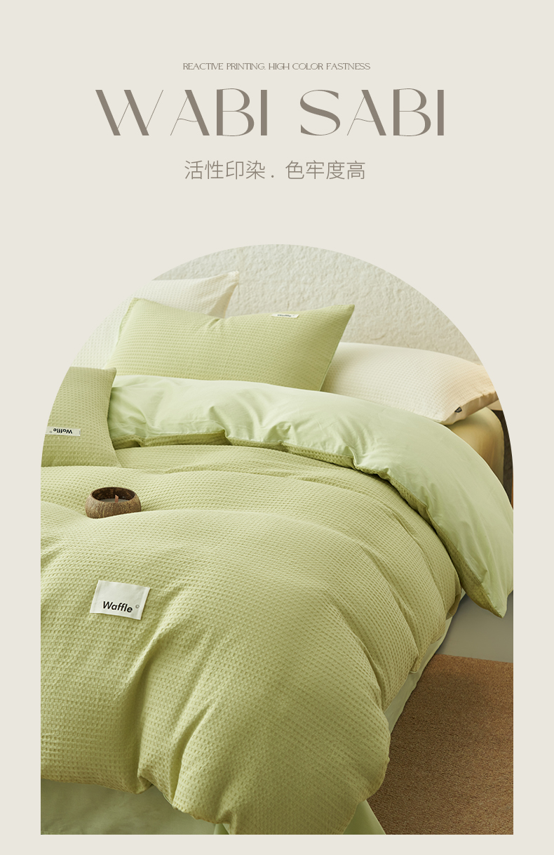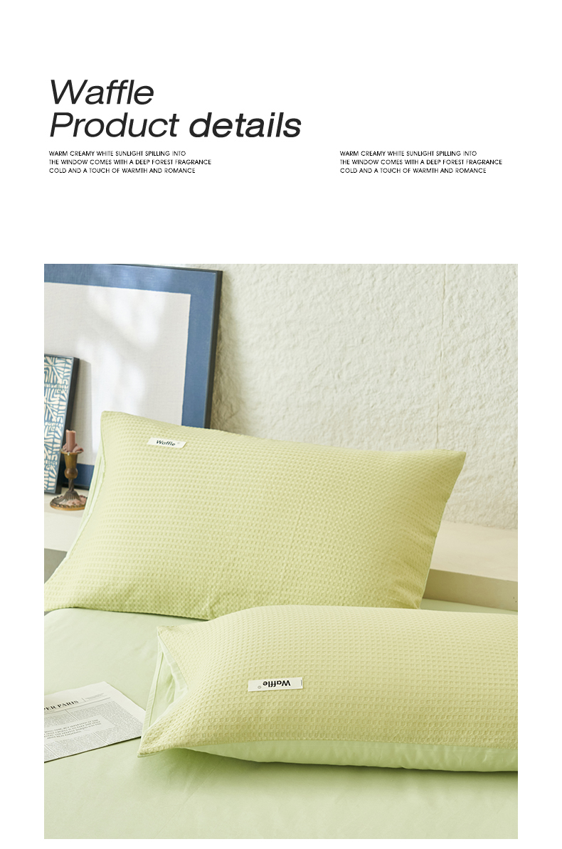 商品名称:寐绸家纺 2025新款纯棉华夫格四件套 华夫格四件套-果绿