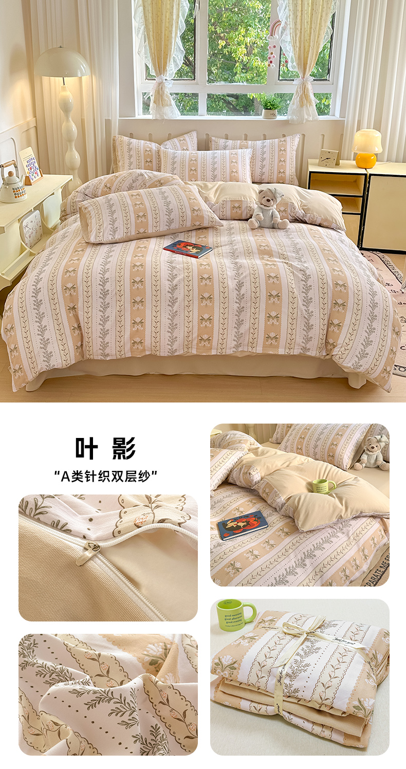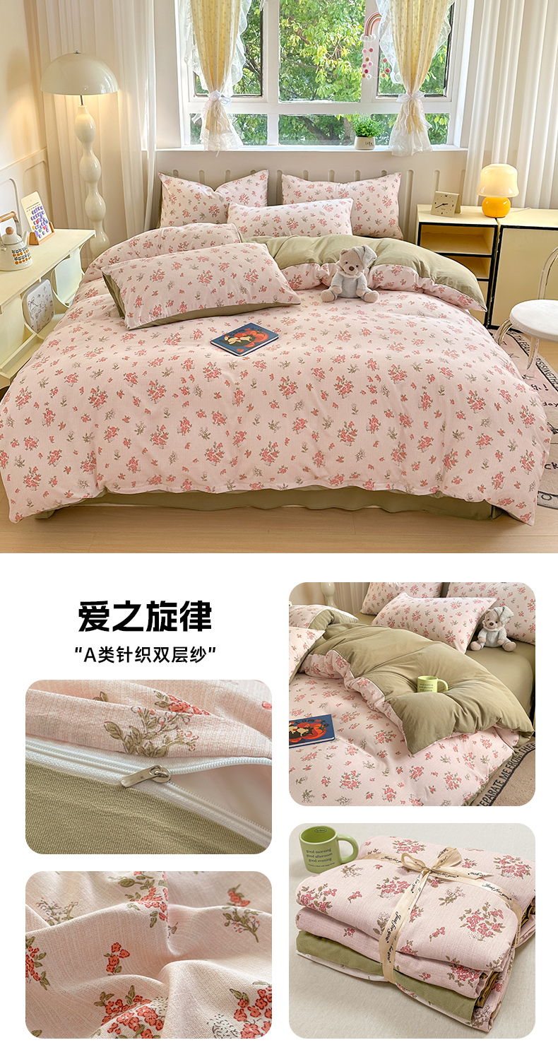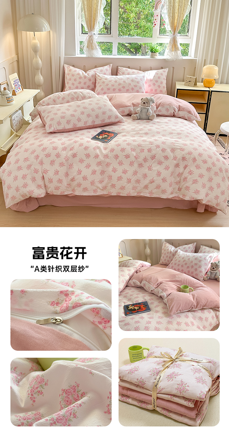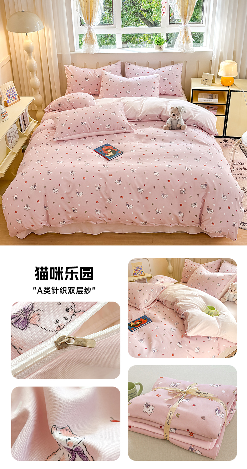 (总)玖明2025新款A类加厚柔软针织棉双层纱四件套,兔梦花开,豹纹,爱之旋律,草莓星愿,纯真时代,蝶梦花香,繁花似锦,富贵花开,格纹经典,果香满园,蝴蝶结-蓝,花叶细语-咖,花影,简约时光,金叶时光,锦绣前程,静谧,林间秘语,绿野仙踪,猫咪乐园,玫瑰之约,萌趣,萌趣小熊,梦回花香,暮光紫苑,绮丽花纹,轻盈叶语,秋实凝香,柔美梦境-粉,柔情玫瑰,小确幸,小樱桃,心语,雅韵花香,叶影,芋泥波波,郁香