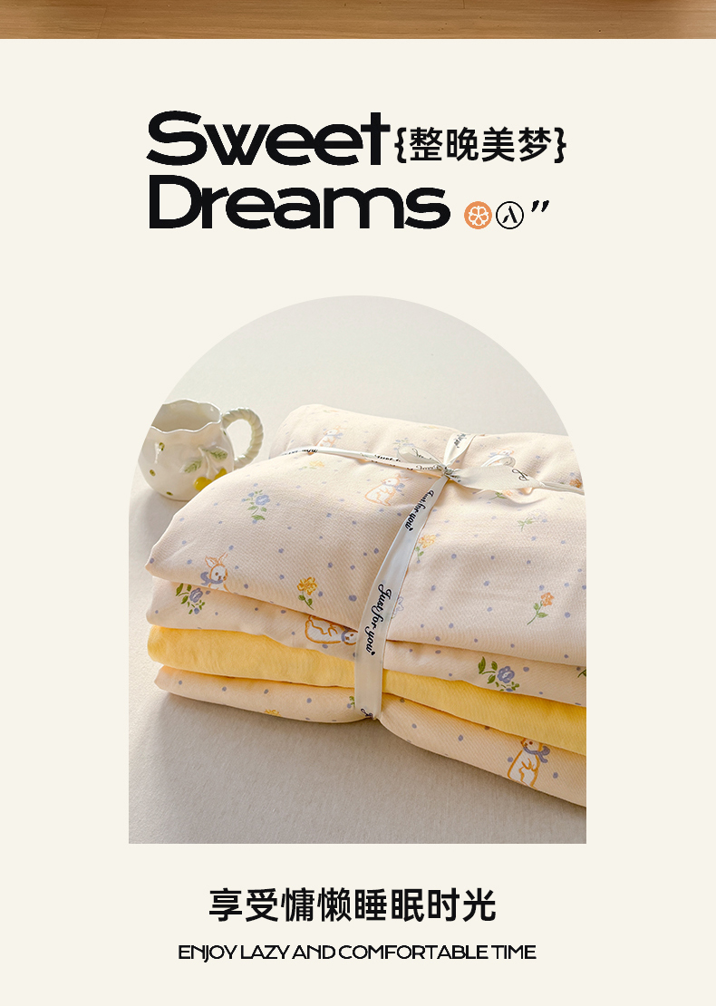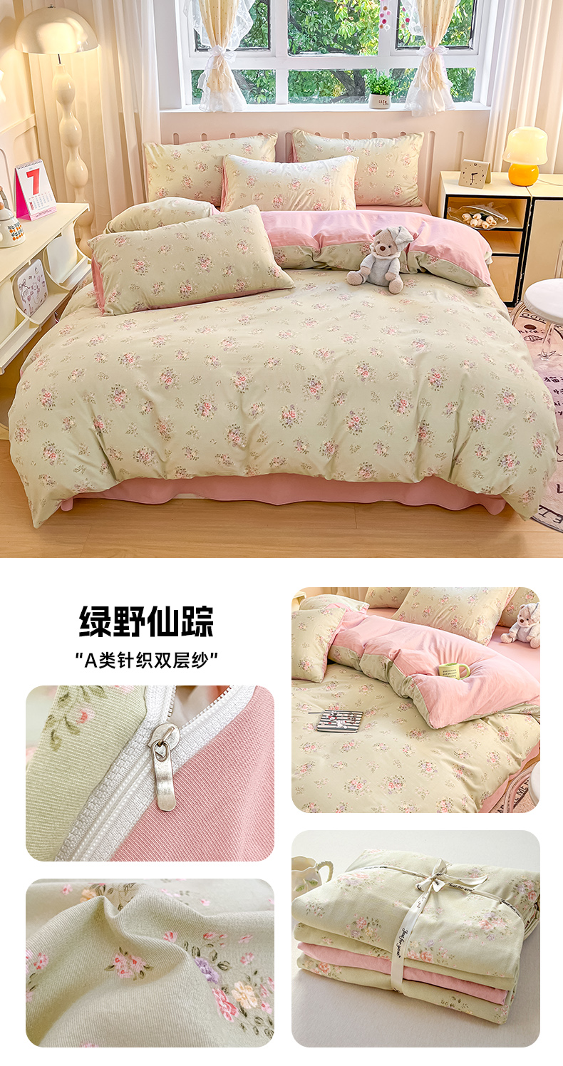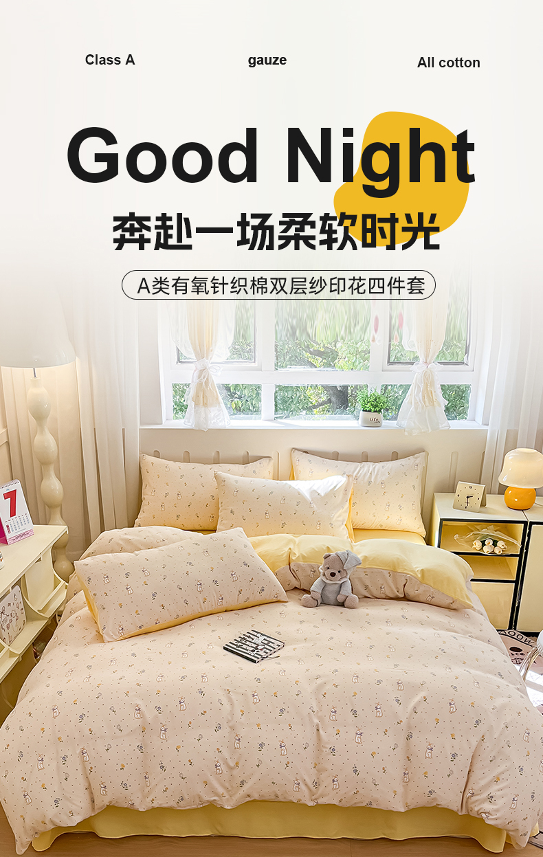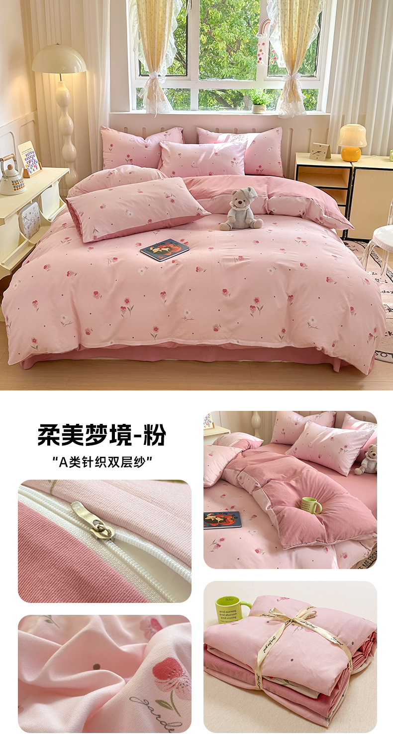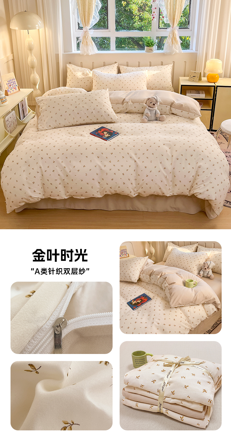 (总)玖明2025新款A类加厚柔软针织棉双层纱四件套,兔梦花开,豹纹,爱之旋律,草莓星愿,纯真时代,蝶梦花香,繁花似锦,富贵花开,格纹经典,果香满园,蝴蝶结-蓝,花叶细语-咖,花影,简约时光,金叶时光,锦绣前程,静谧,林间秘语,绿野仙踪,猫咪乐园,玫瑰之约,萌趣,萌趣小熊,梦回花香,暮光紫苑,绮丽花纹,轻盈叶语,秋实凝香,柔美梦境-粉,柔情玫瑰,小确幸,小樱桃,心语,雅韵花香,叶影,芋泥波波,郁香