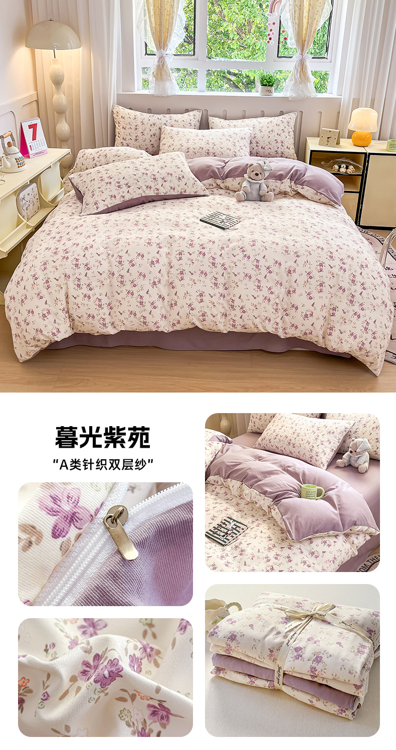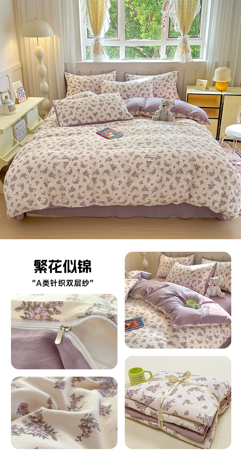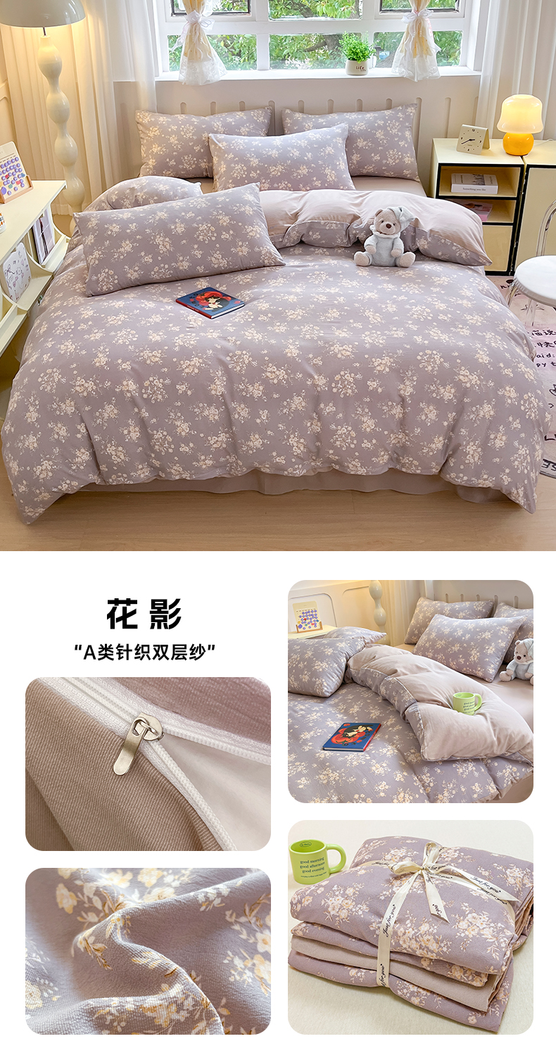 (总)2025新款A类精品柔软针织棉双层纱四件套 爆款,郁香,暮光紫苑,格纹经典,萌趣小熊,花影,小樱桃,草莓星愿,梦回花香,花叶细语-咖,小确幸,纯真时代,心语,兔梦花开,绮丽花纹,蝴蝶结-蓝,蝶梦花香,柔情玫瑰,轻盈叶语,果香满园,静谧,秋实凝香,简约时光,柔美梦境-粉,豹纹,富贵花开,萌趣,叶影,绿野仙踪,猫咪乐园,金叶时光,爱之旋律,芋泥波波,雅韵花香,玫瑰之约,林间秘语,锦绣前程,繁花似锦