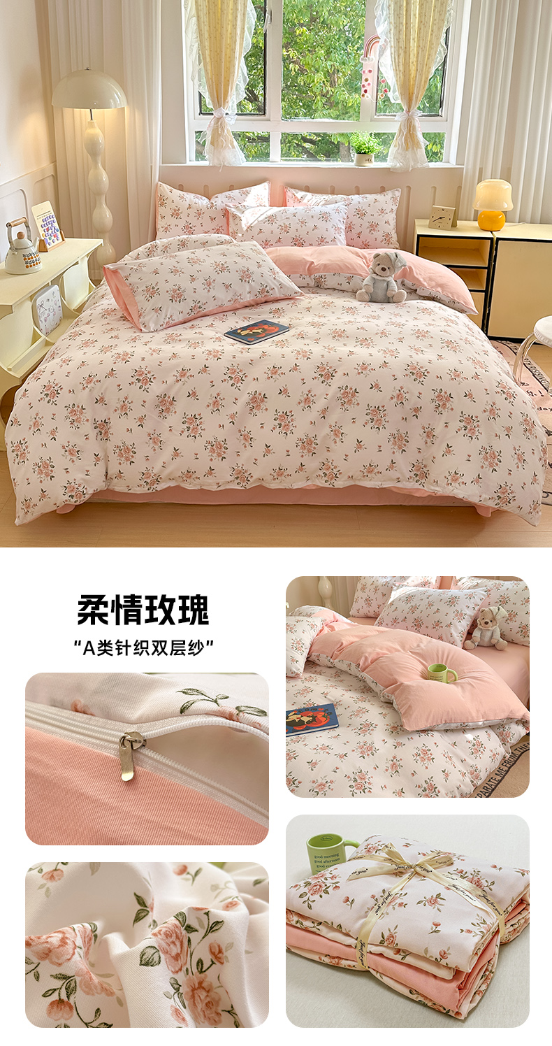 当前位置: 91家纺网 > 商品网购 > 床品套件 > 四件套 > 其它四件套 > 玖明2025新款A类加厚柔软针织棉双层纱四件套 柔情玫瑰