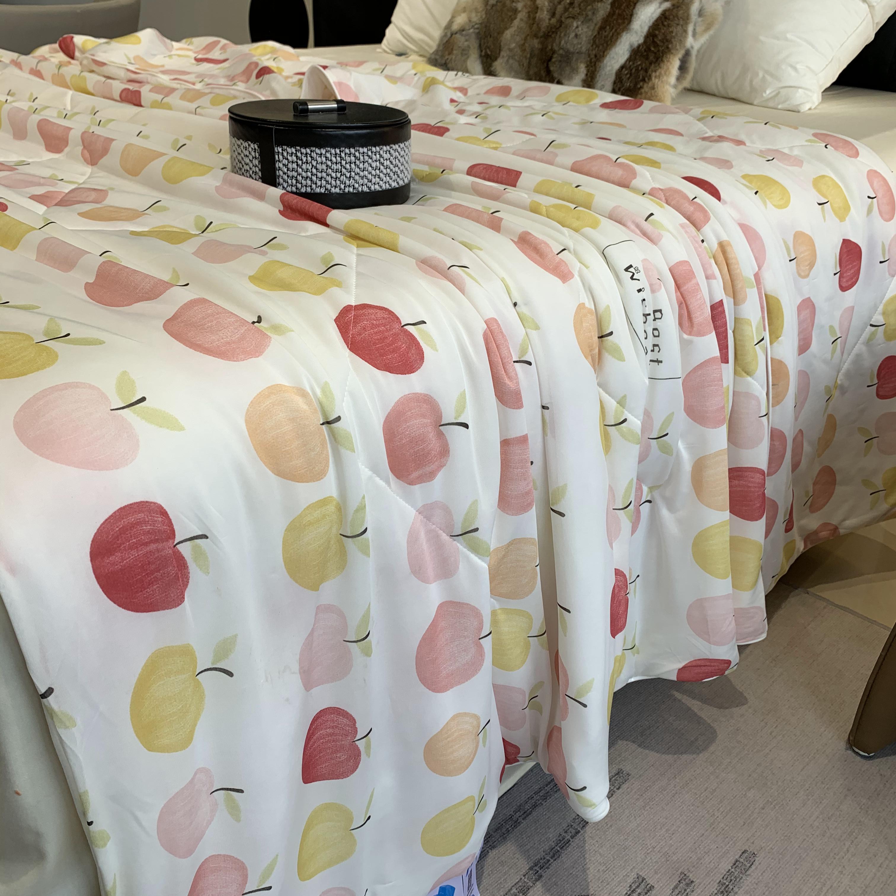 2025新款小冰皮夏凉被锦纶氨纶面料空调夏被凉感丝单夏被空调被 小苹果粉