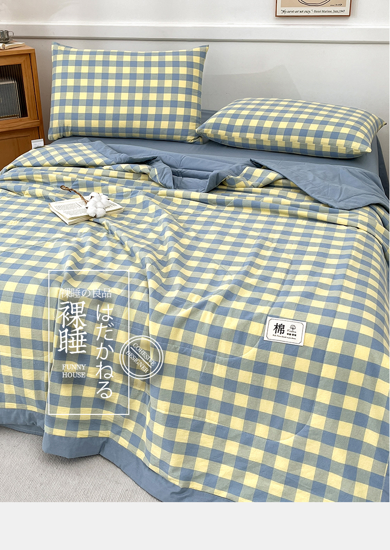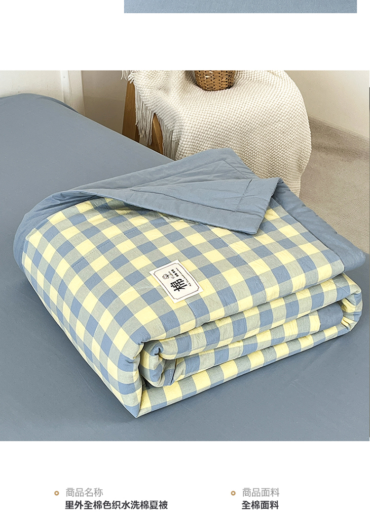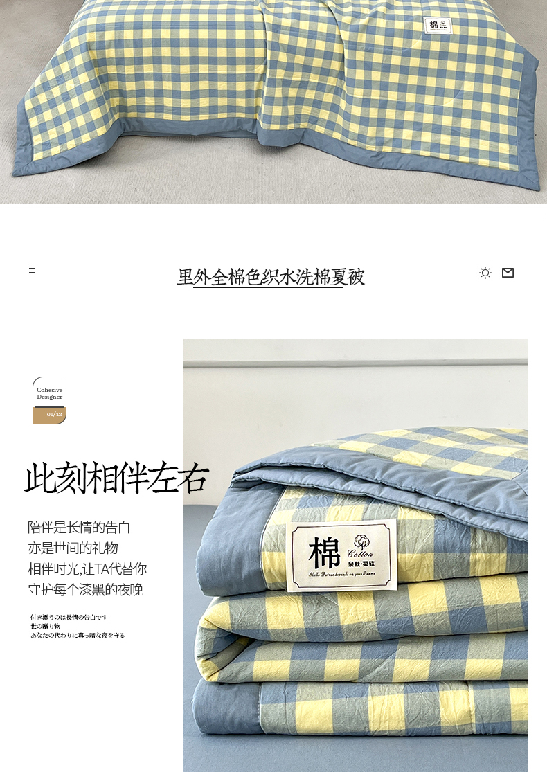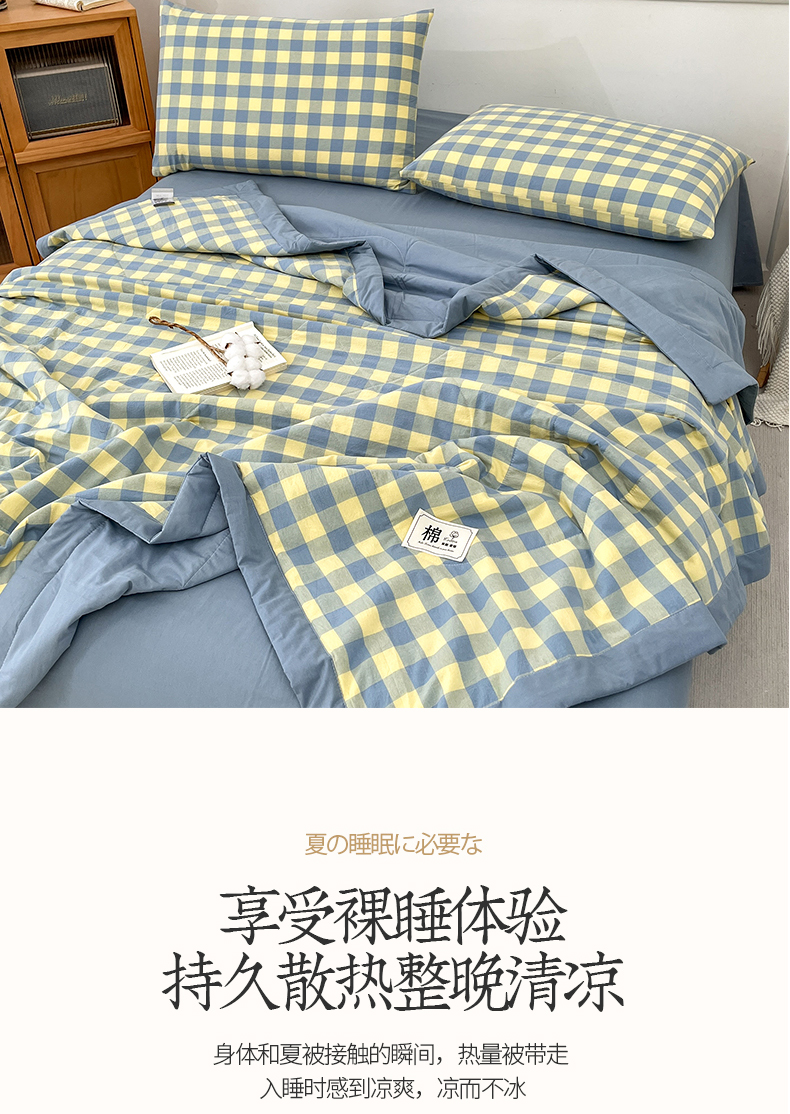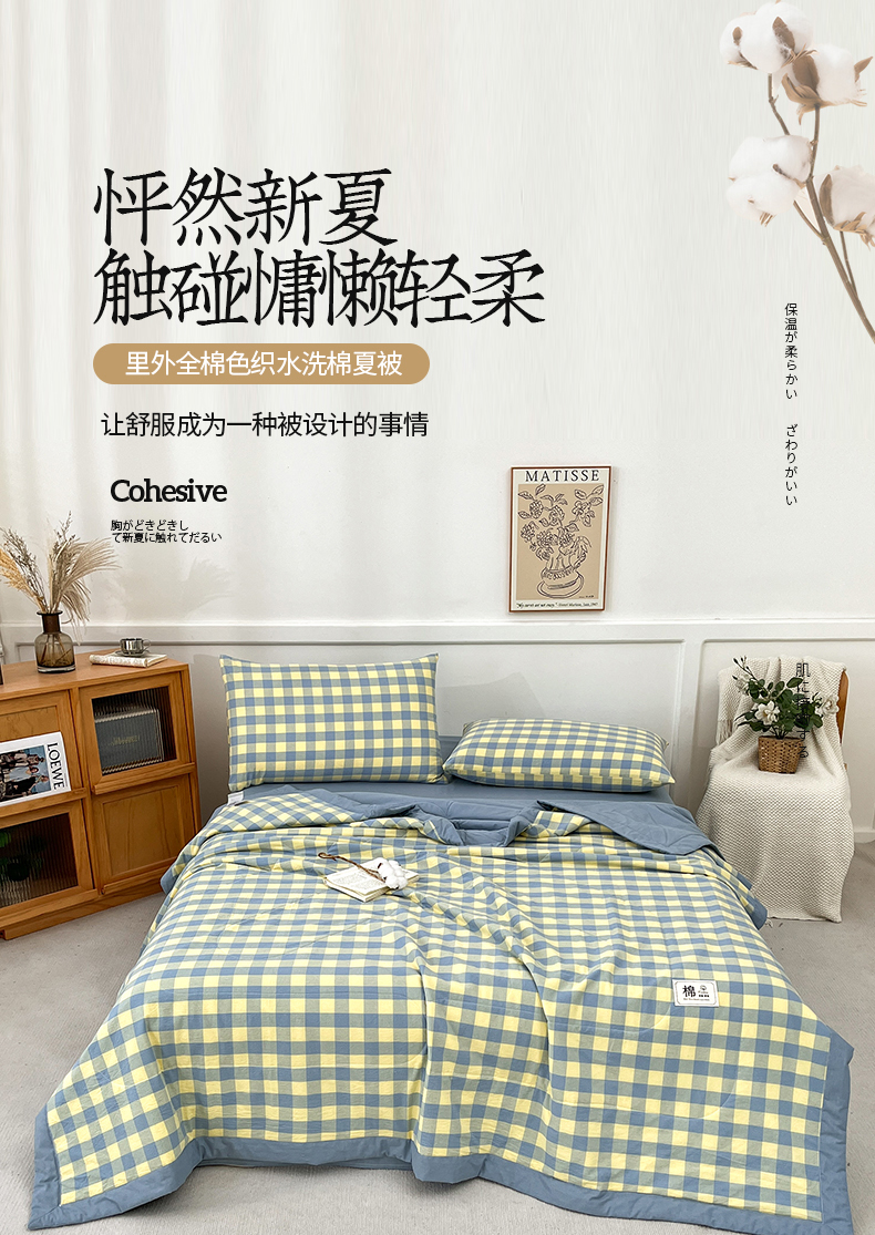 • 91家纺网 家纺一手货源 找家纺 鸣升家纺 2025新款100%里外全棉棉花夏被无印风全棉色织水洗棉夏凉被空调被夏被春秋被单人可机洗 黄兰中格