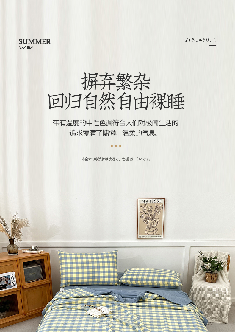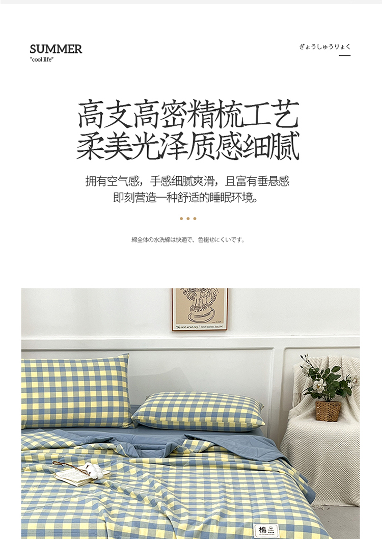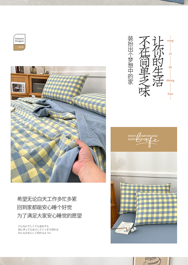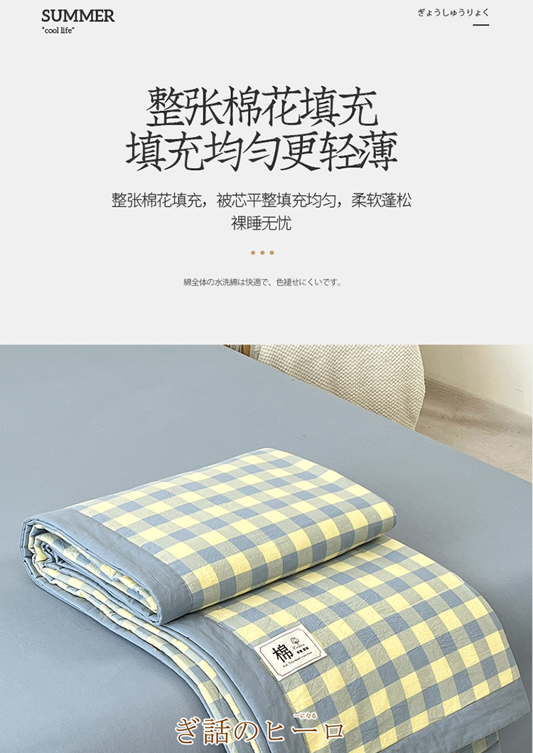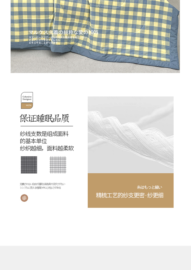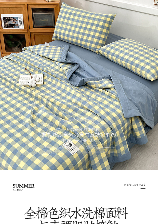 • 91家纺网 家纺一手货源 找家纺 鸣升家纺 2025新款100%里外全棉棉花夏被无印风全棉色织水洗棉夏凉被空调被夏被春秋被单人可机洗 黄兰中格