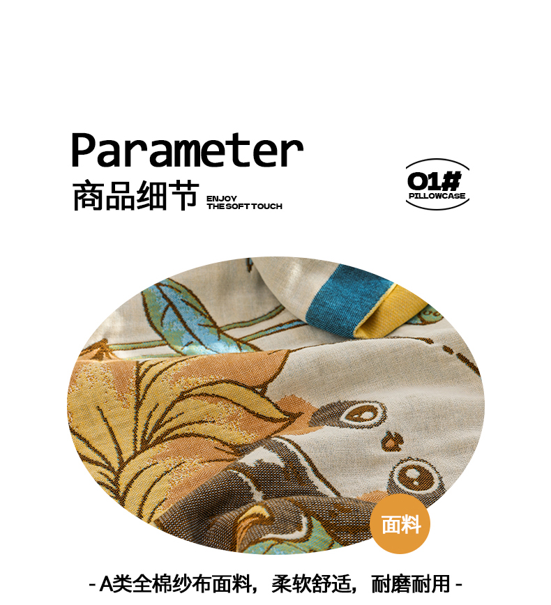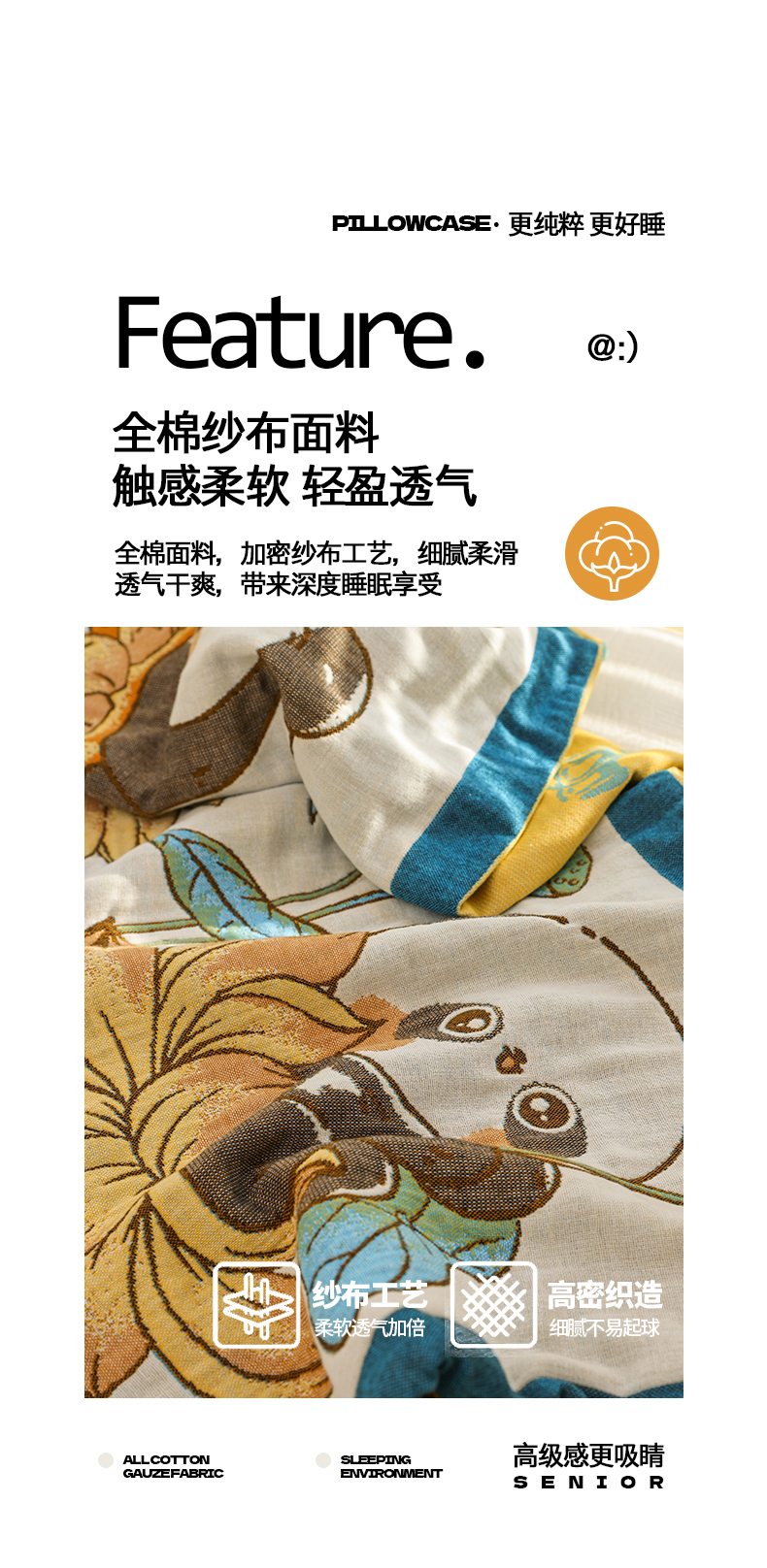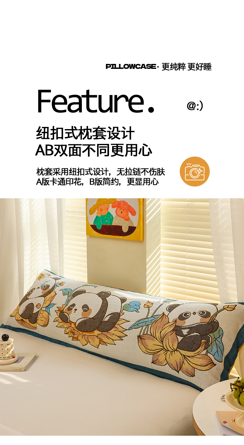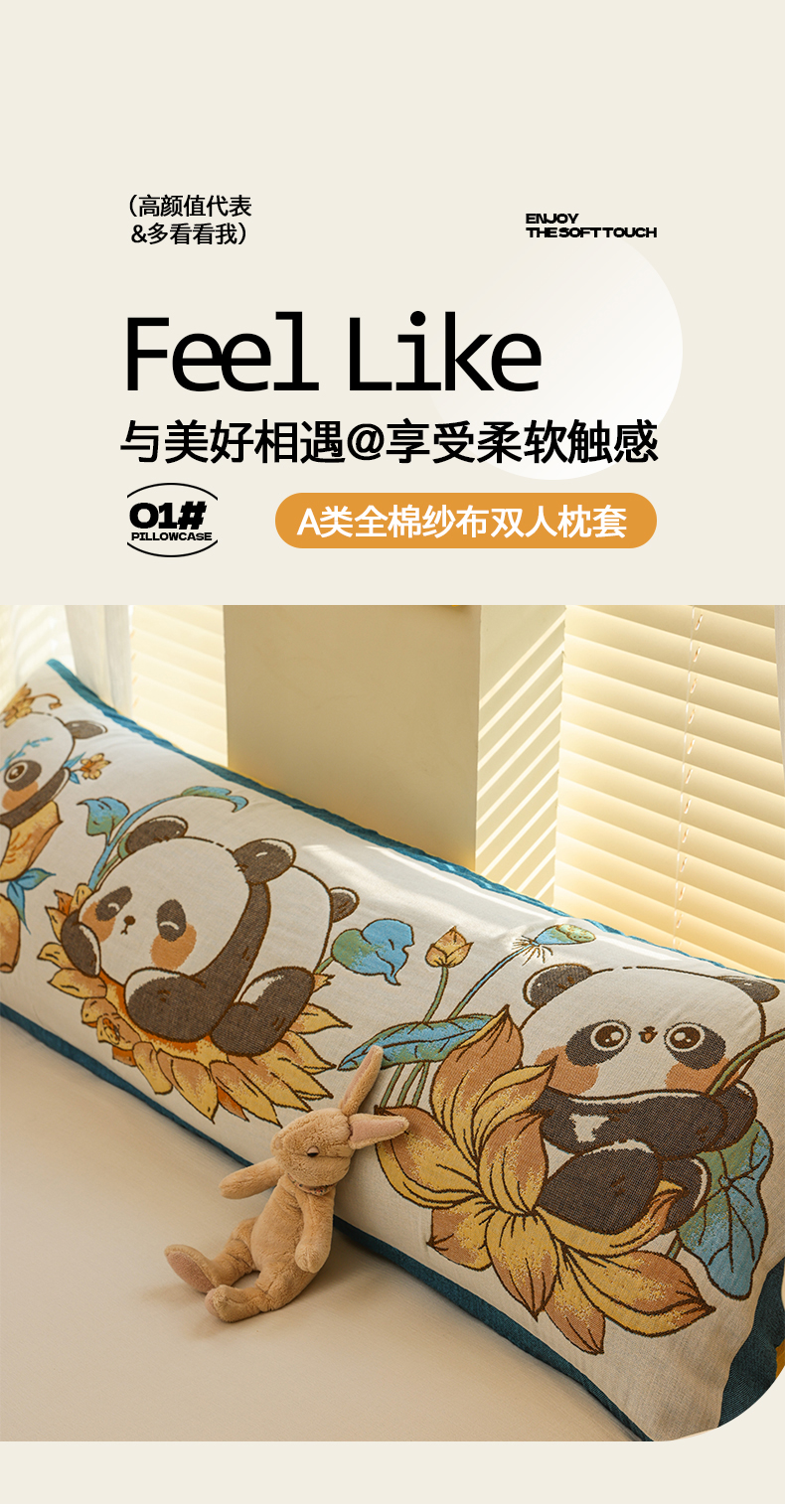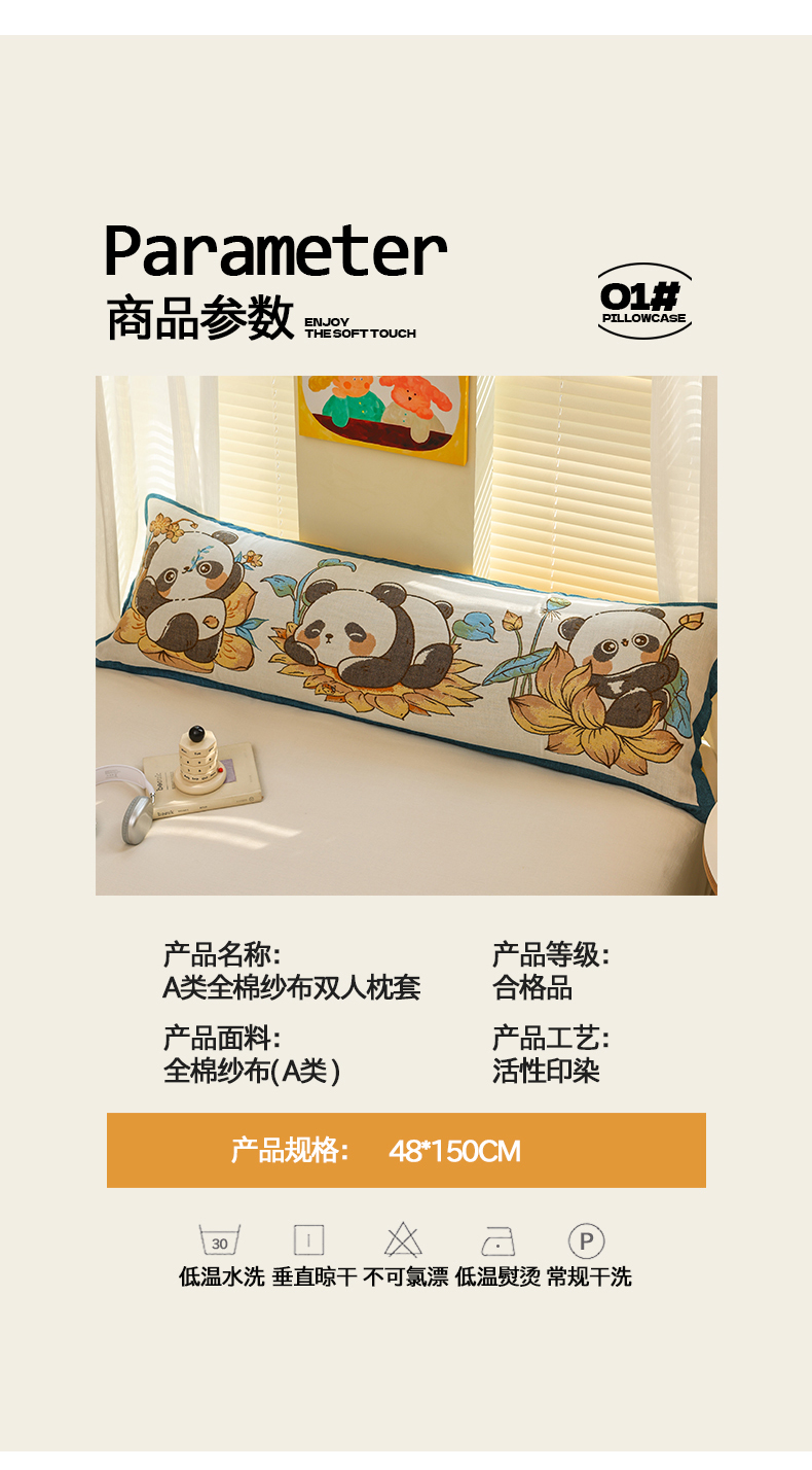 商品名称:雯雨2025新款A类卡通双人纱布枕套 熊猫