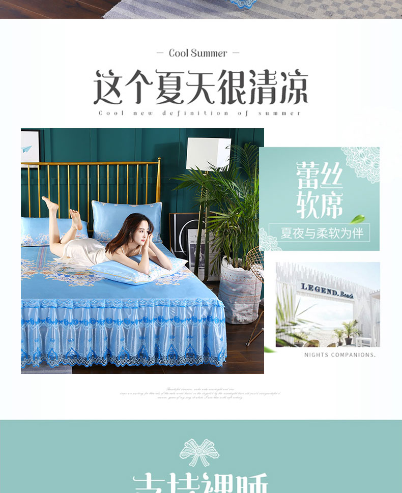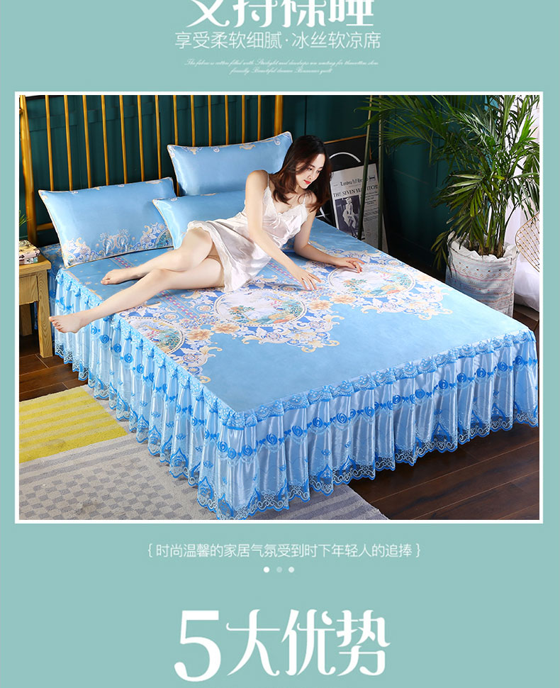 (总)情恒家纺2025新款床裙款冰丝布艺软凉席三件套