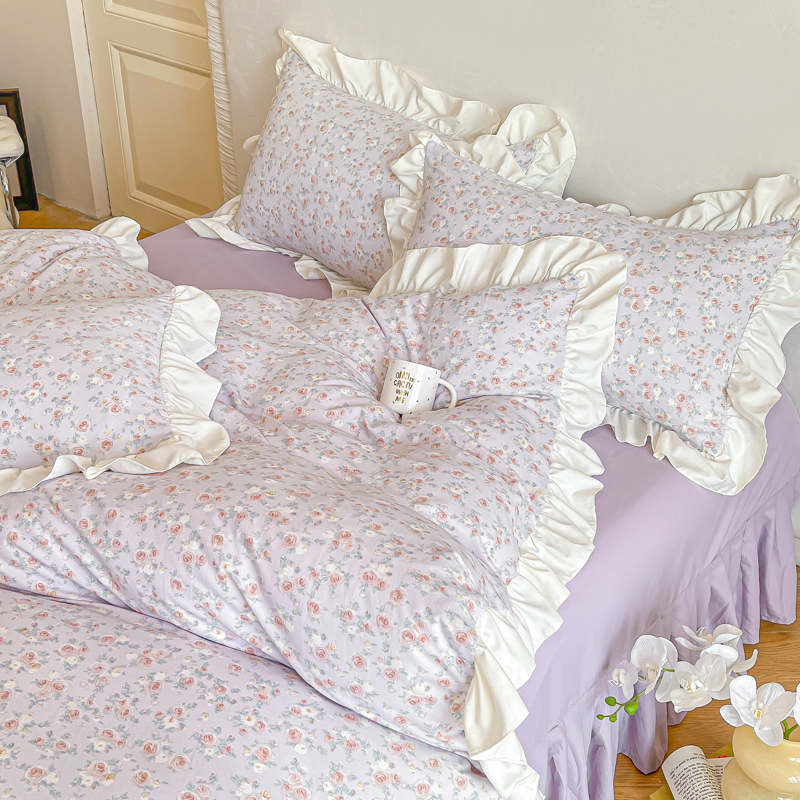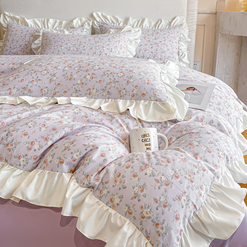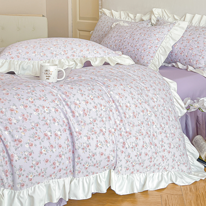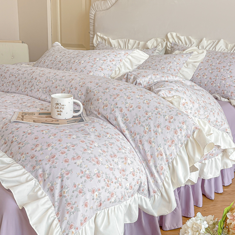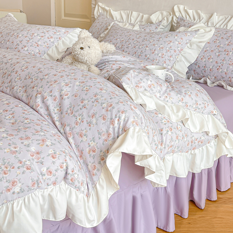商品名称:绘萱家居 2025新款舒氧°柔糯棉花边床裙款四件套(全消光细纱仿全棉纯棉)可可小姐-紫