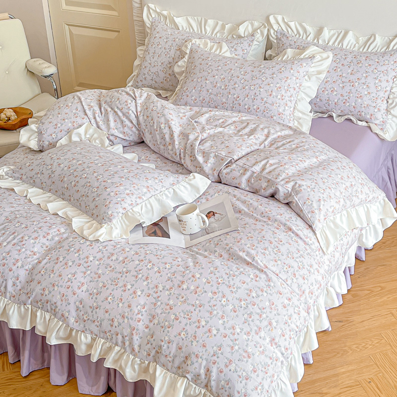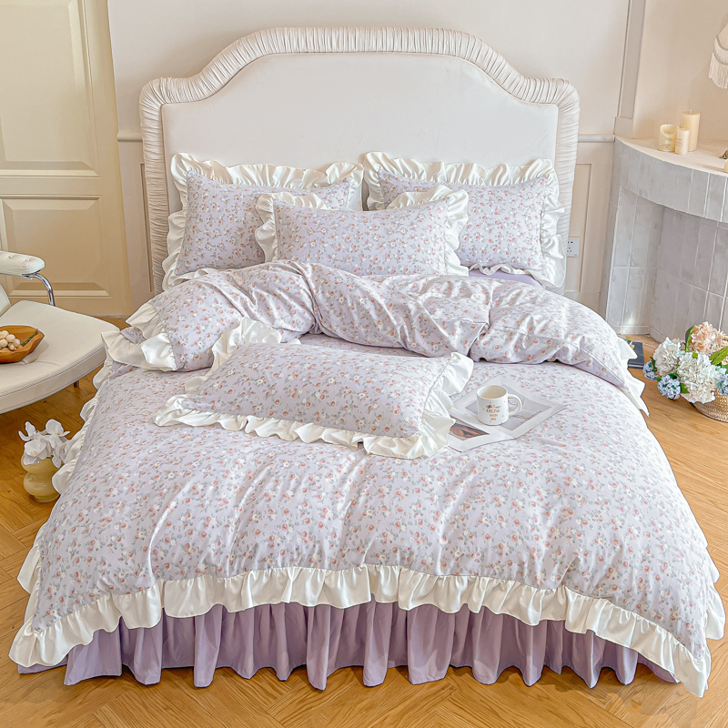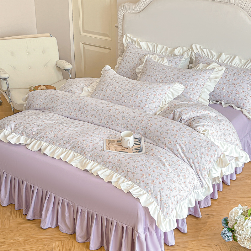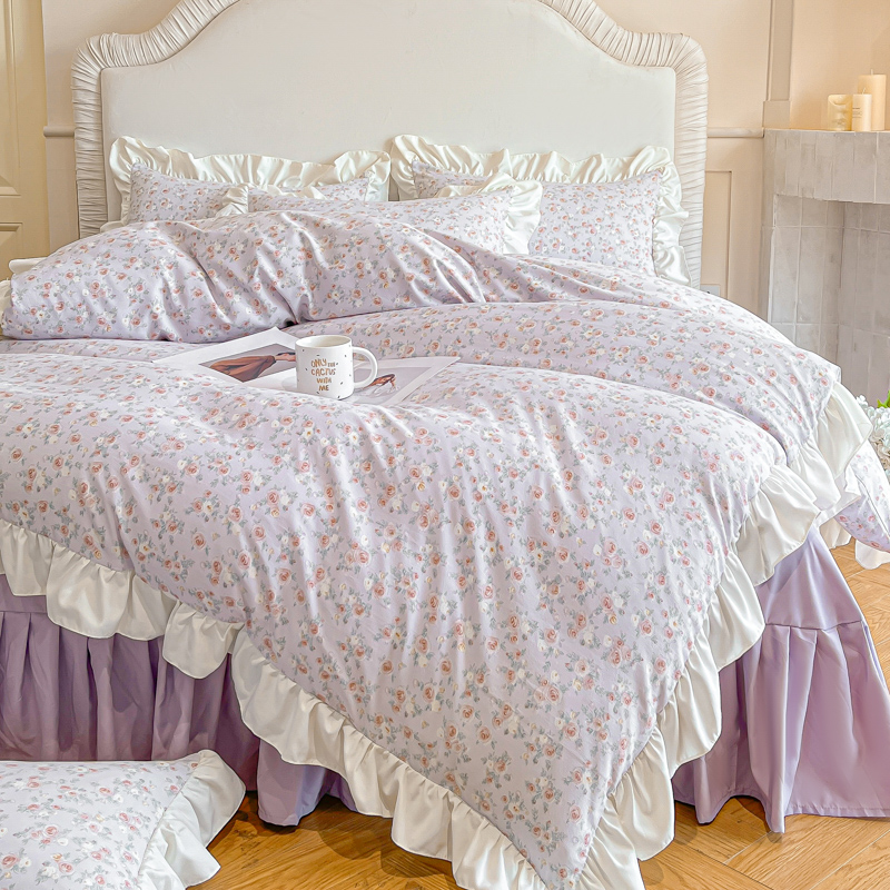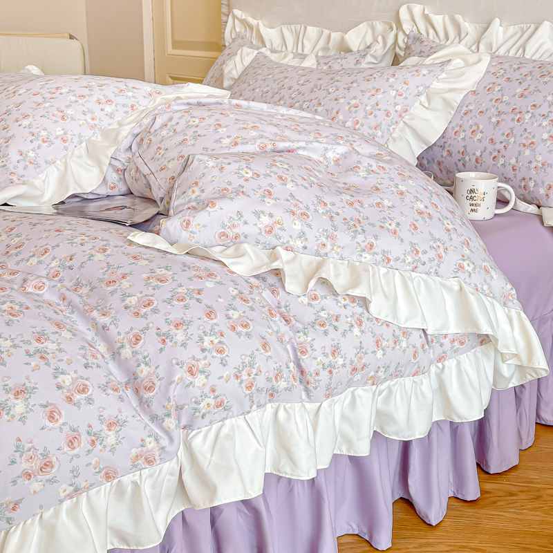 绘萱家居 2025新款舒氧°柔糯棉花边床裙款四件套(全消光细纱仿全棉纯棉)可可小姐-紫