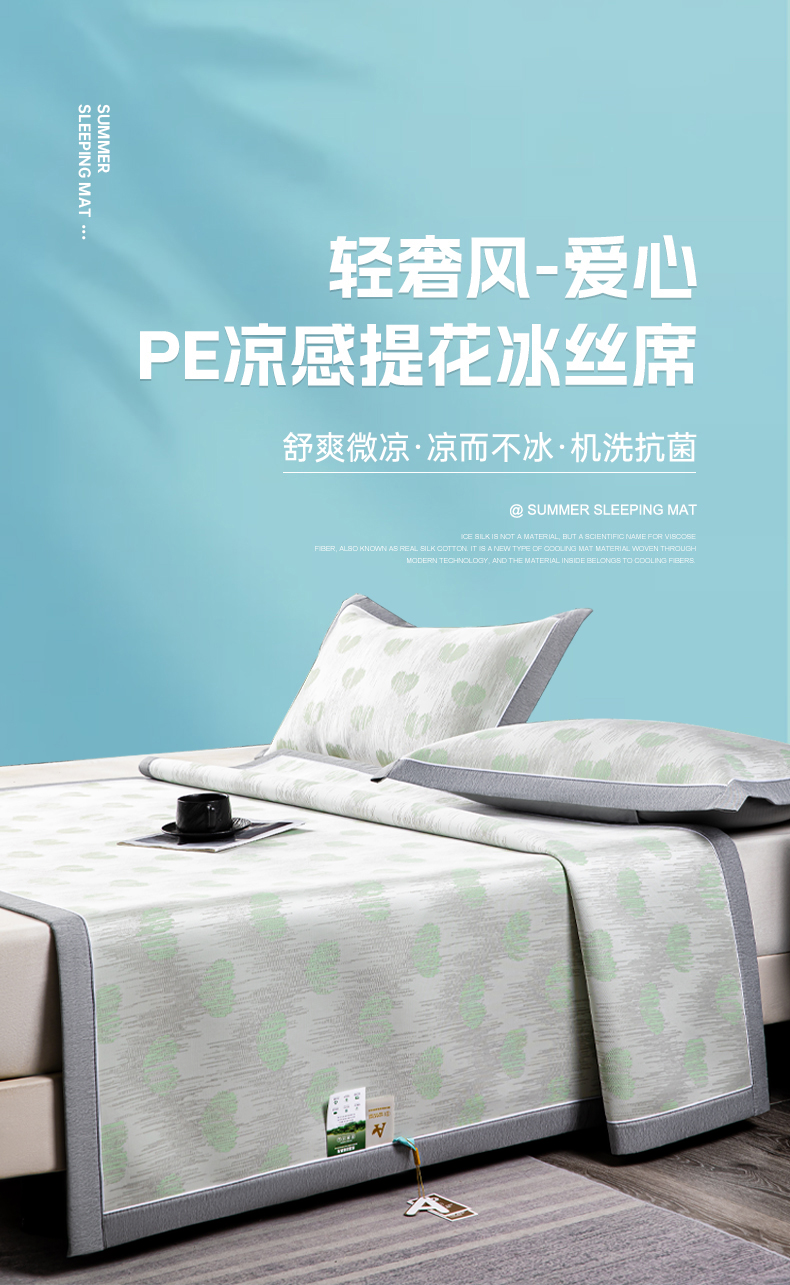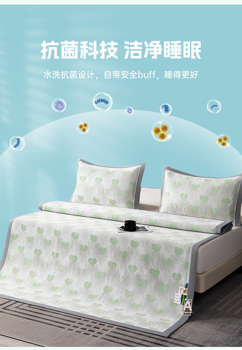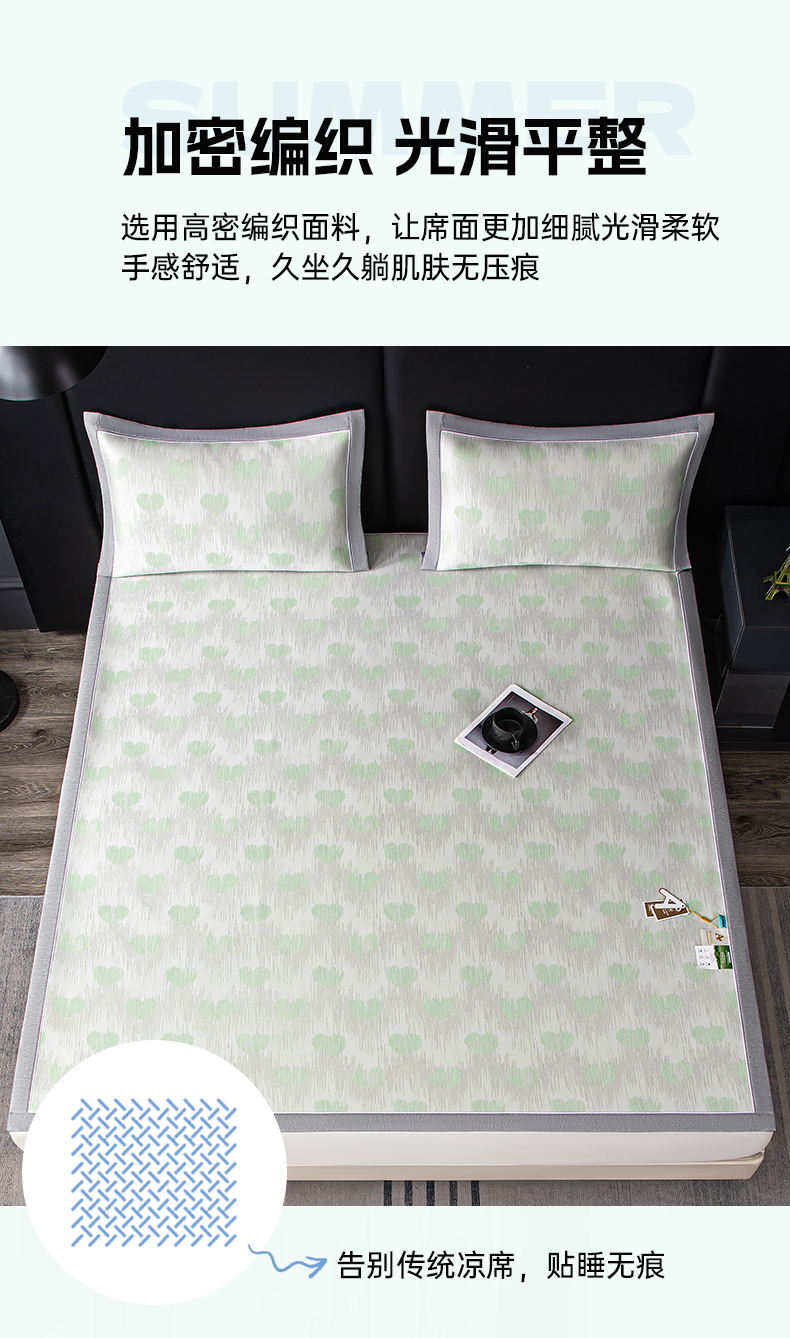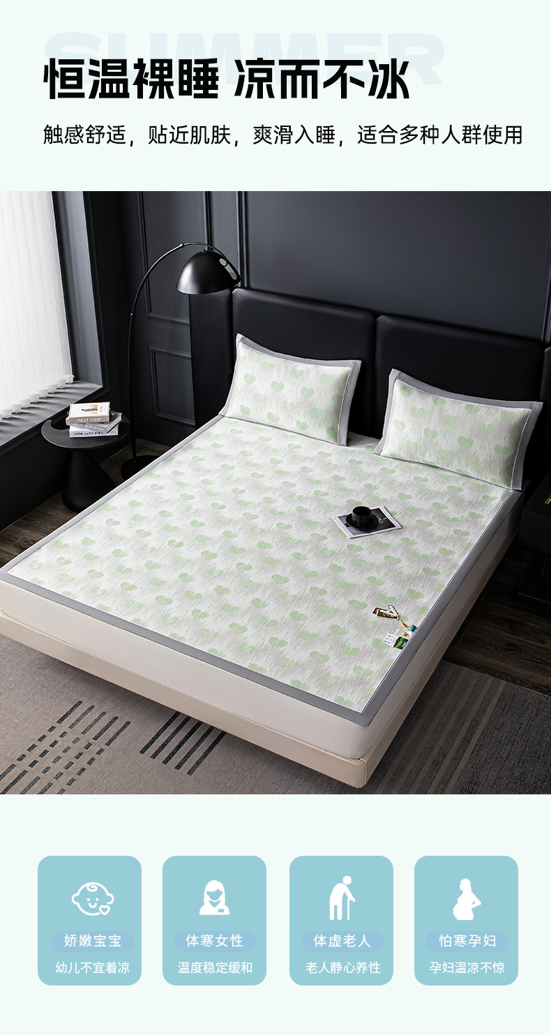 商品名称:小牛席业 2025新款亲肤舒适爱心凉感冰丝席凉席席子系列 绿色
